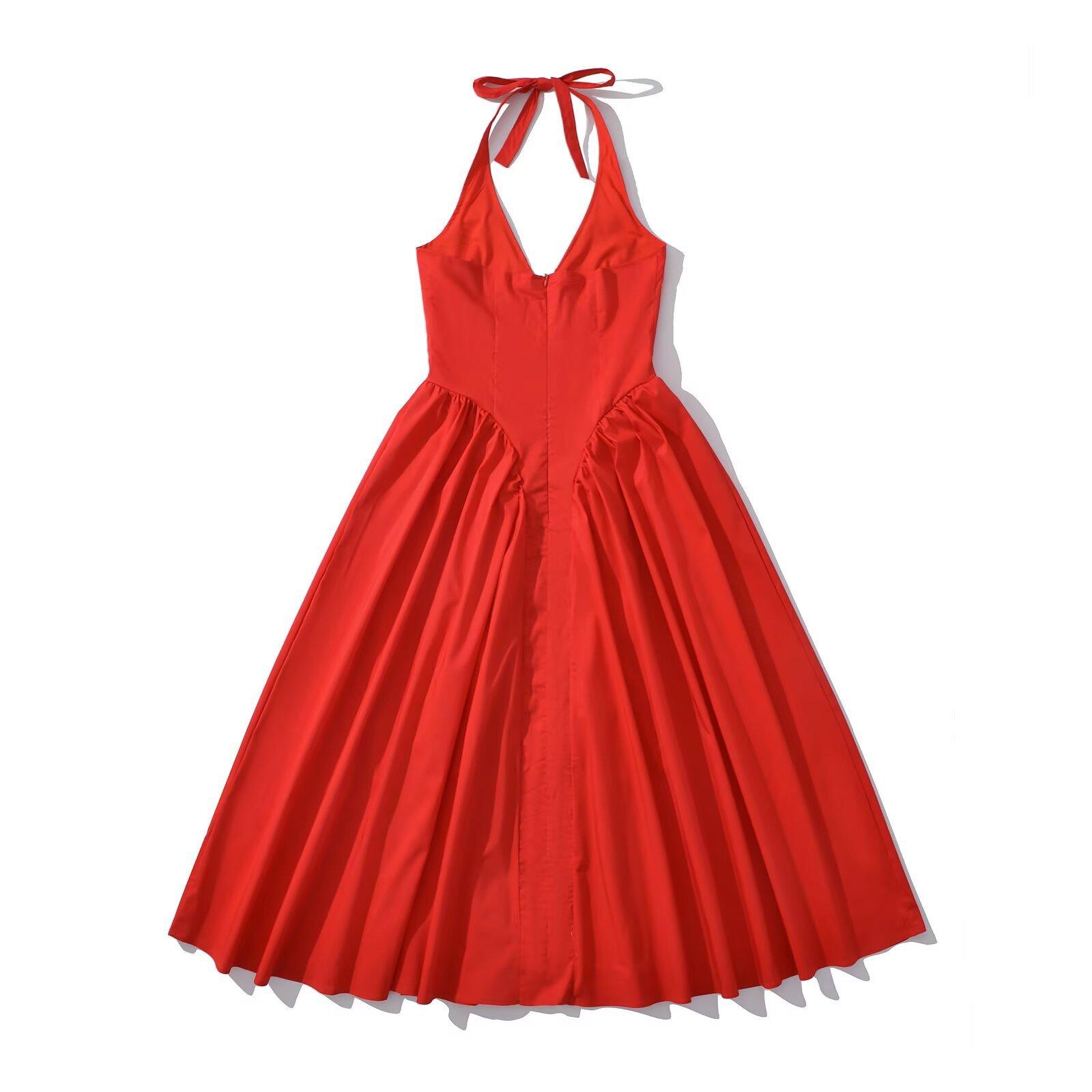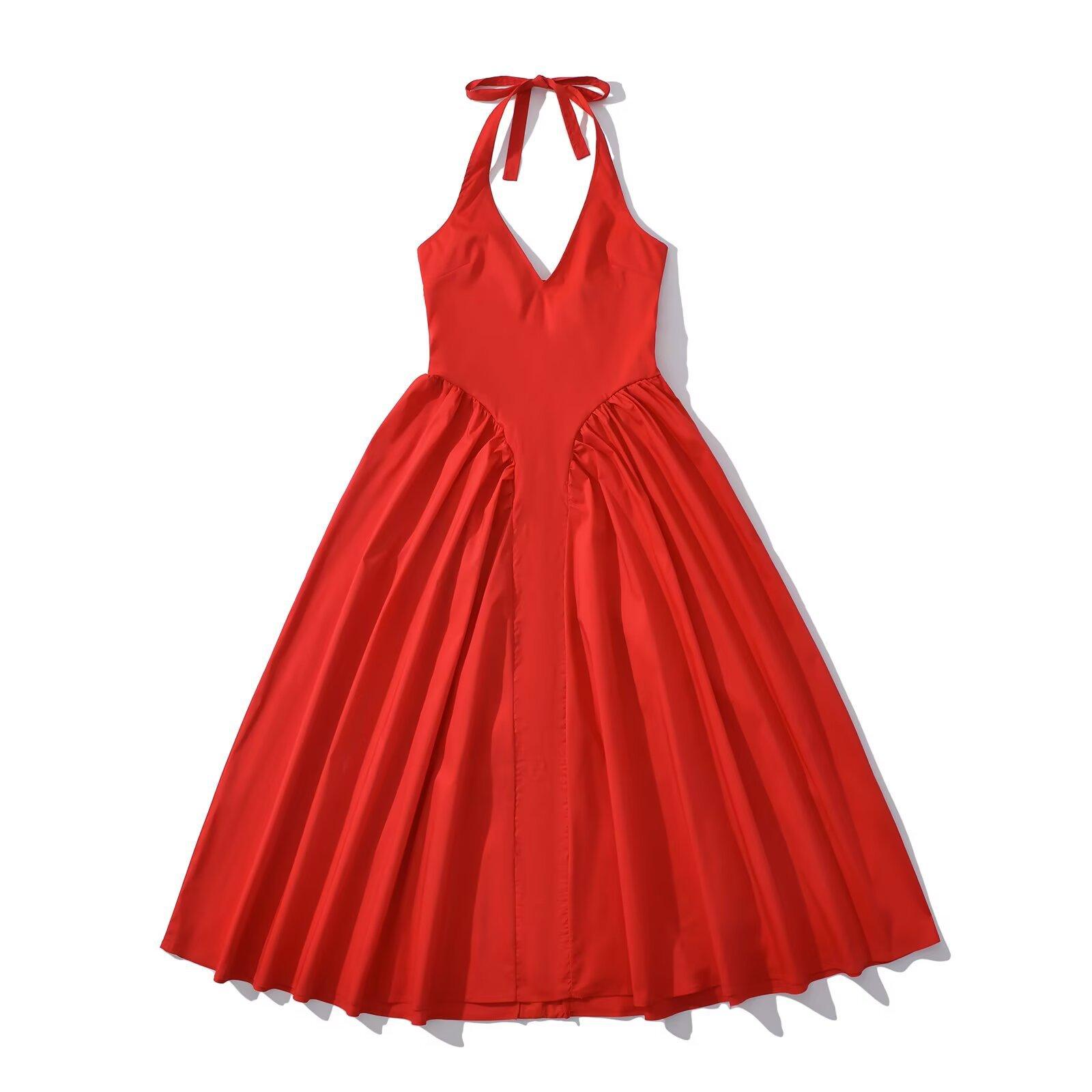 Ropa de Mujer Primavera 2025 Nuevo Estilo Europeo y Americano Moda Casual Temperamento Cintura Halter Vestido