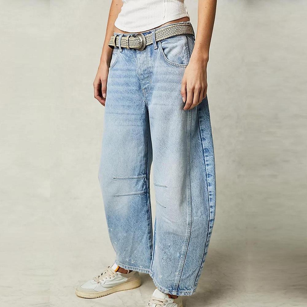 Transfronterizo Wish Aliexpress Exportación Jeans de Mujer Más Vendidos 2025 Nuevo Suelto Lavado Moderno Pierna Ancha Pantalón Largo