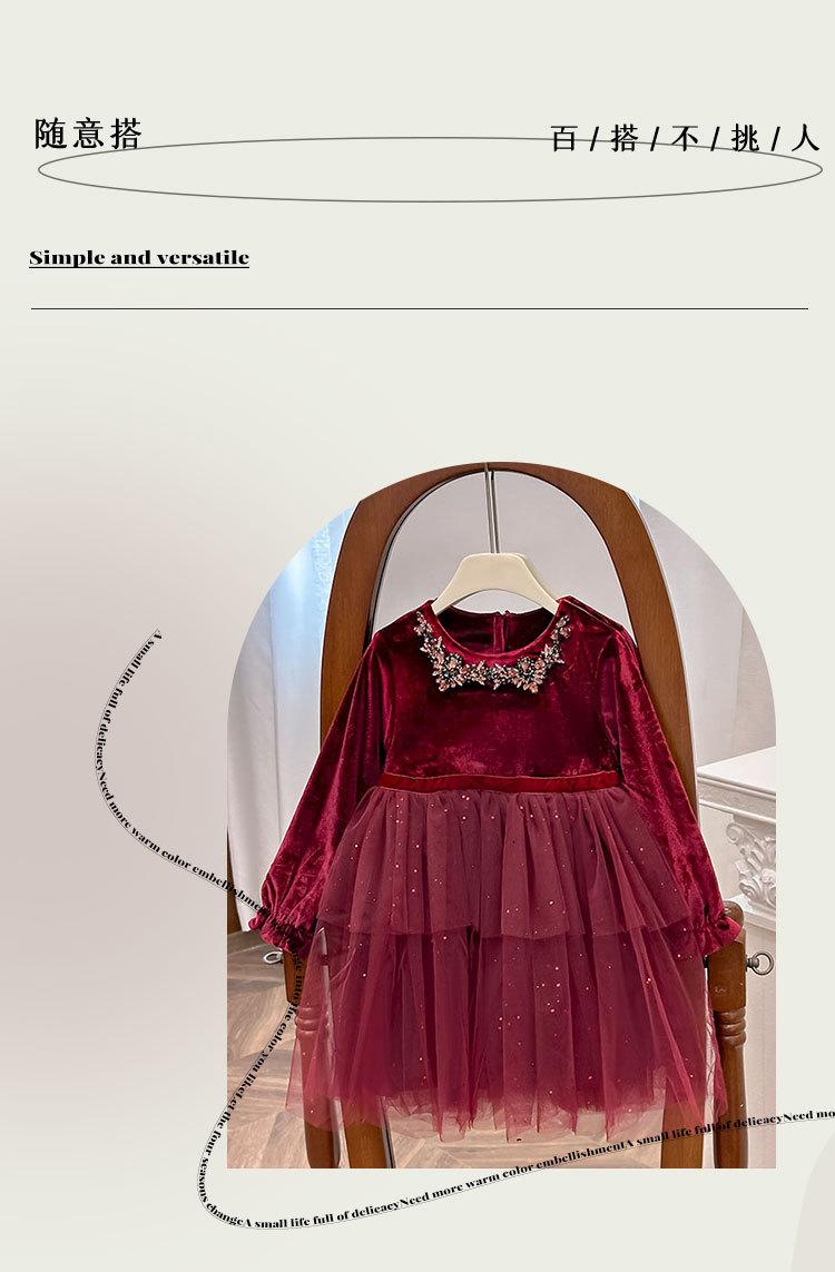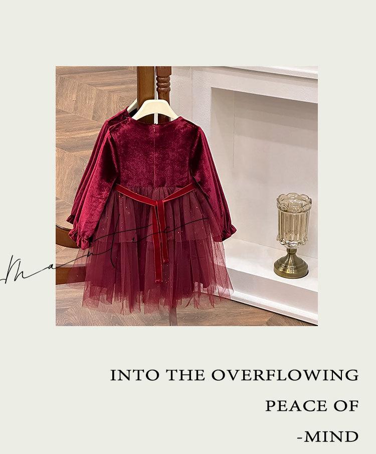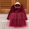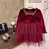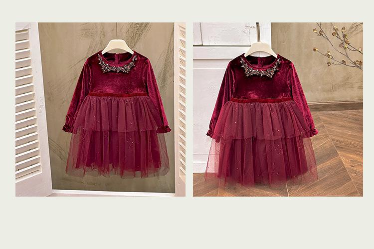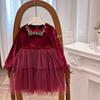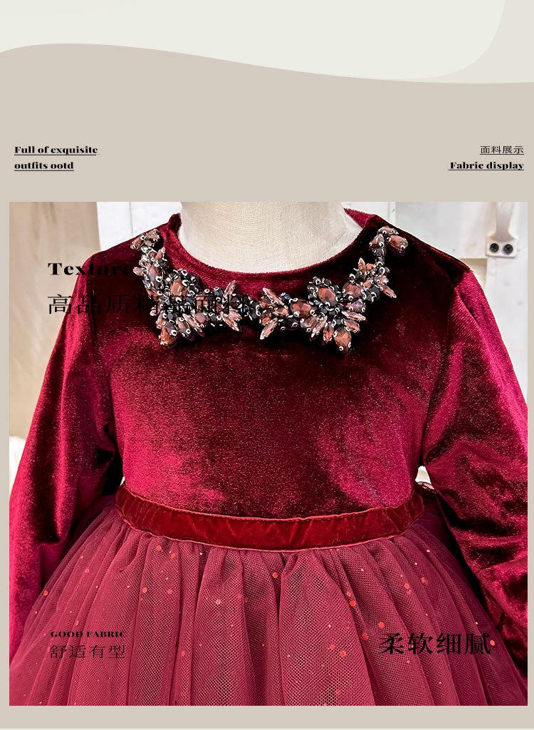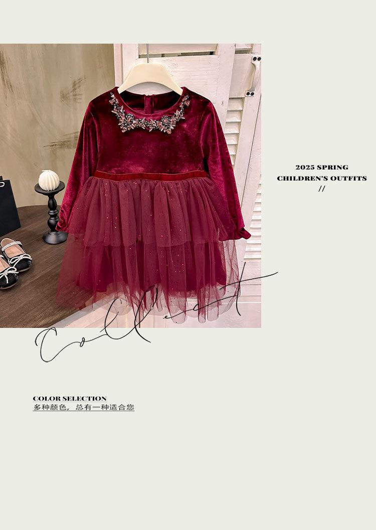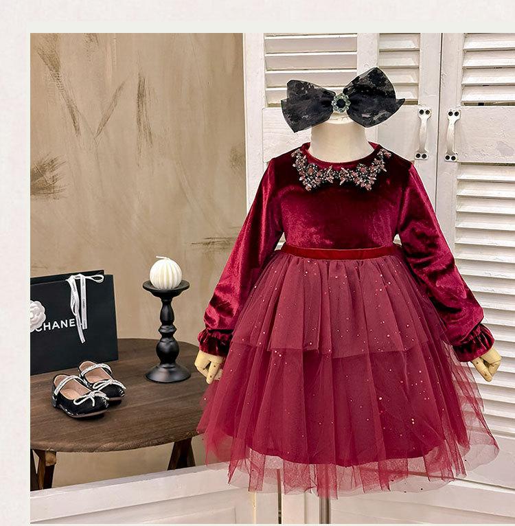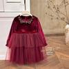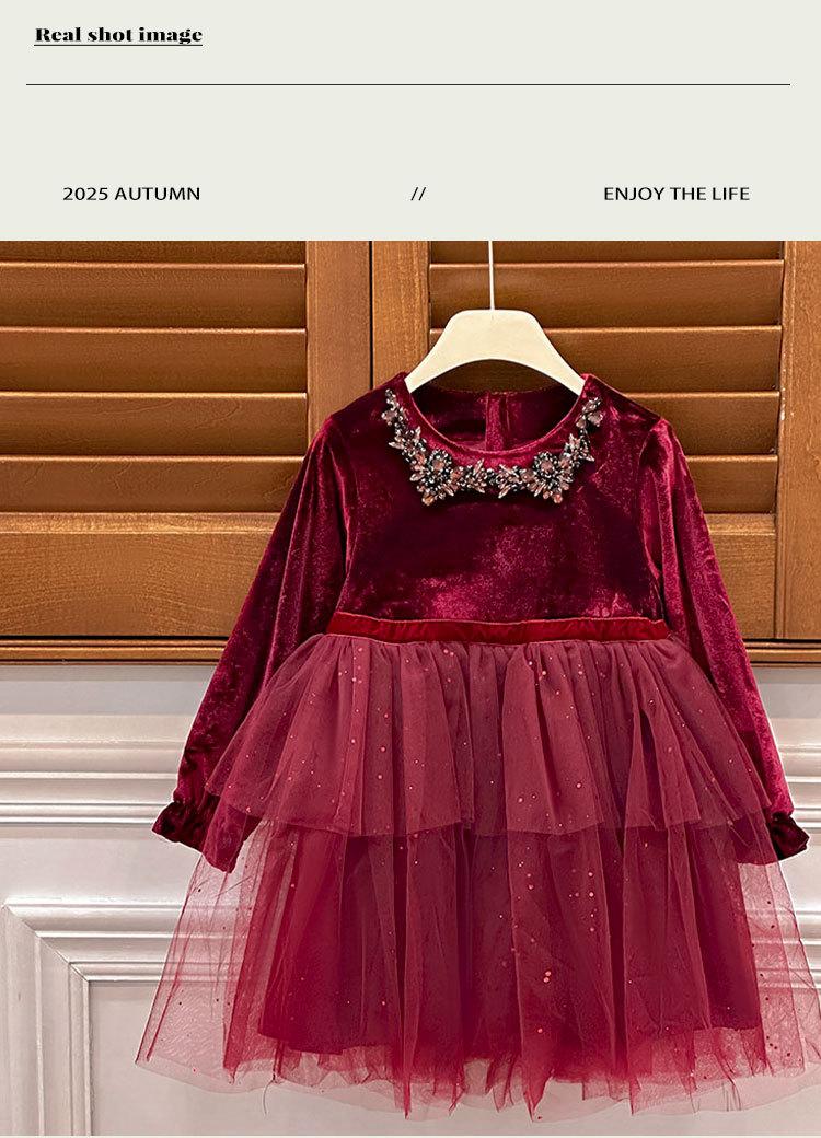 Vestido de Niña 2025 Otoño Nuevo Vestido de Princesa de Lentejuelas de Alta Gama Escote Diamante Terciopelo Cumpleaños Vestido de Tul Moderno