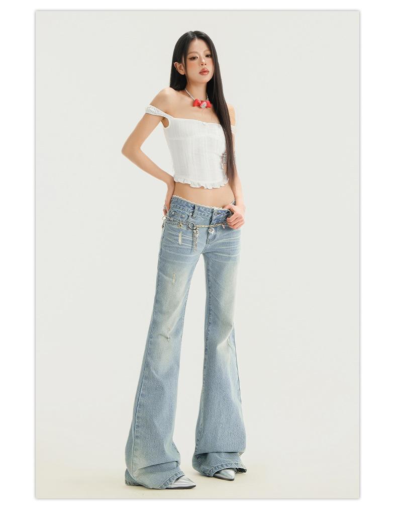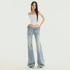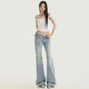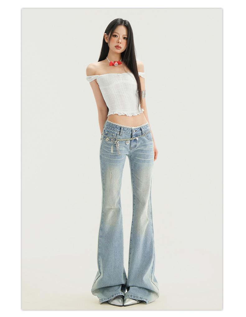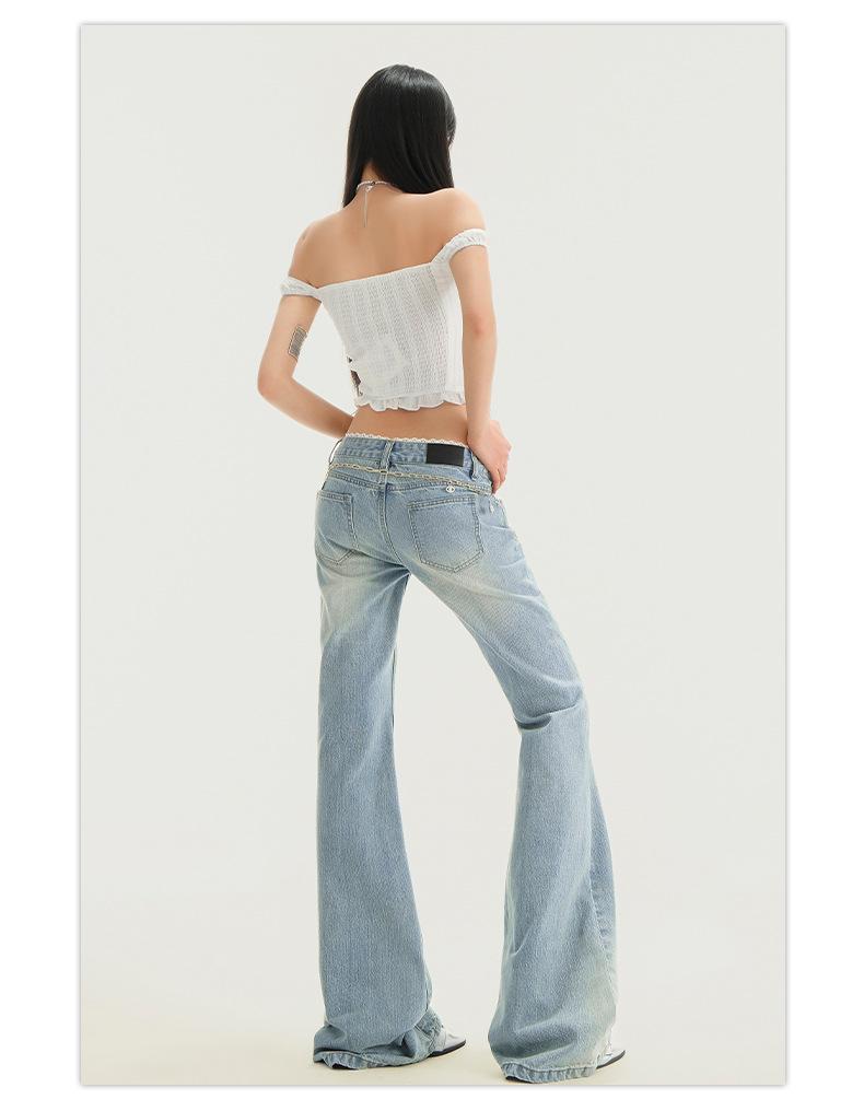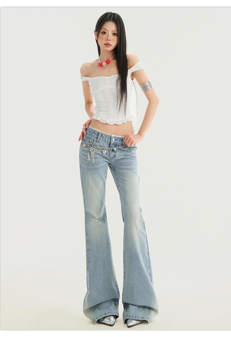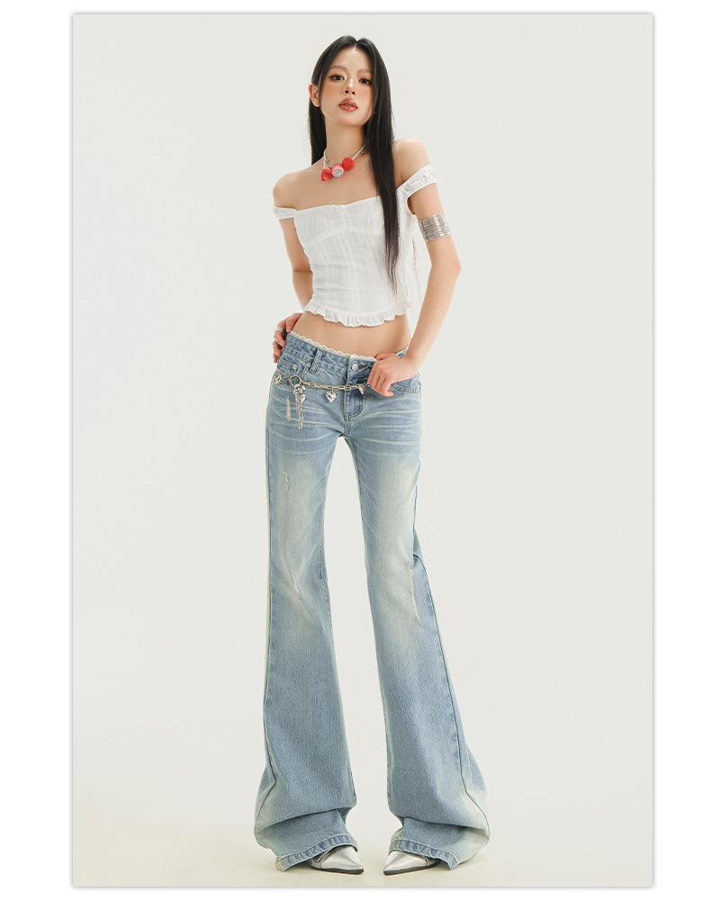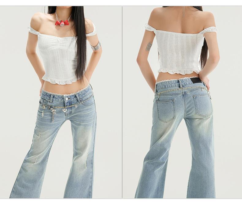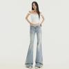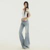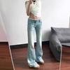 2025 nuevo encaje para damas micro primavera y verano nuevo azul claro lavado tiro bajo pantalones acampanados delgados