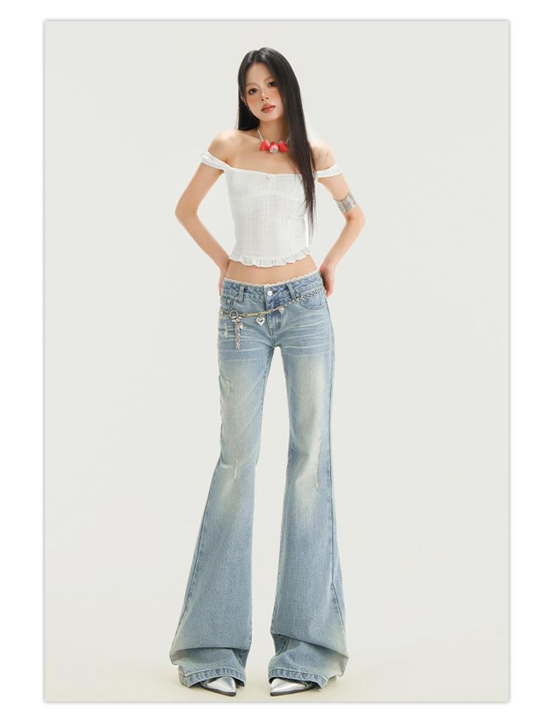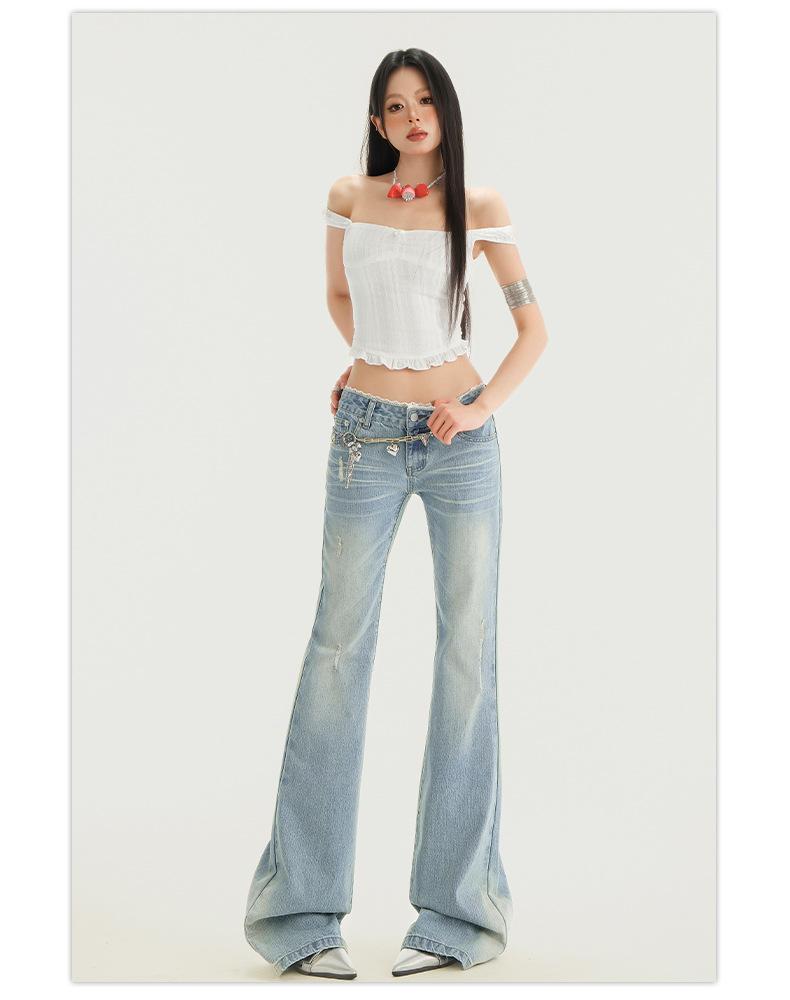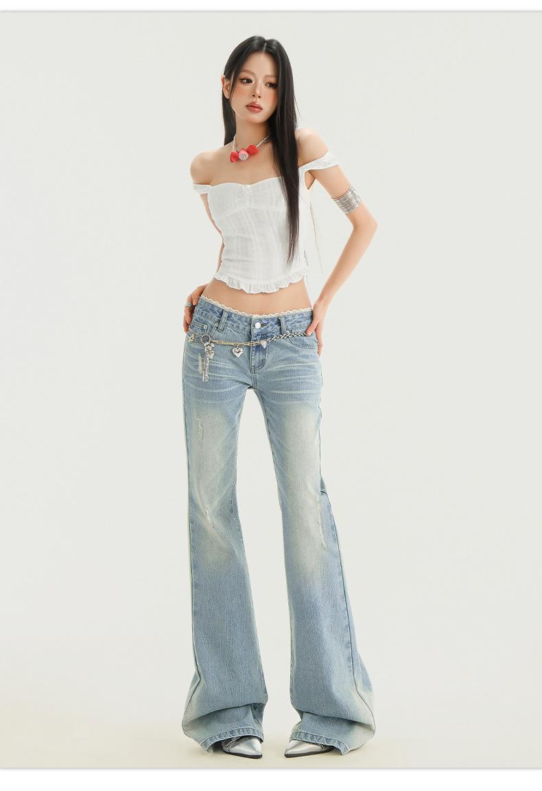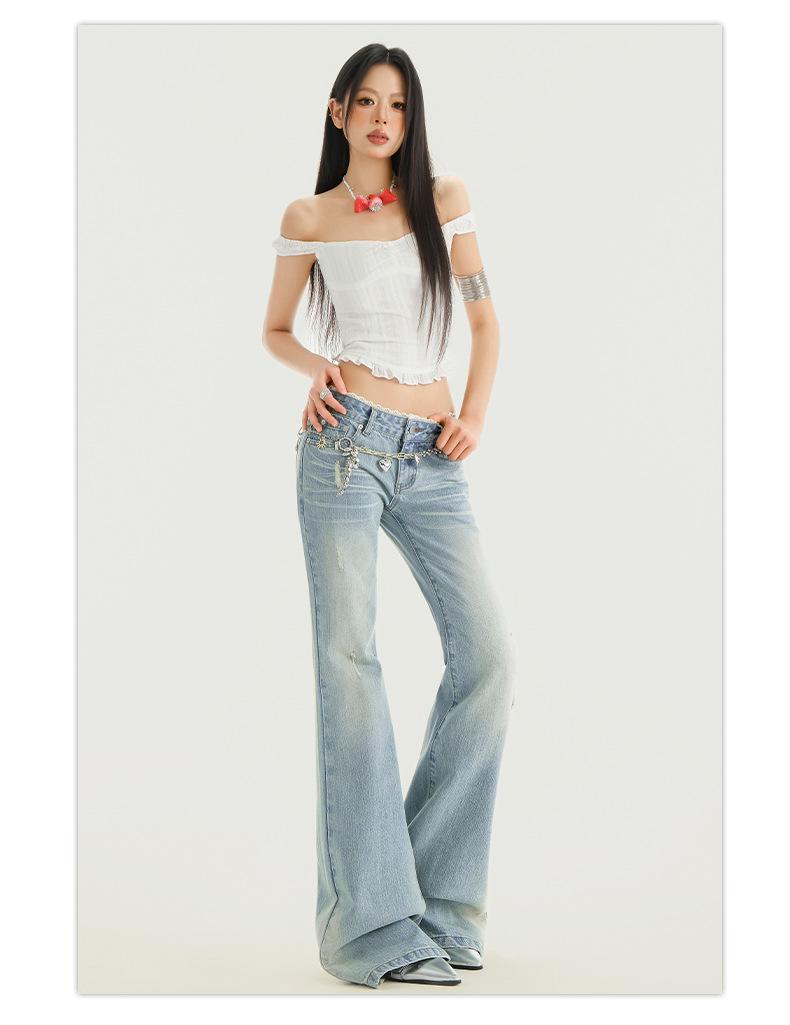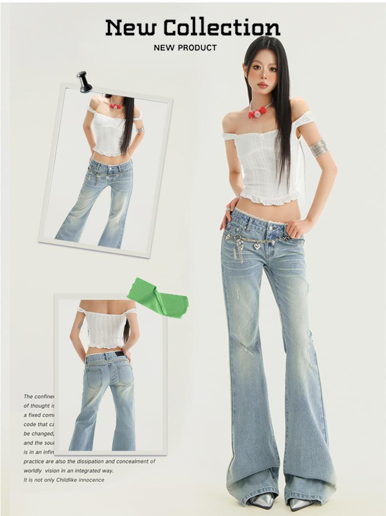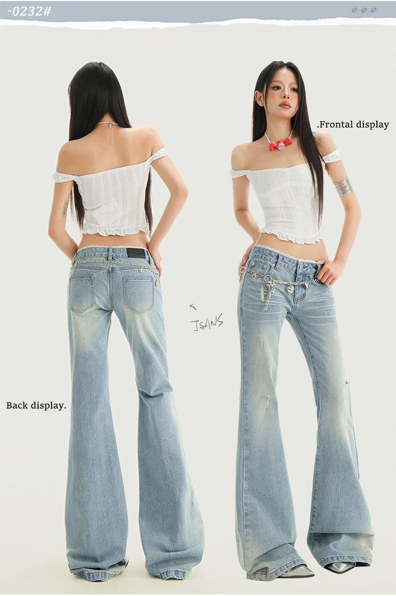 2025 nuevo encaje para damas micro primavera y verano nuevo azul claro lavado tiro bajo pantalones acampanados delgados