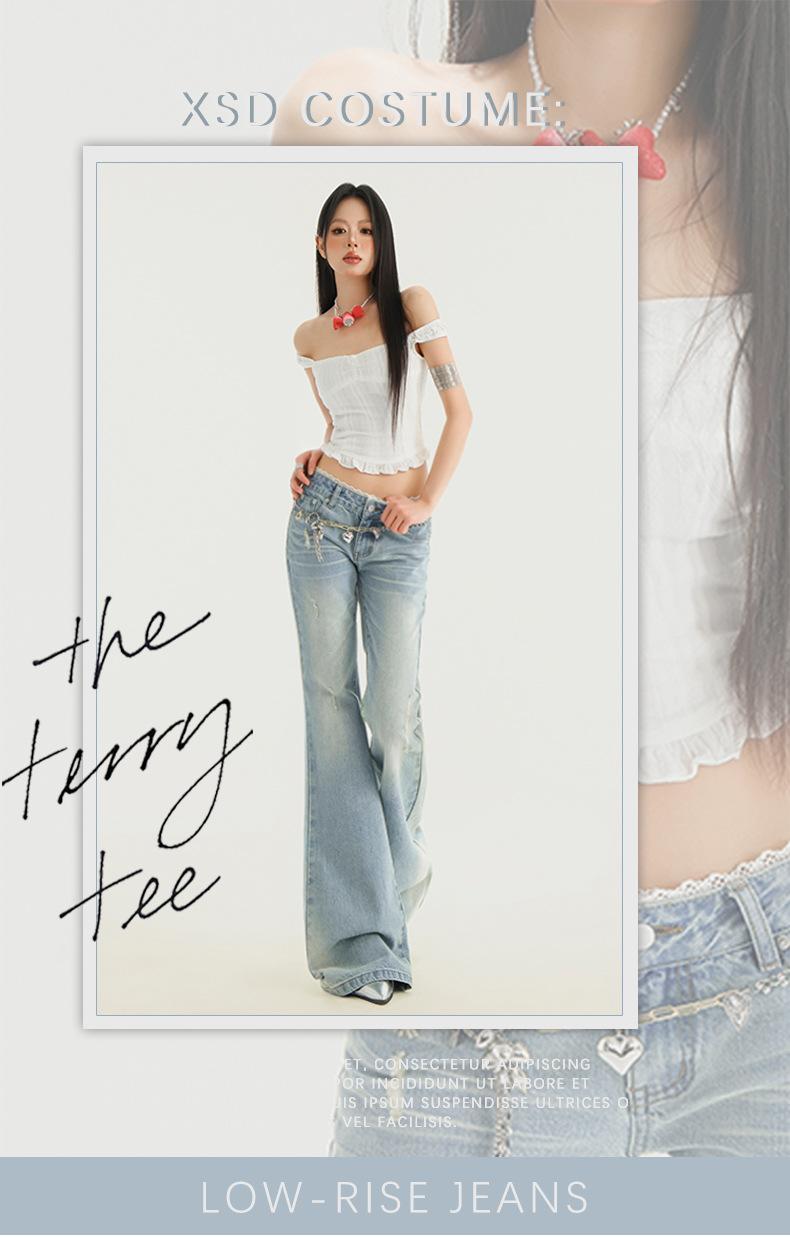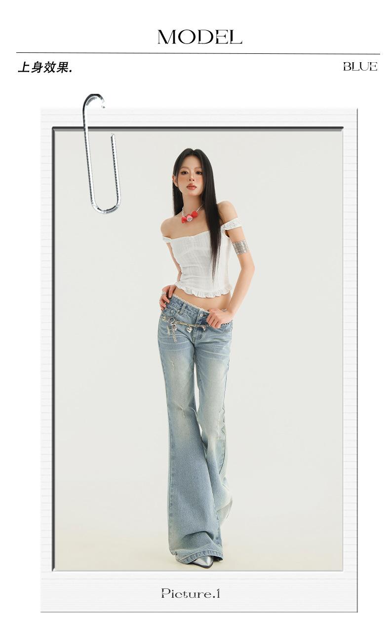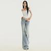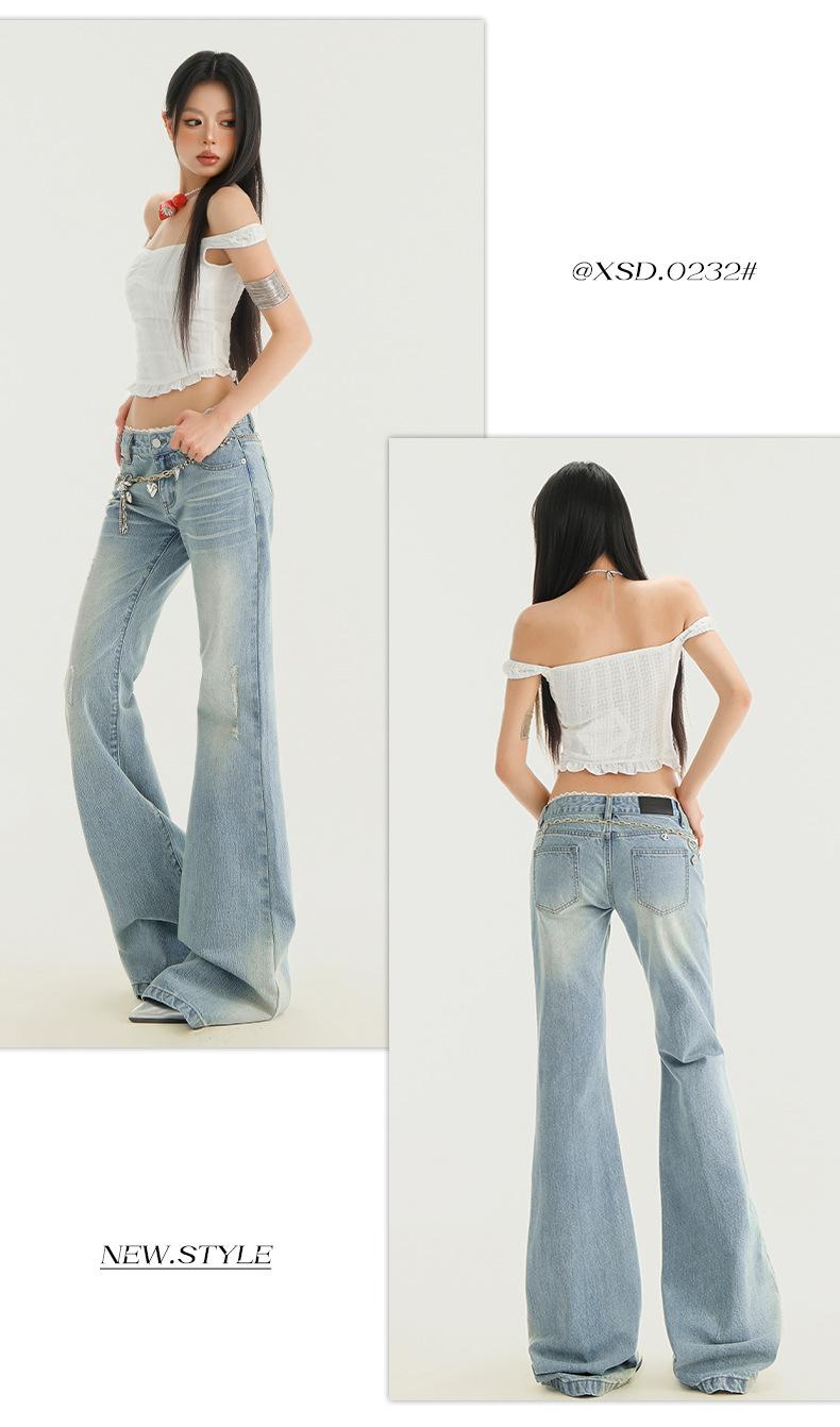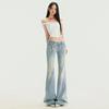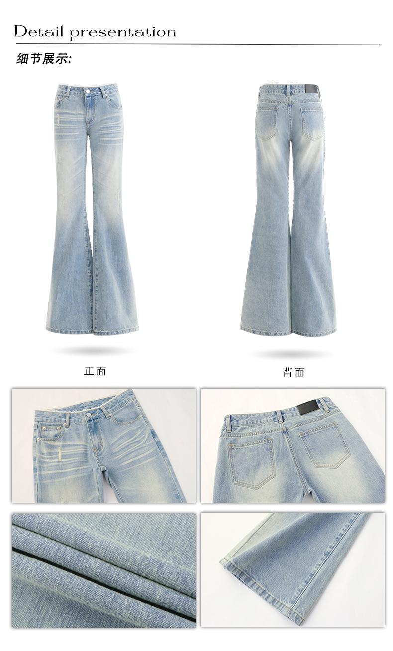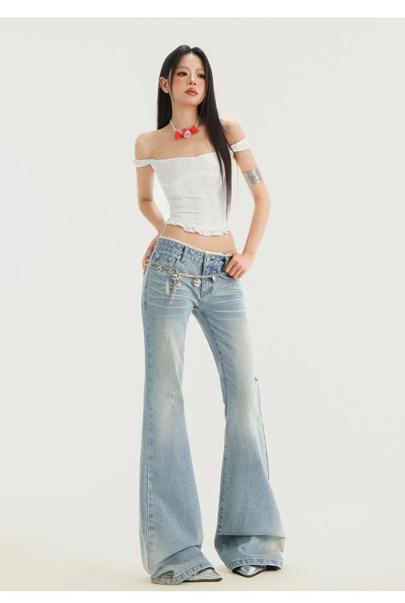 2025 nuevo encaje para damas micro primavera y verano nuevo azul claro lavado tiro bajo pantalones acampanados delgados
