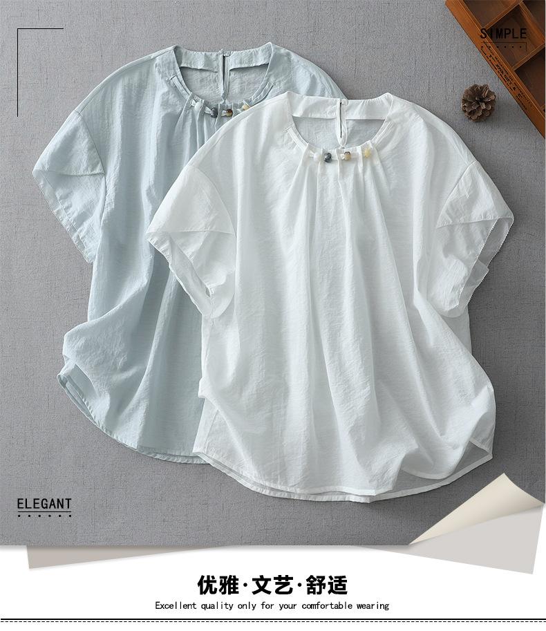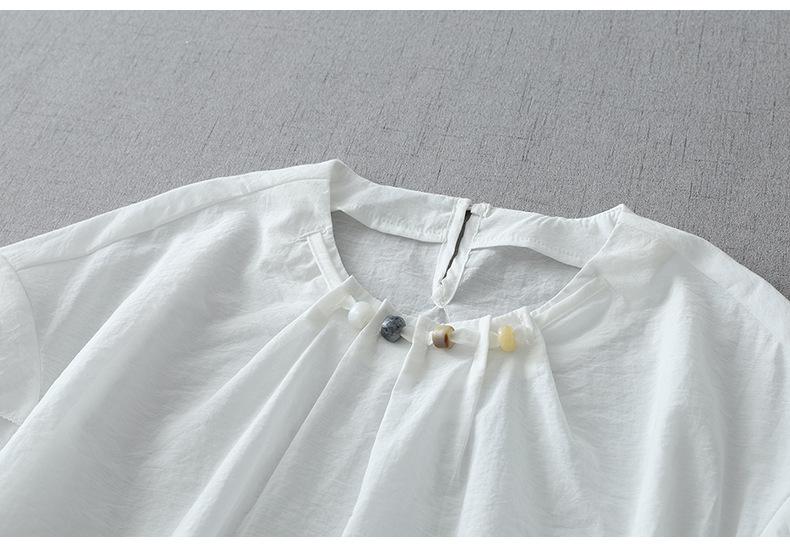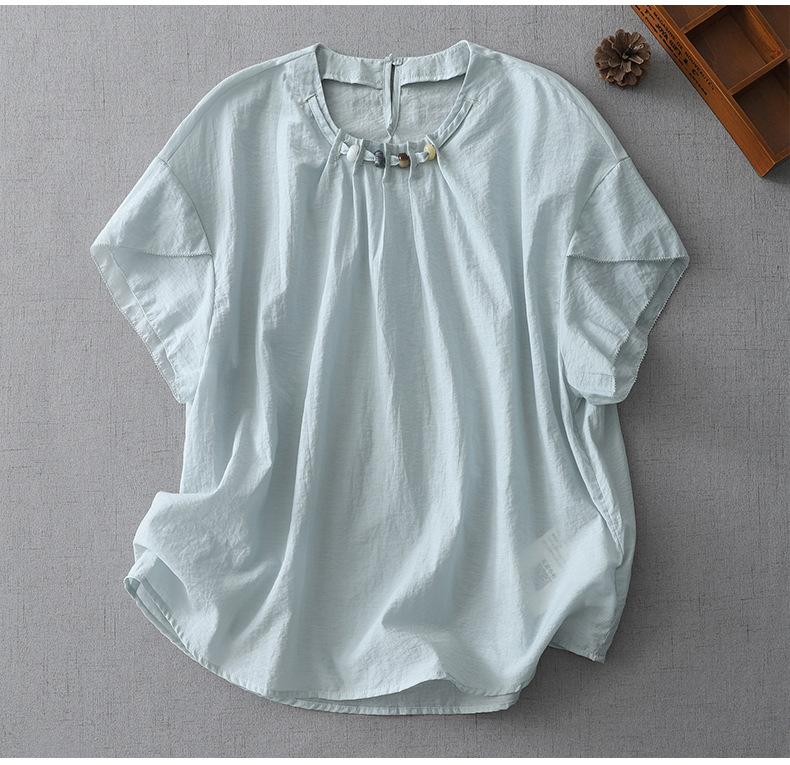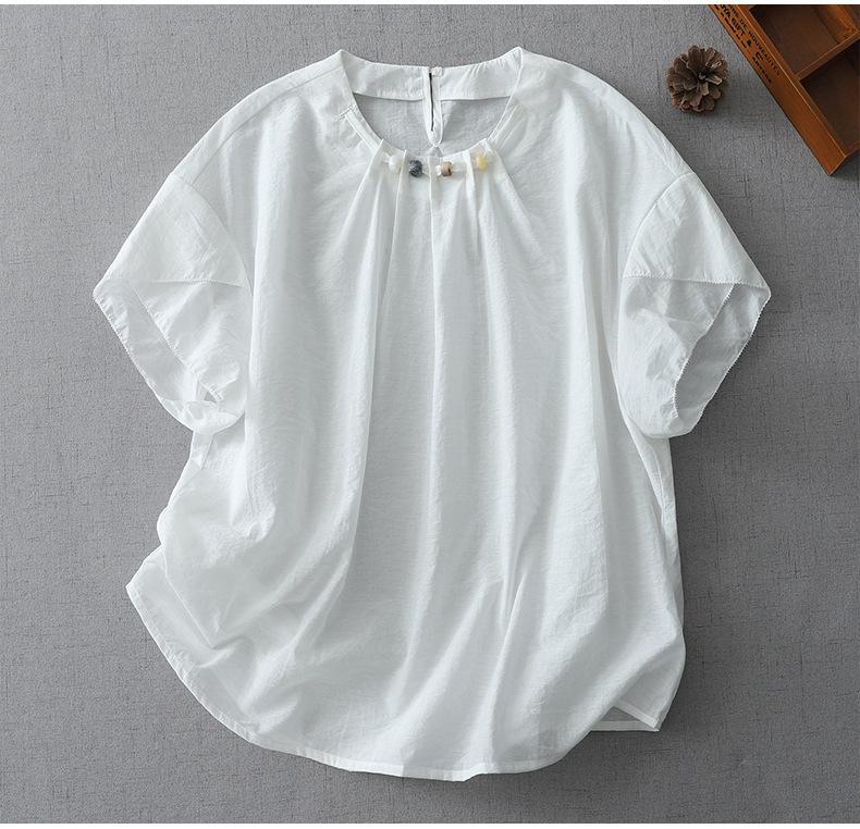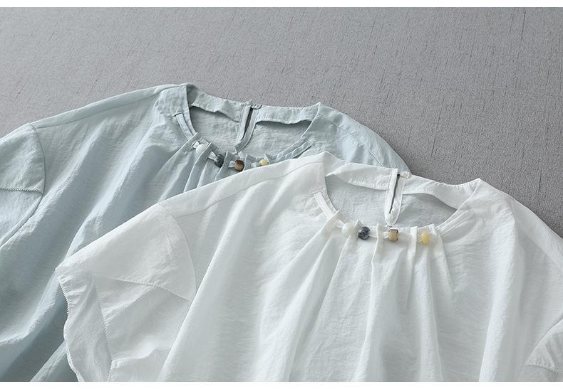 Sentido del Diseño 2025 Único y Chic Lujo Ligero Reductor de Edad Estilo Occidental Camisa de Manga Corta Camisa de Temperamento de Verano para Mujer Top