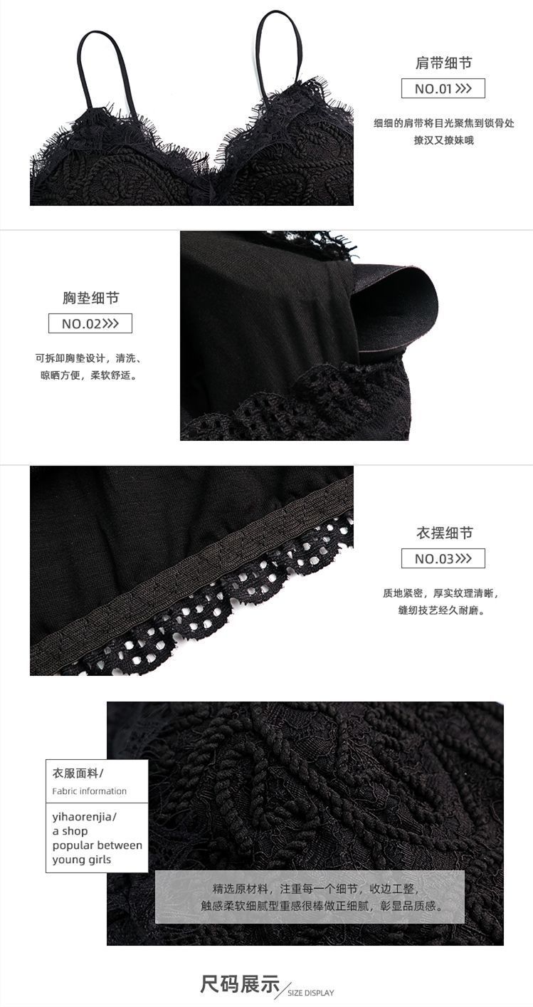 Camisola de Encaje Francés Ropa Exterior y Ropa Interior para Mujer Diseño de Verano Nicho Sexy Hermoso Top de Tubo de Espalda Ins