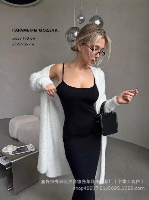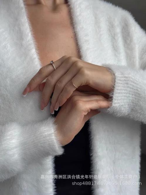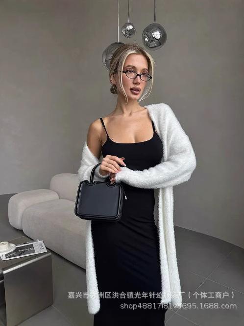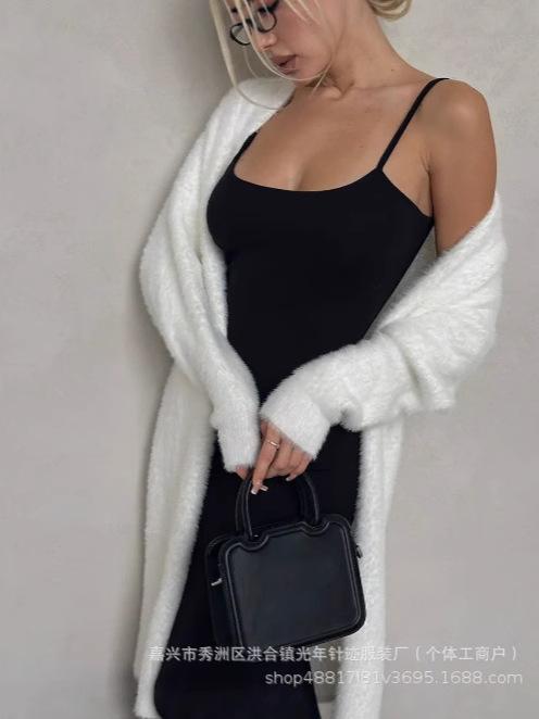 Suéter Cárdigan de Terciopelo Visón Blanco Largo Holgado Estilo Perezoso Chaqueta Tejida para Mujer Otoño e Invierno Suéter Exterior Suave Ceroso para Mujer