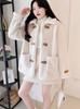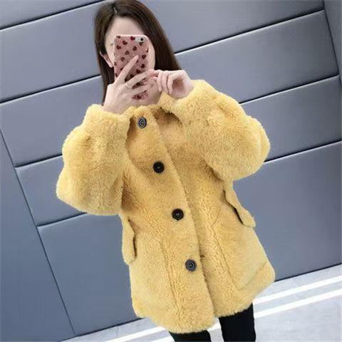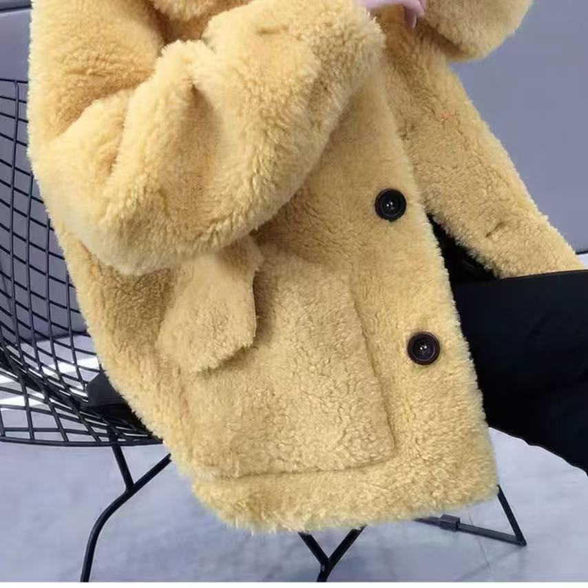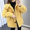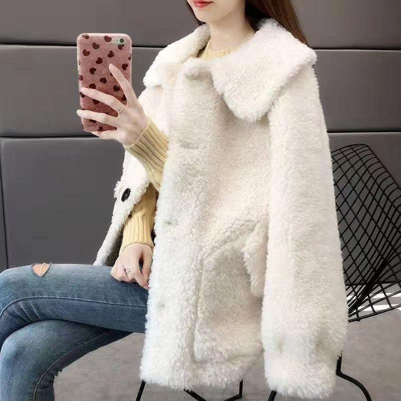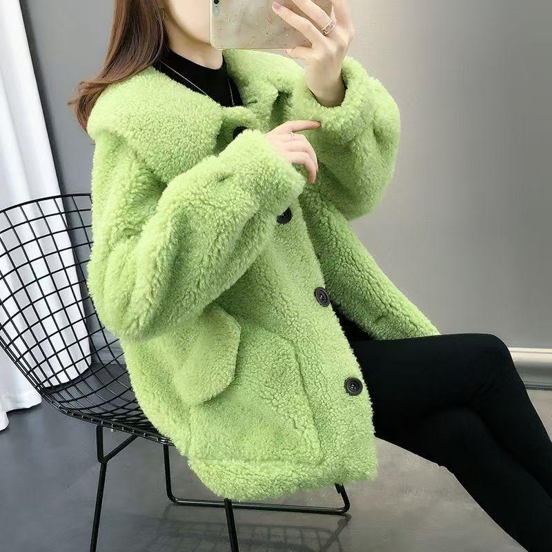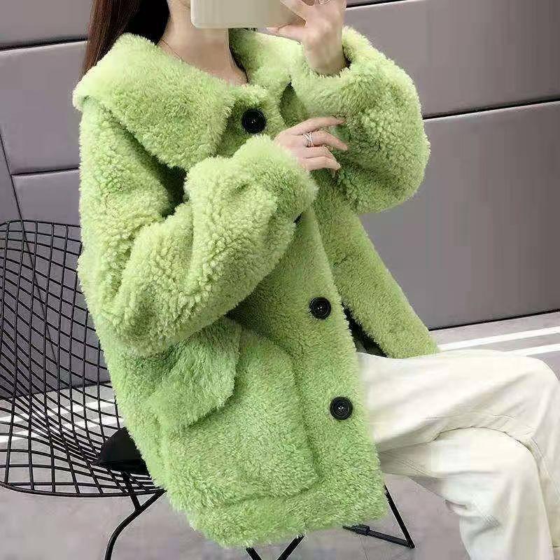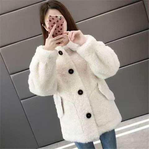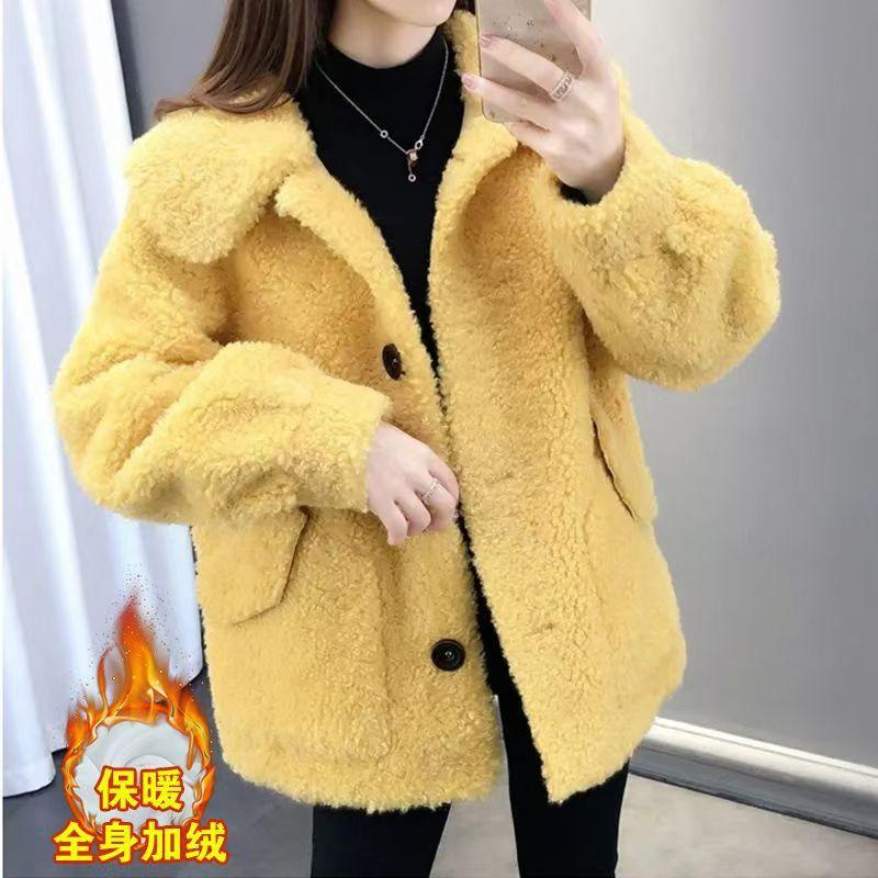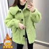 Abrigo de Lana de Cordero para Mujer, Top Corto Estilo Coreano para Primavera e Invierno, Abrigo de Solapa de Imitación Lana de Cordero de Manga Larga para Mujeres Petite