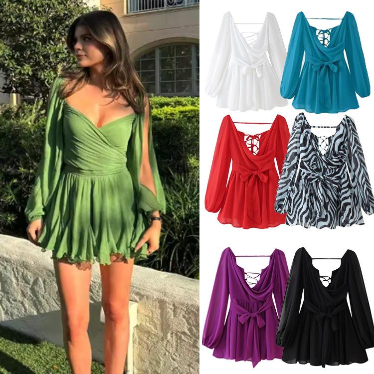 Aliexpress Venta al por Mayor Transfronteriza Amazon Europeo y Americano Verano Nueva Moda Sexy Vestido de Mujer sin Espalda