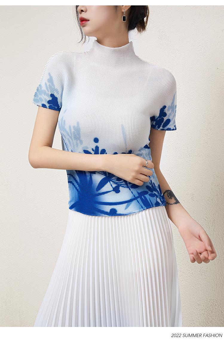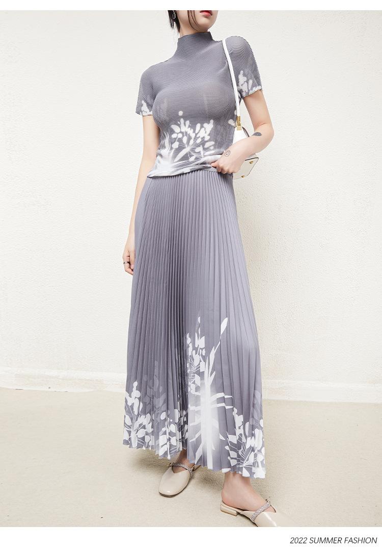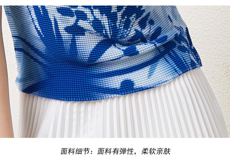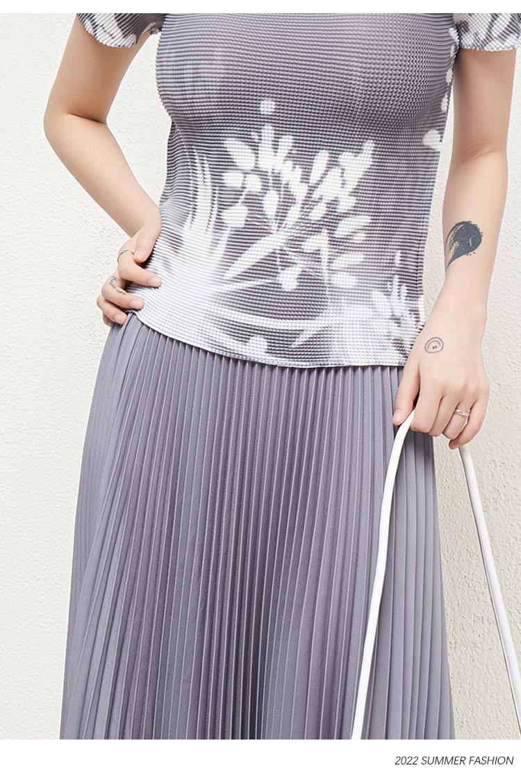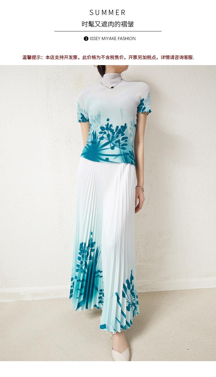 Miyake Falda Nueva Plisada Diseño Nicho Estampado Versátil Para Viajar Slim Top Traje de Moda de Verano para Mujer