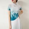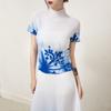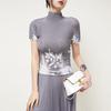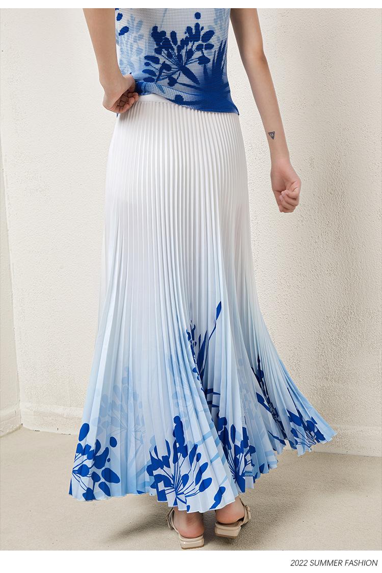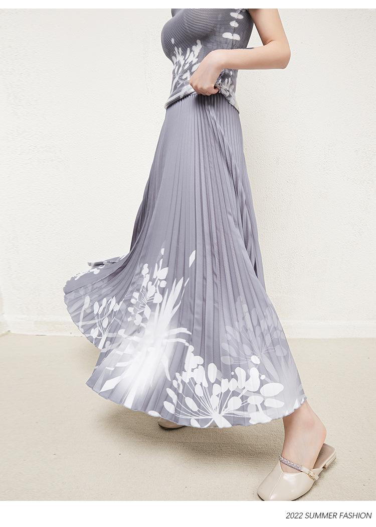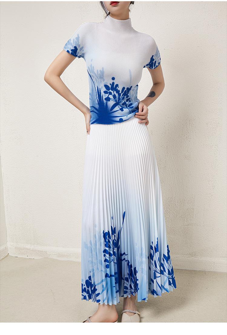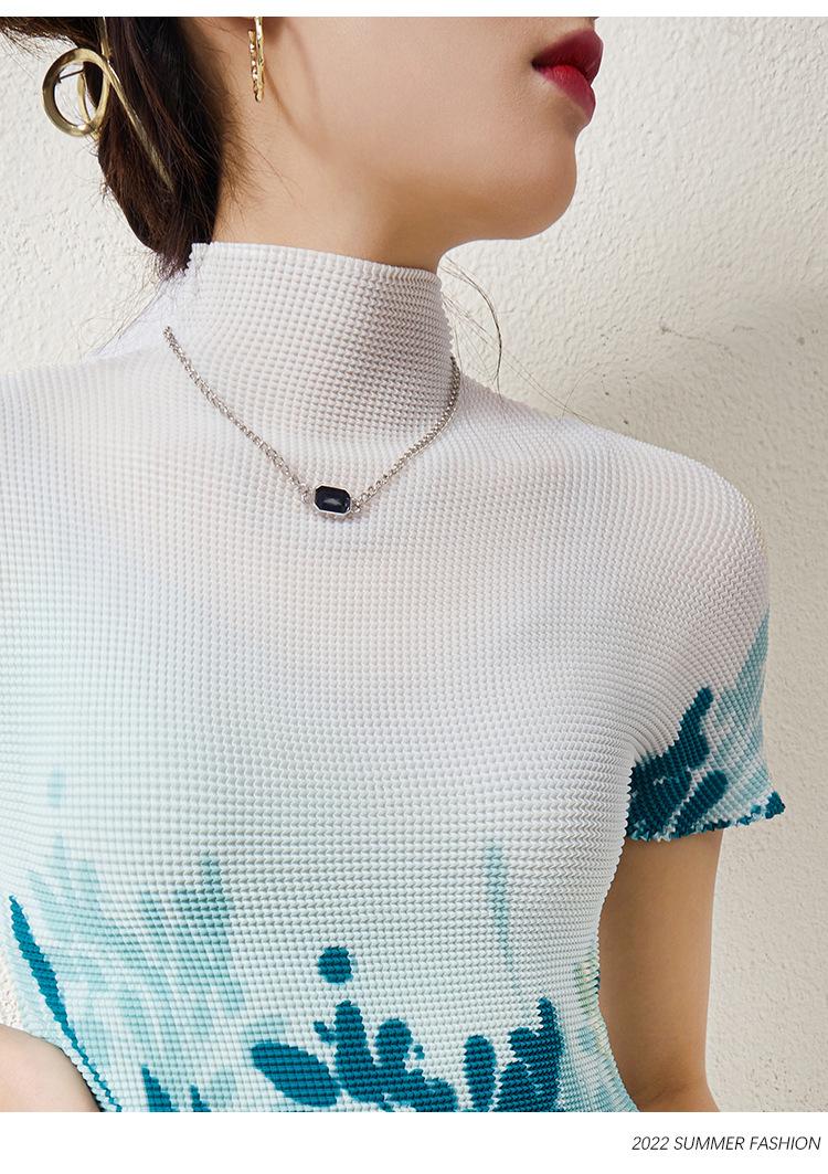 Miyake Falda Nueva Plisada Diseño Nicho Estampado Versátil Para Viajar Slim Top Traje de Moda de Verano para Mujer