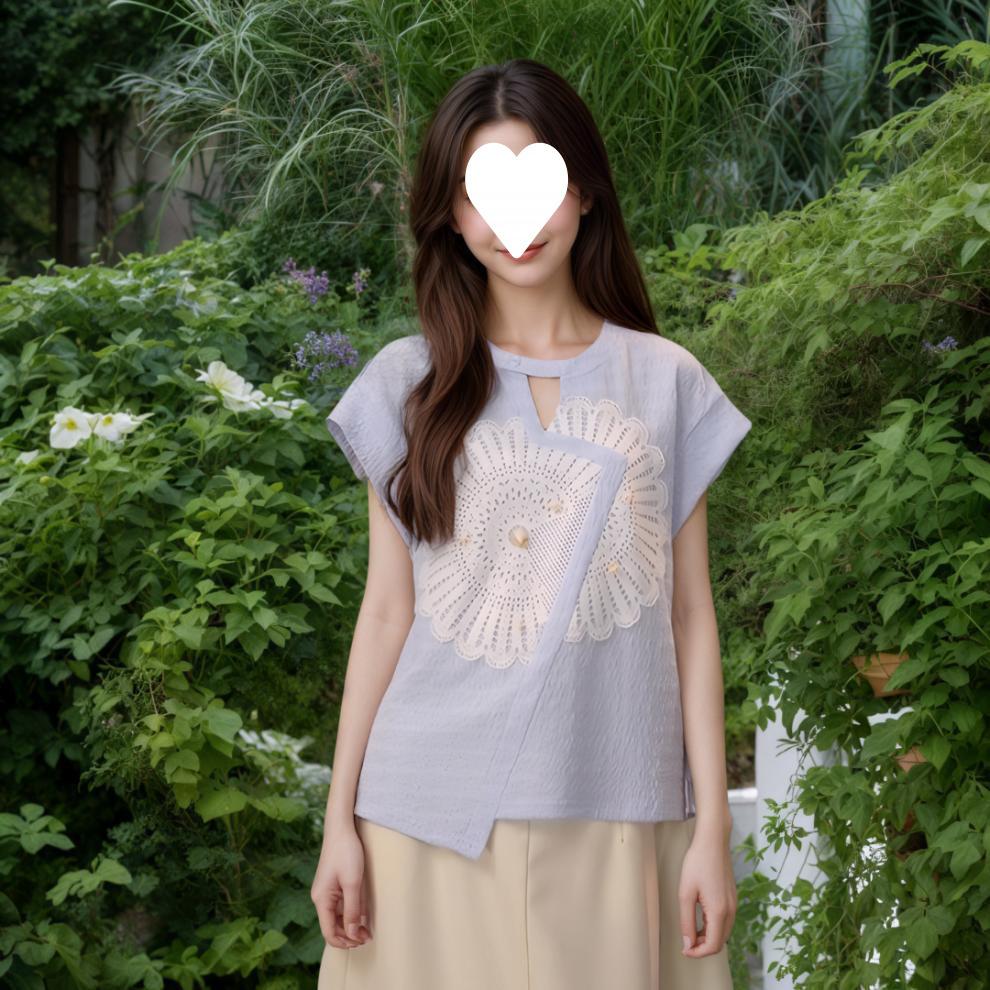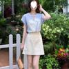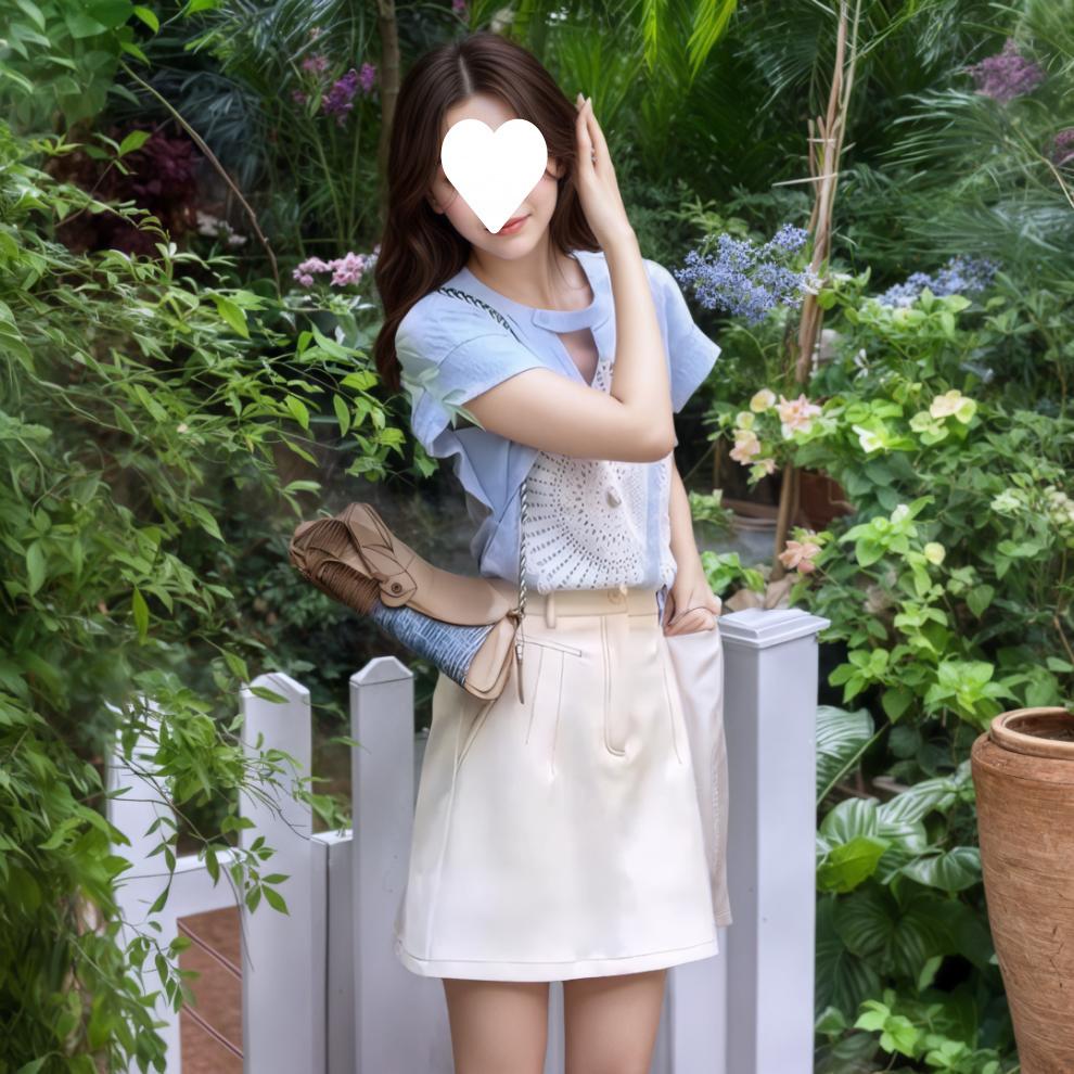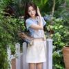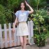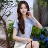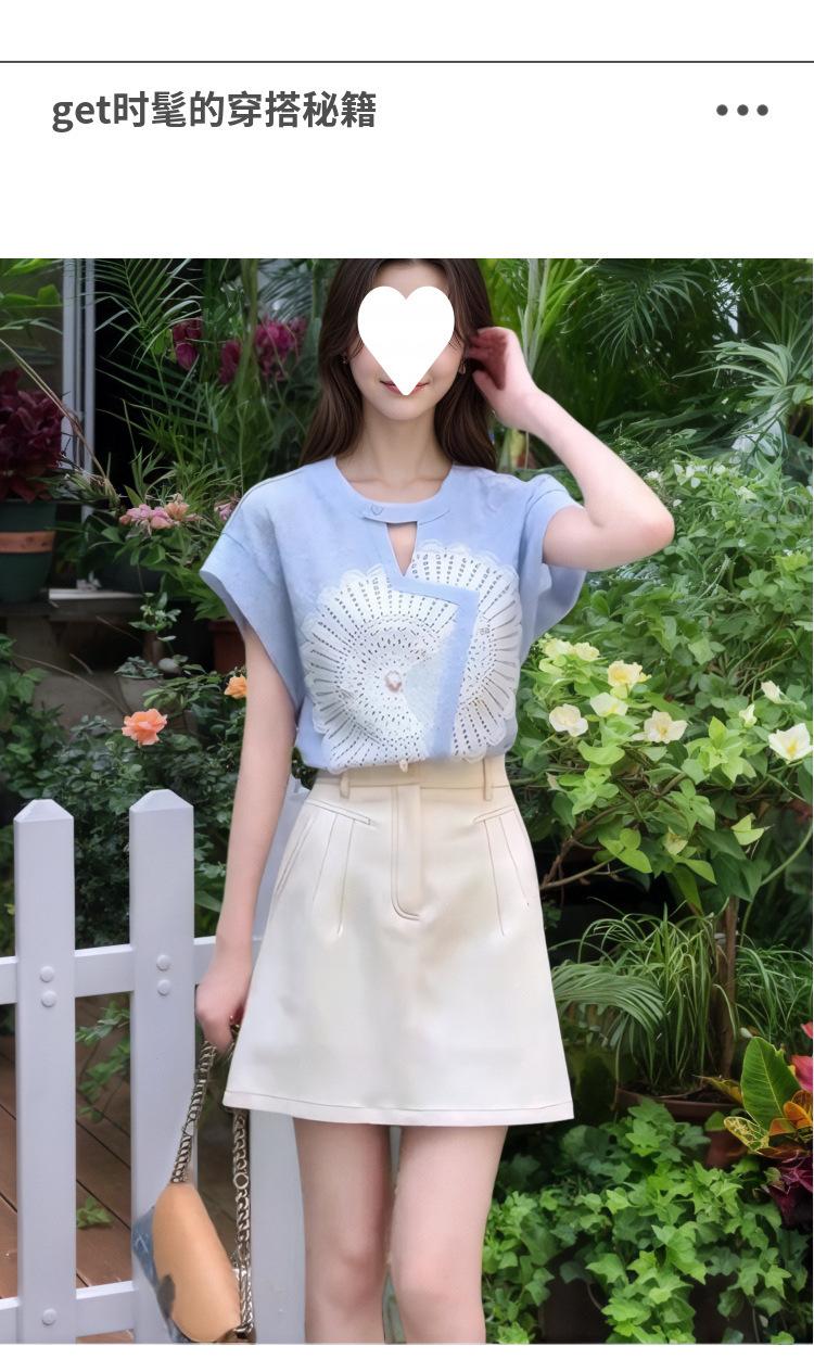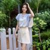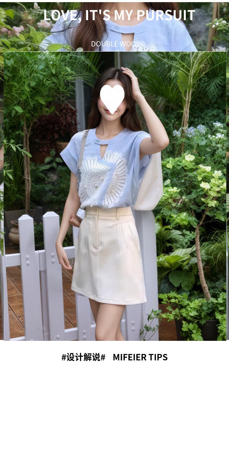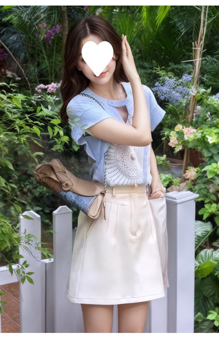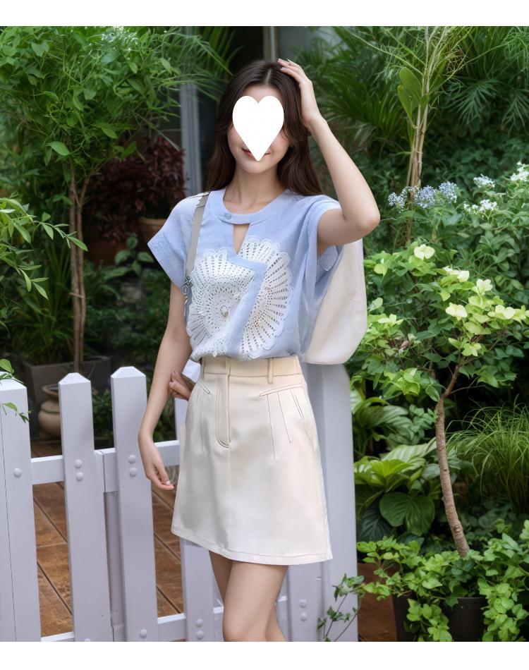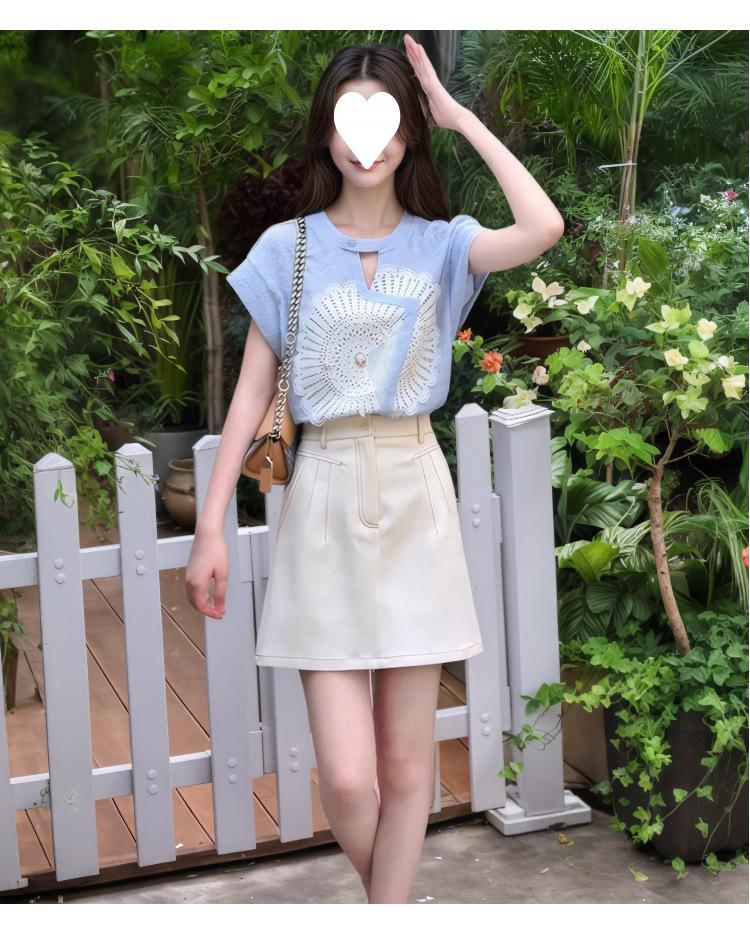 Verano 2025 Nuevo Conjunto de Dos Piezas para Mujer Azul Fresco Calado Anti-Brillo Manga al Hombro Top Falda de Mezclilla