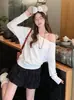 Deseo Puro Sexy Hombro Descubierto Ajustado Adelgazante Spice Girls Camiseta de Manga Larga Nicho Combinable Ins Top de Malla Único para Mujer