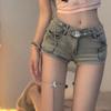 Pantalones vaqueros de cintura alta estilo americano retro para mujer, pantalones cortos ajustados elásticos de Spice Girls de verano, pantalones cortos adelgazantes que combinan con todo.