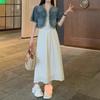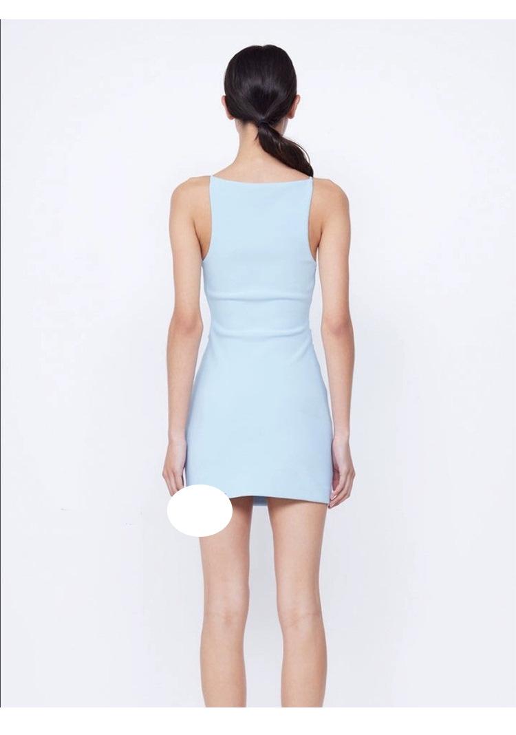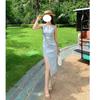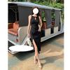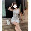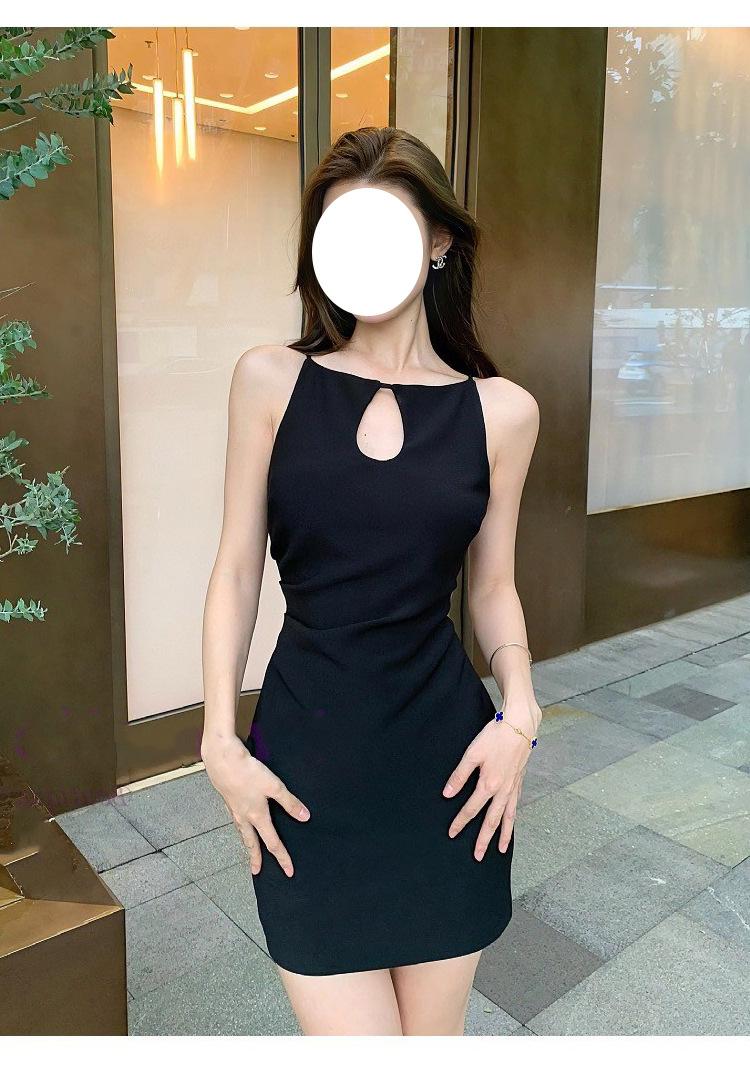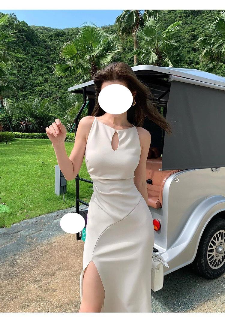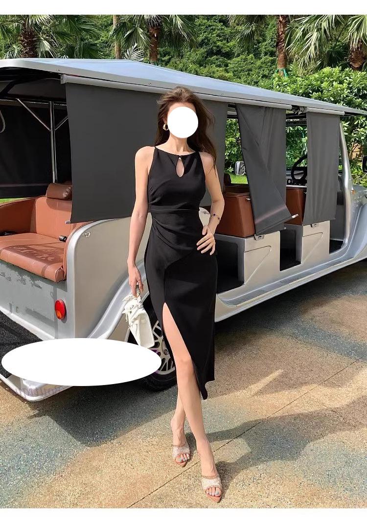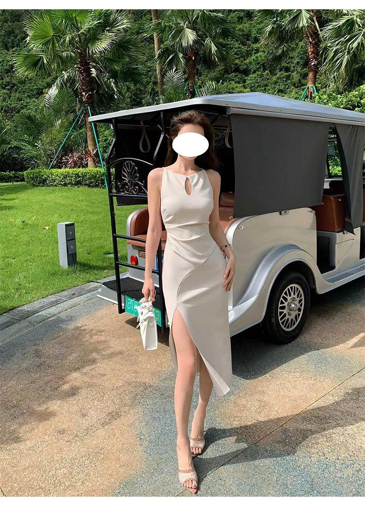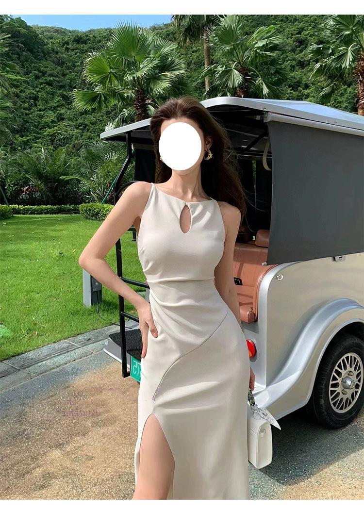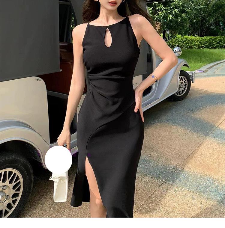 Vestido Elegante de Estilo Francés Nuevo con Sentido de Diseño Nicho para Mujer sin Mangas Cintura Ajustada Adelgazante Abertura Cadera Falda Midi