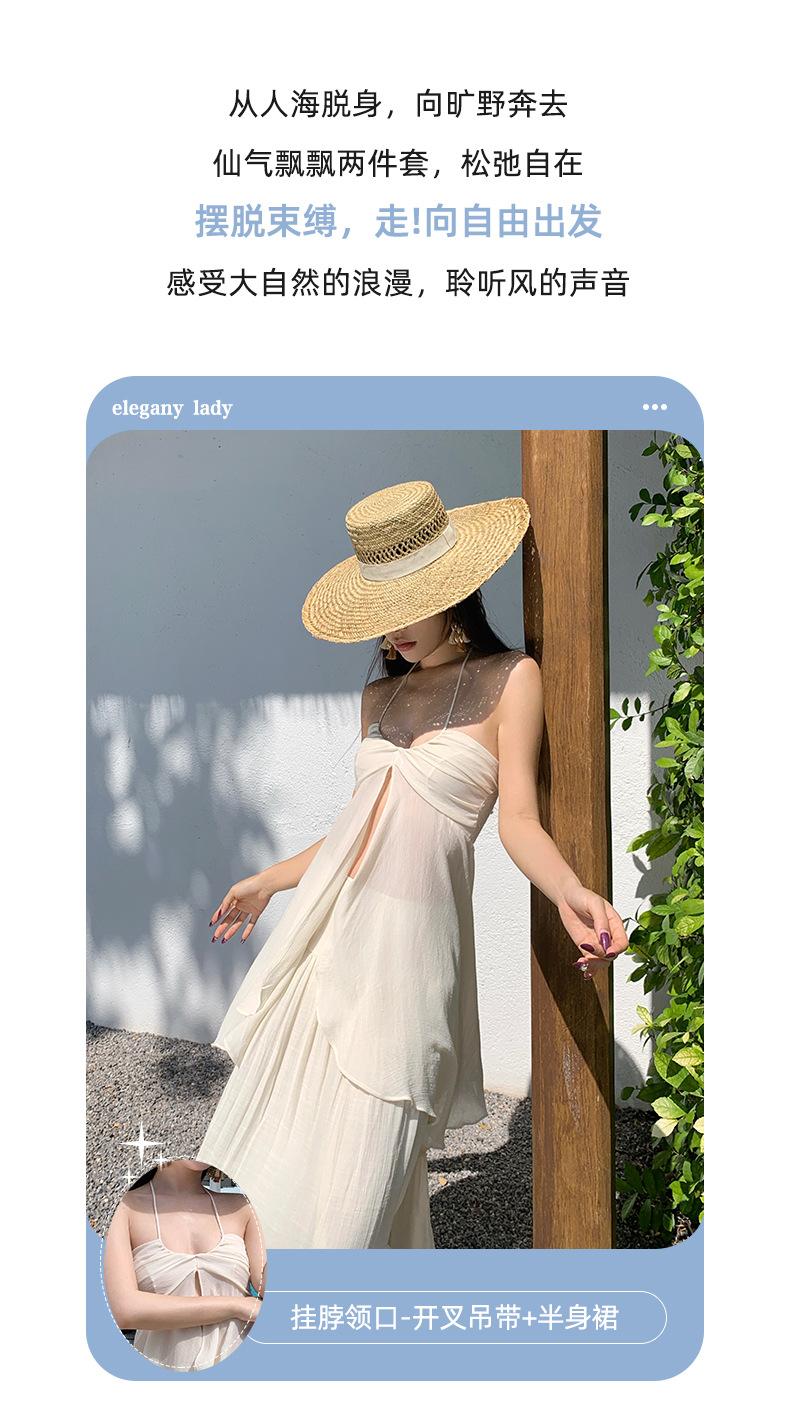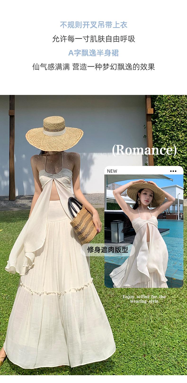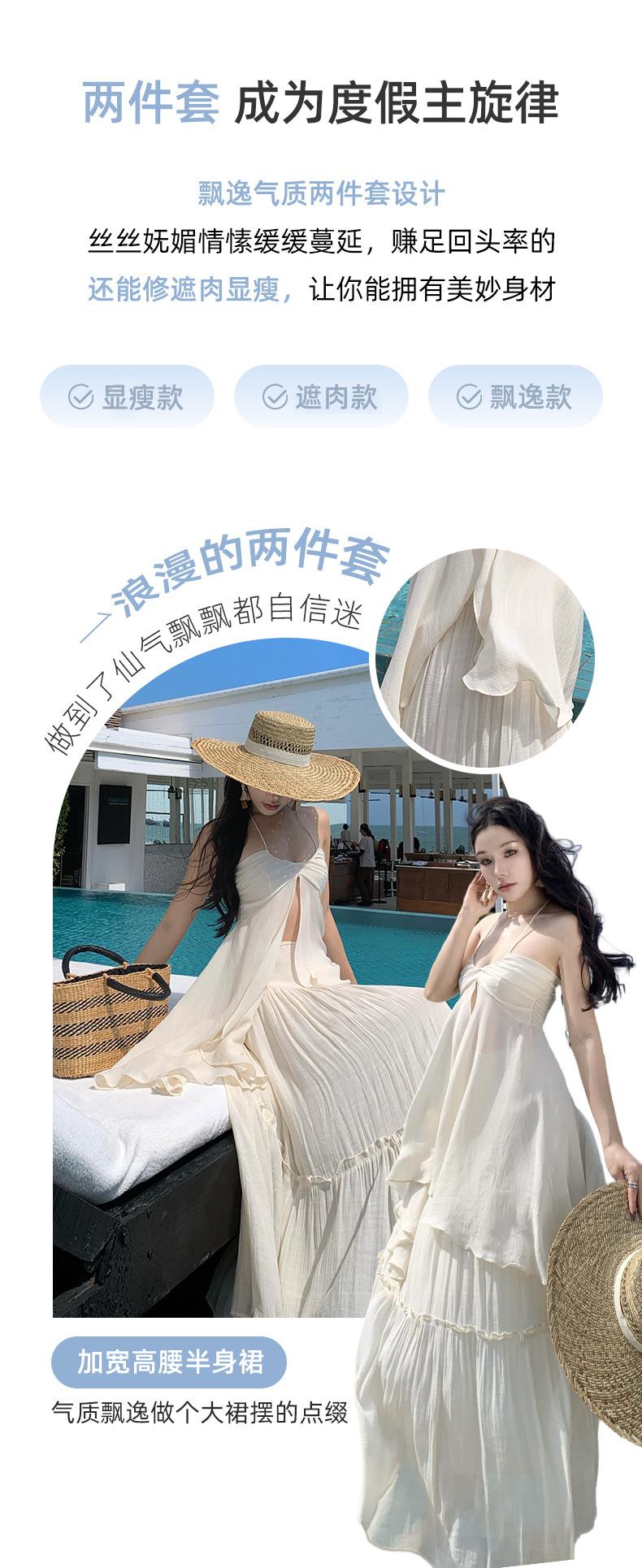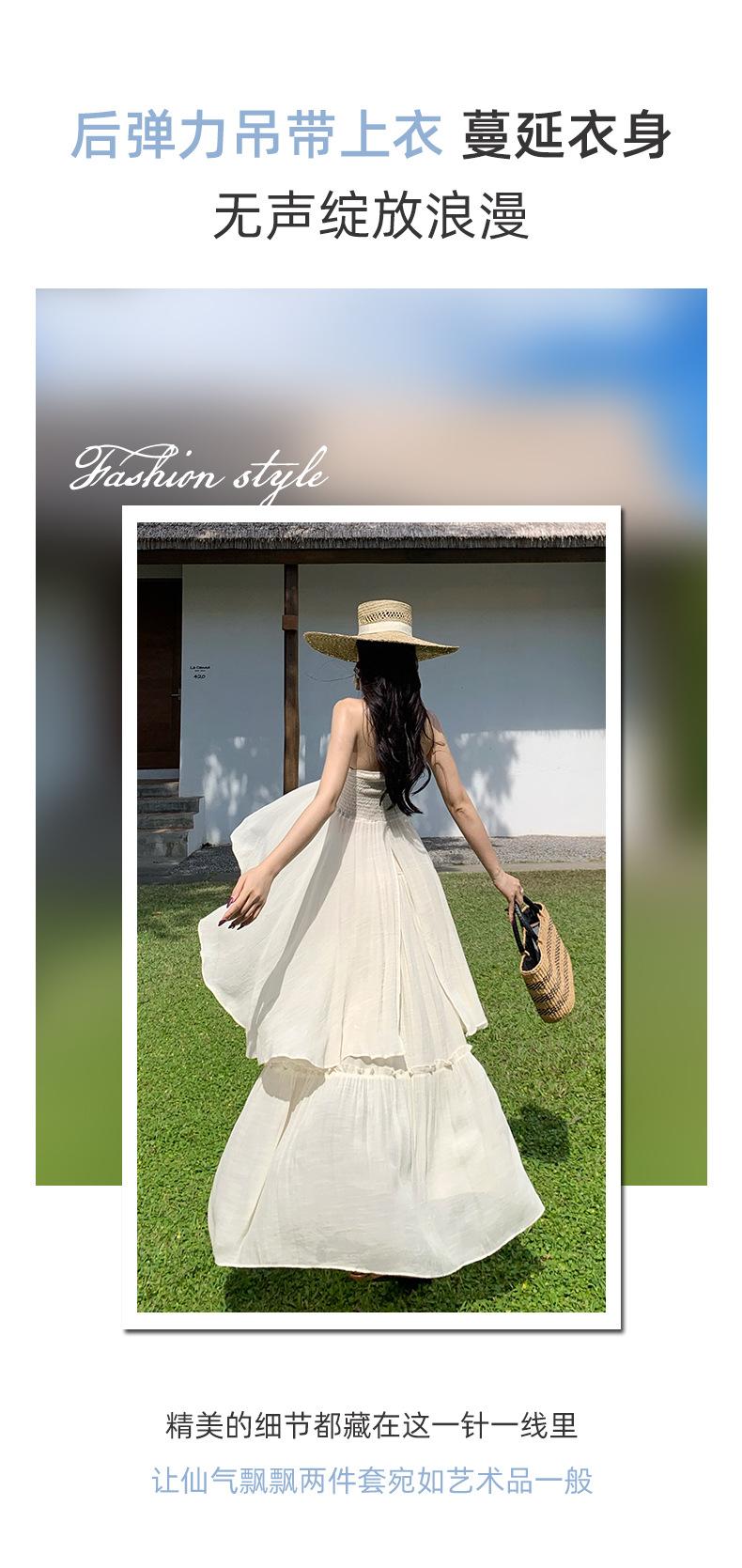 Traje Vacacional Romántico Francés Junto al Mar, Top de Tubo Súper Hada + Falda Súper Hada de Vuelo Amplio