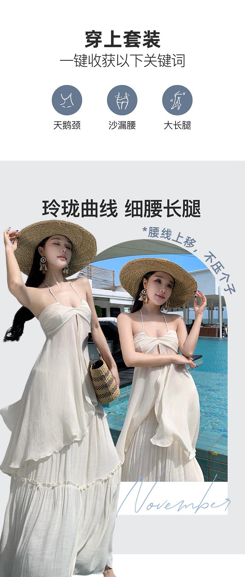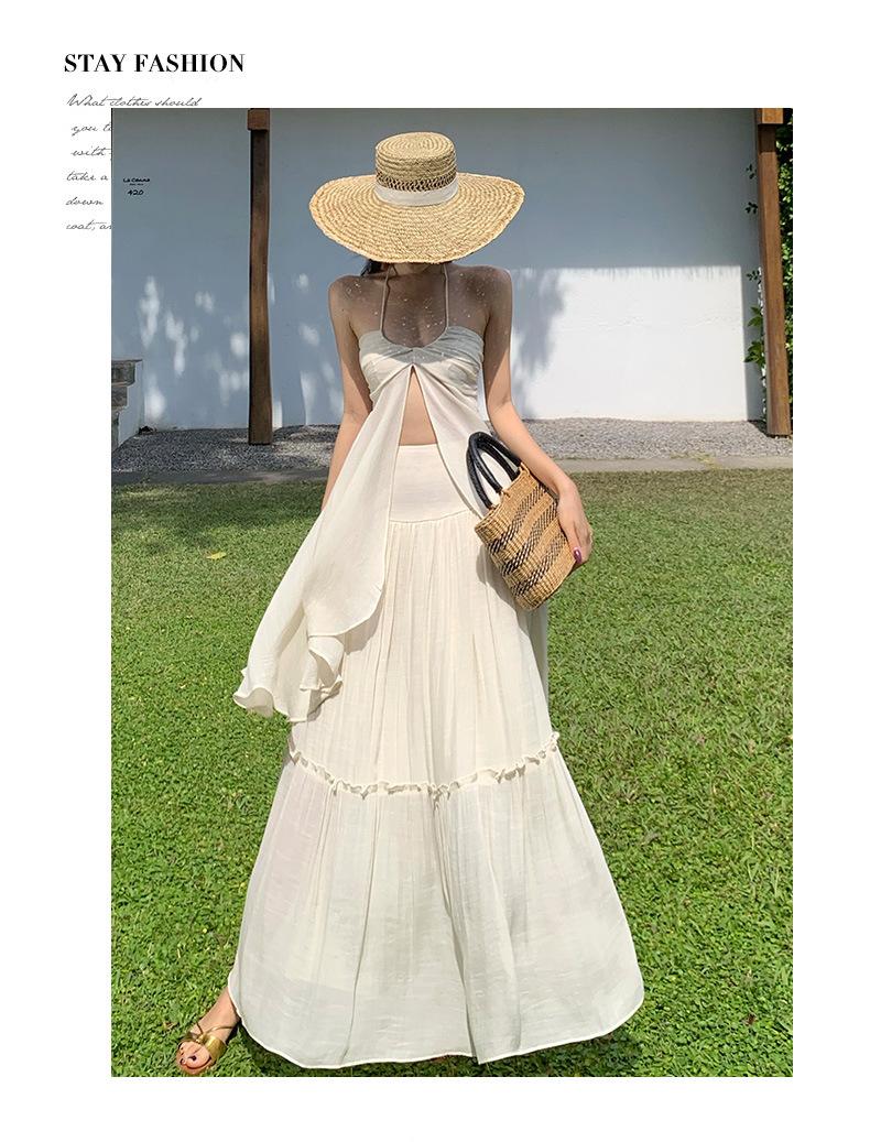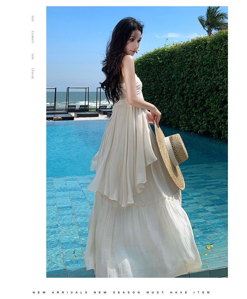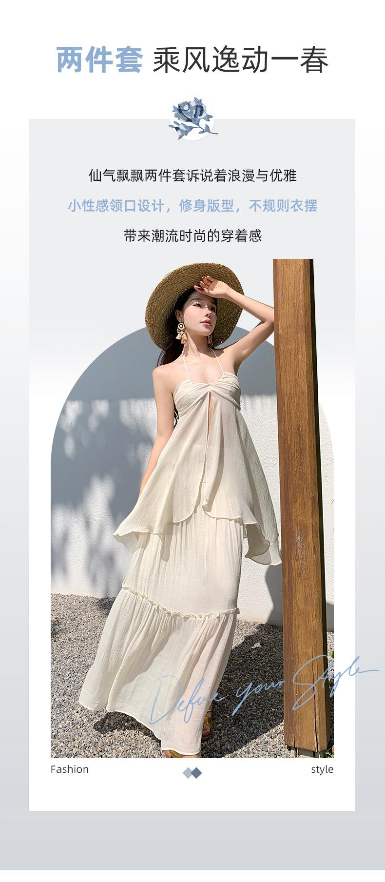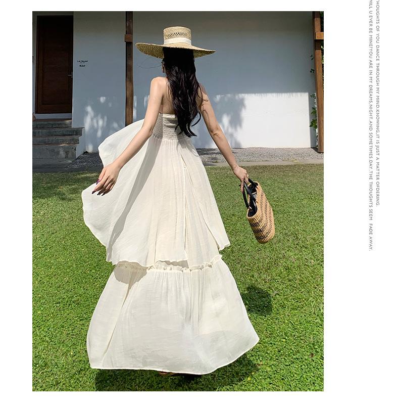 Traje Vacacional Romántico Francés Junto al Mar, Top de Tubo Súper Hada + Falda Súper Hada de Vuelo Amplio