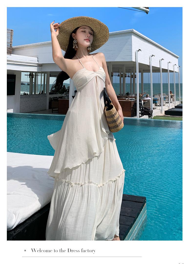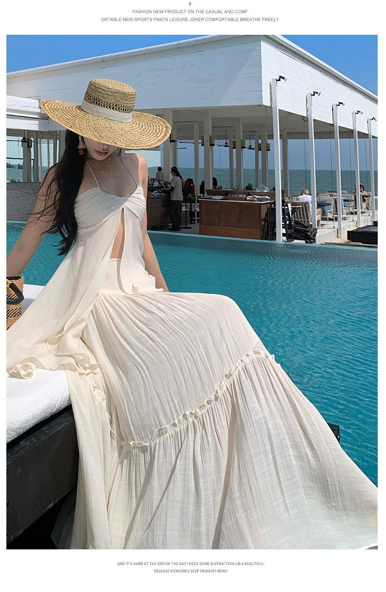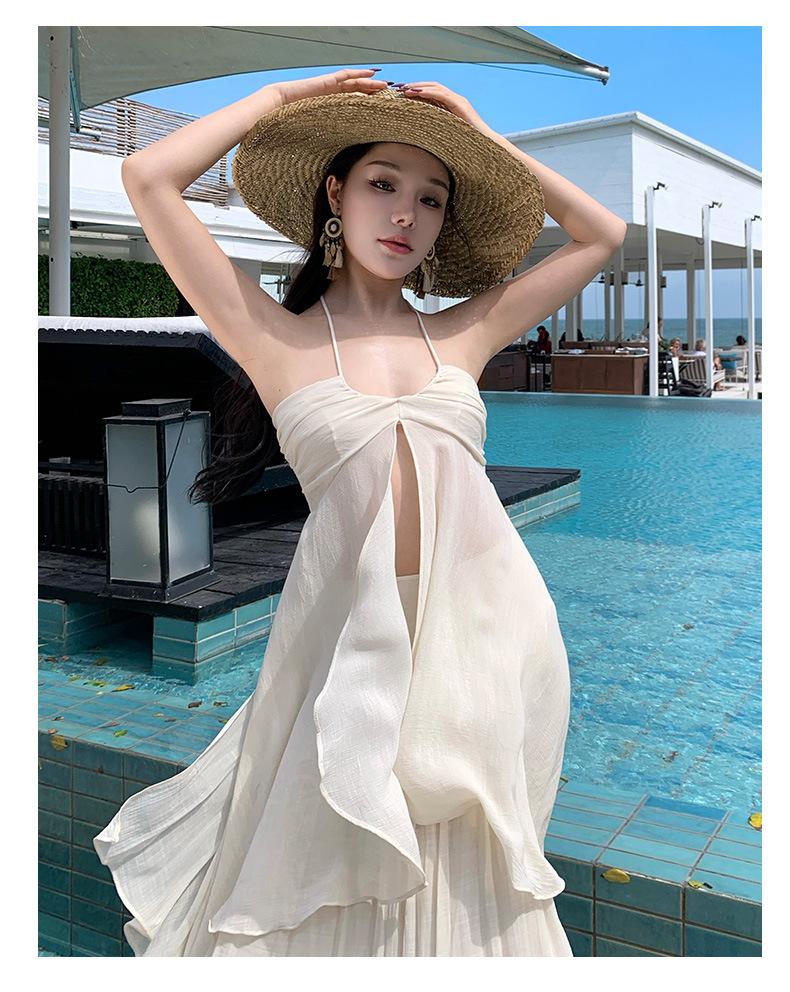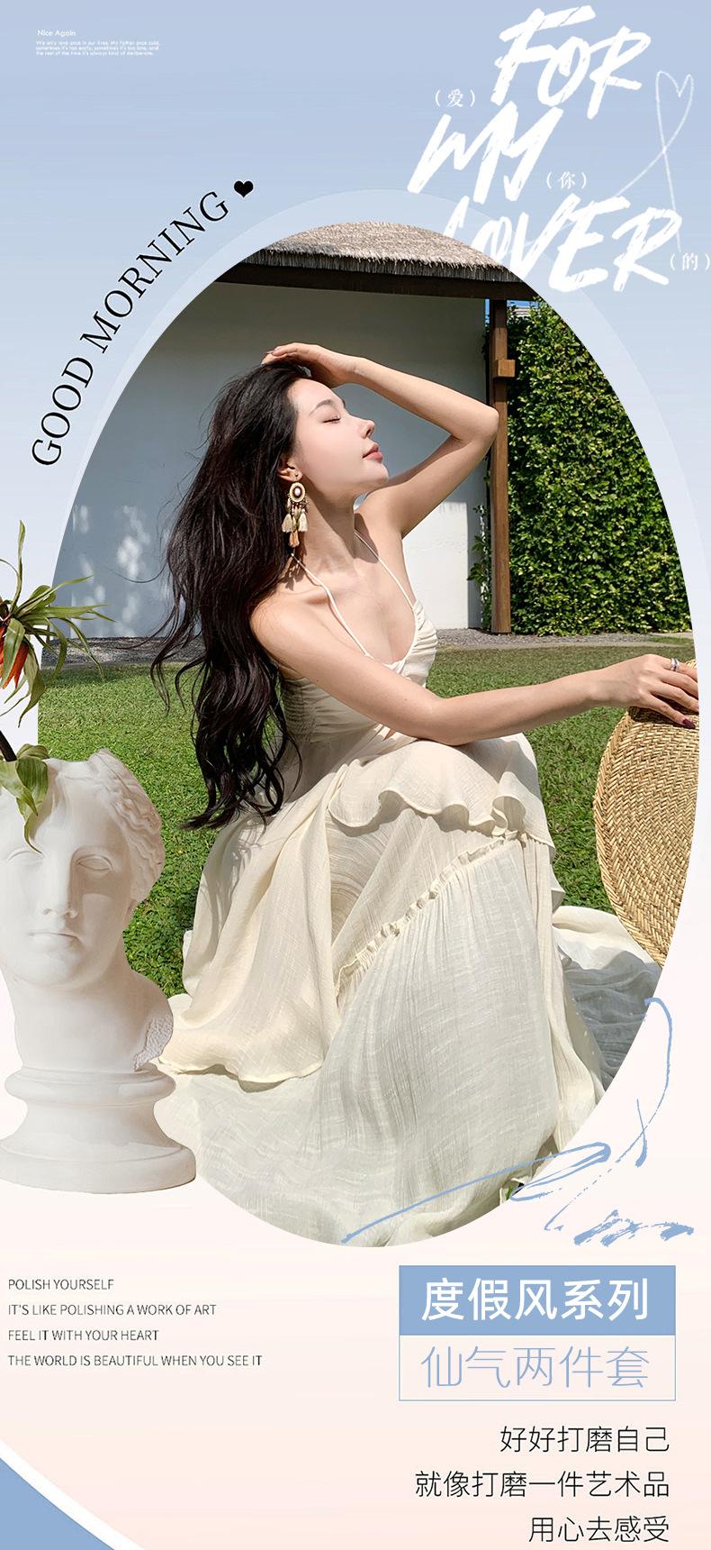 Traje Vacacional Romántico Francés Junto al Mar, Top de Tubo Súper Hada + Falda Súper Hada de Vuelo Amplio