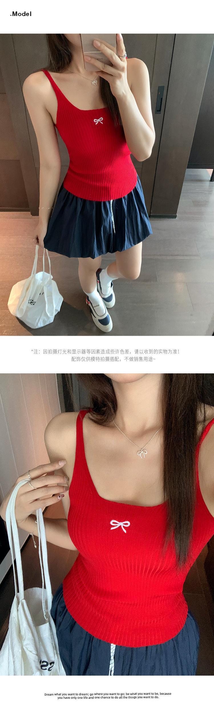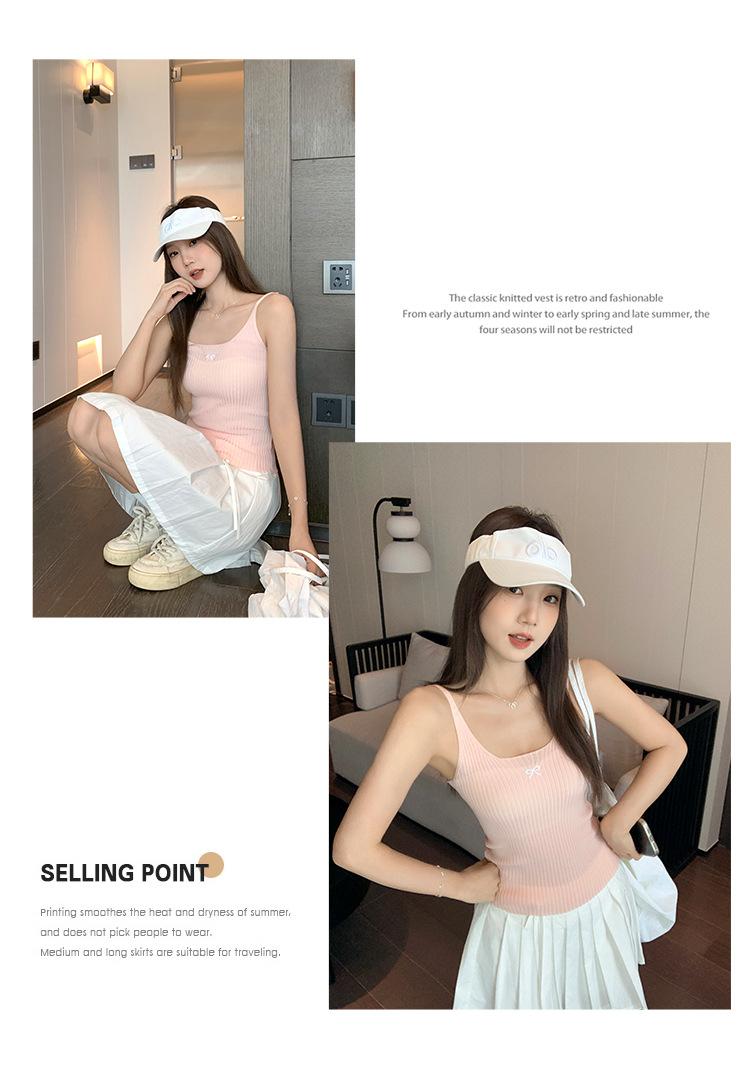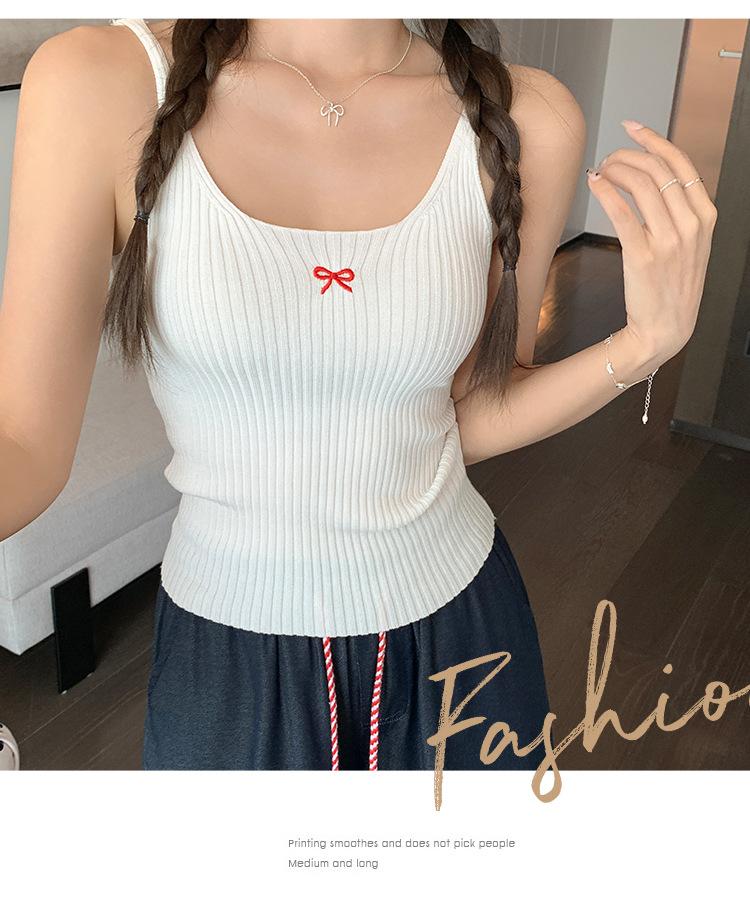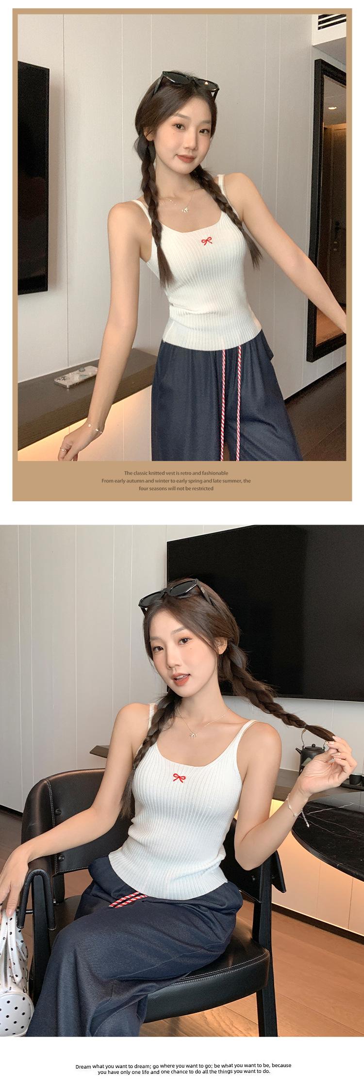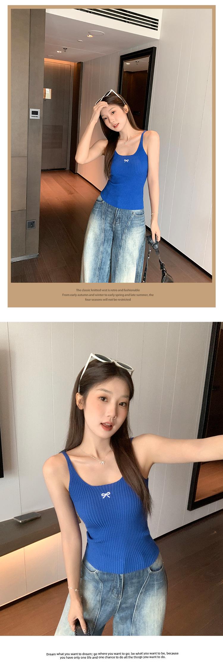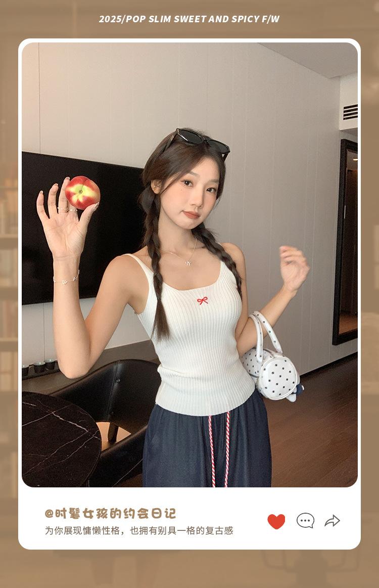Camisola Delgada Americana Hot Girl para Mujer con Espalda Hermosa Sin Mangas Verano 2025 Nuevo Top de Punto Bordado con Lazo