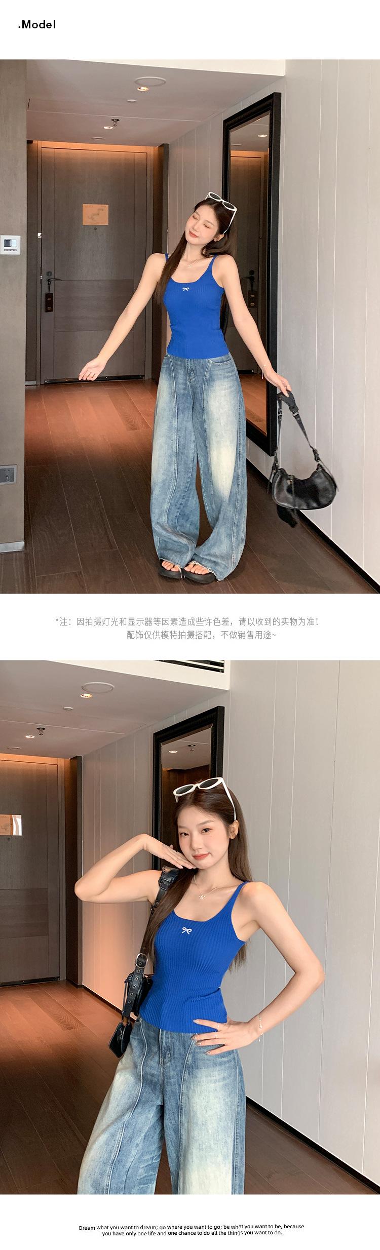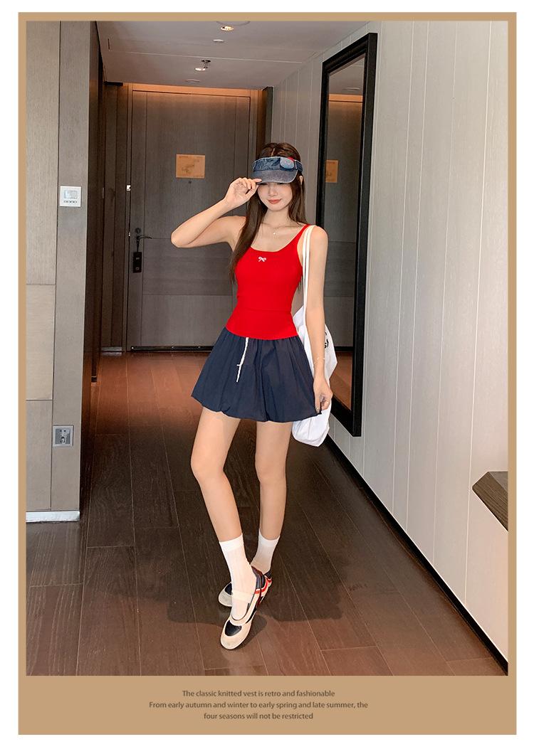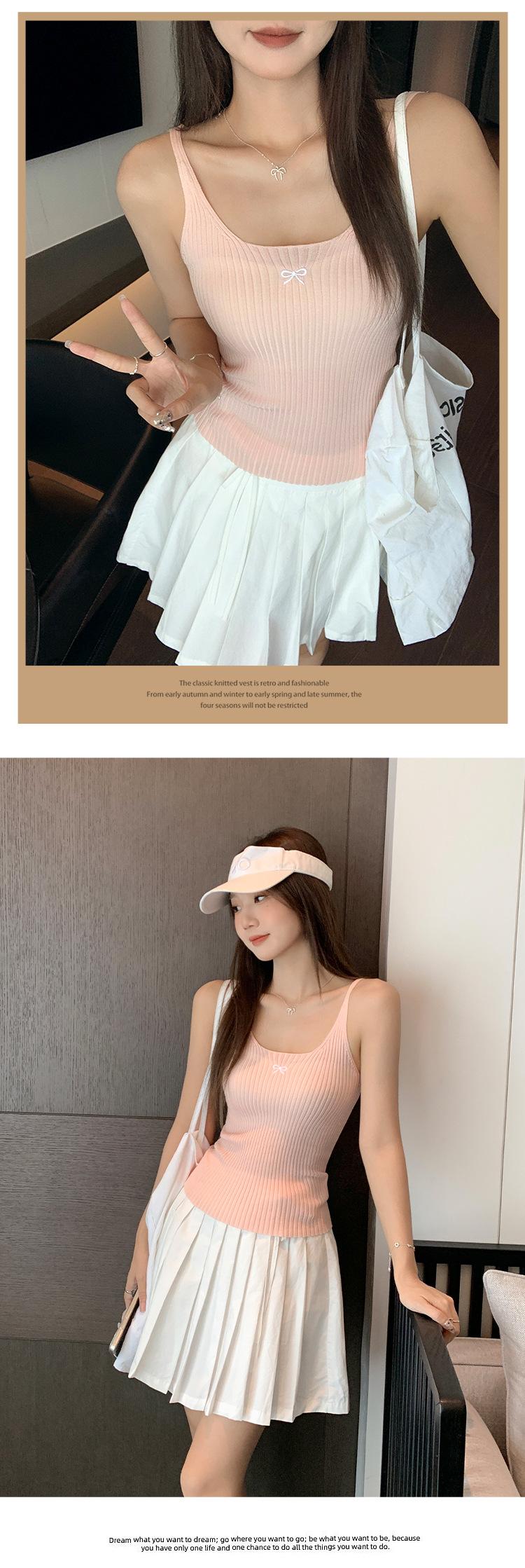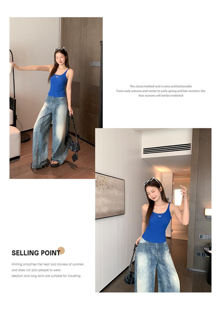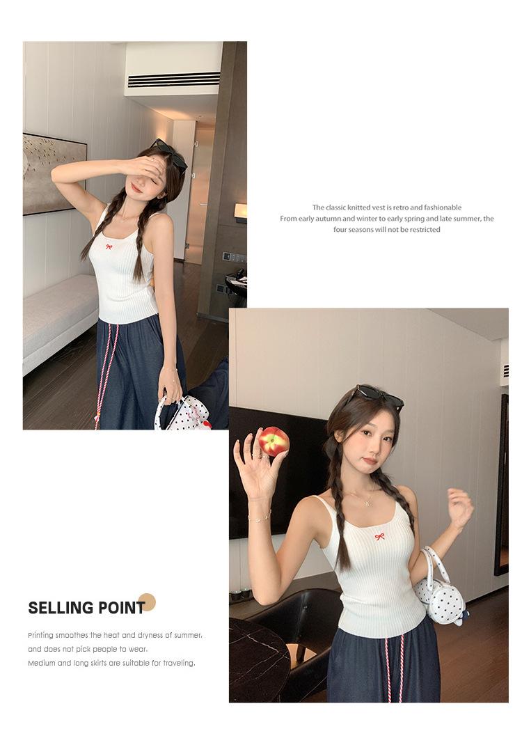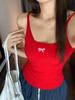 Camisola Delgada Americana Hot Girl para Mujer con Espalda Hermosa Sin Mangas Verano 2025 Nuevo Top de Punto Bordado con Lazo