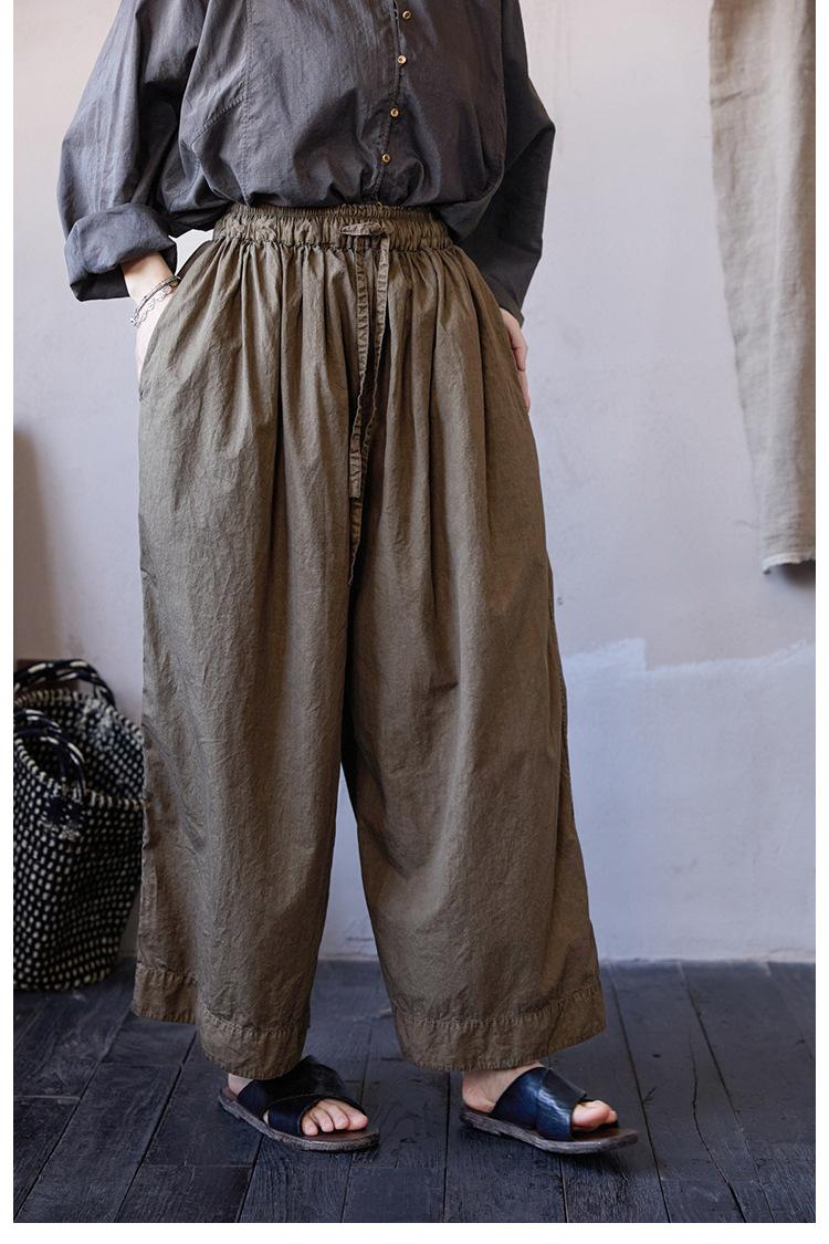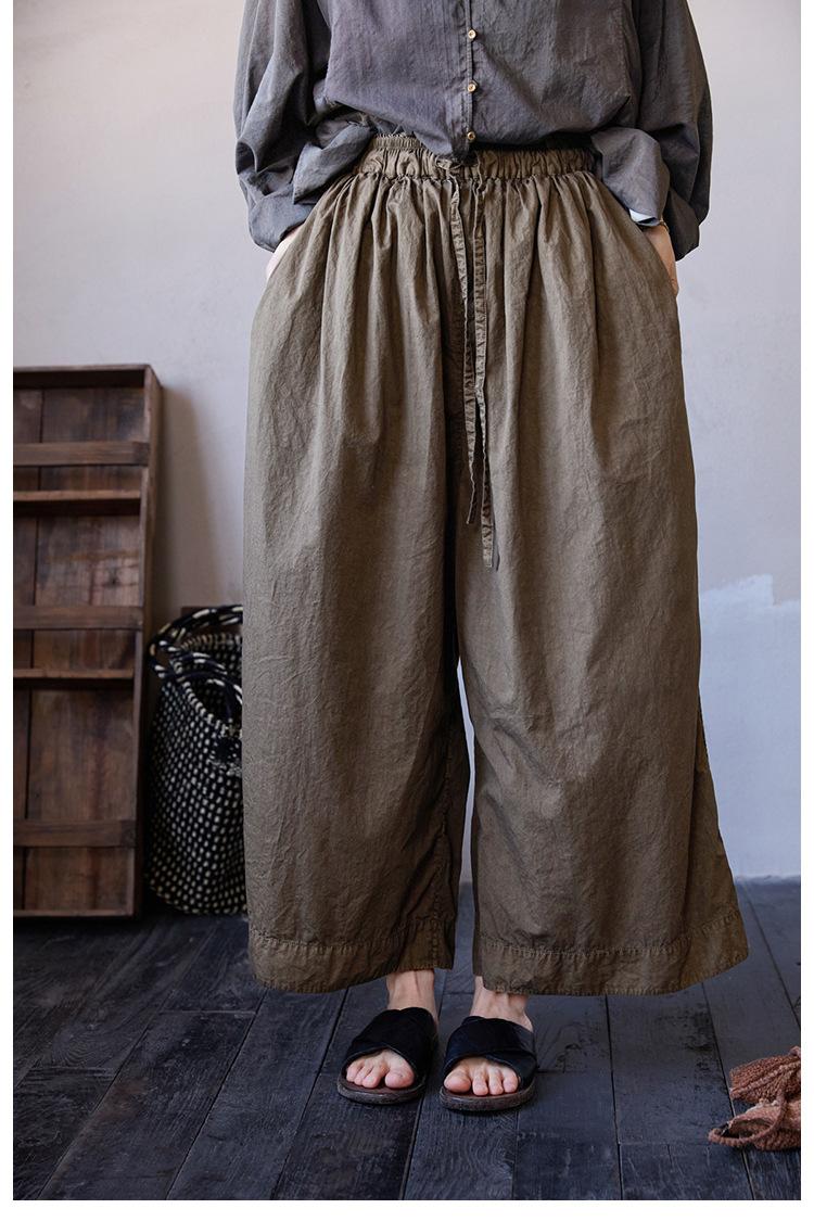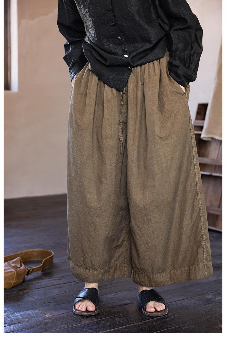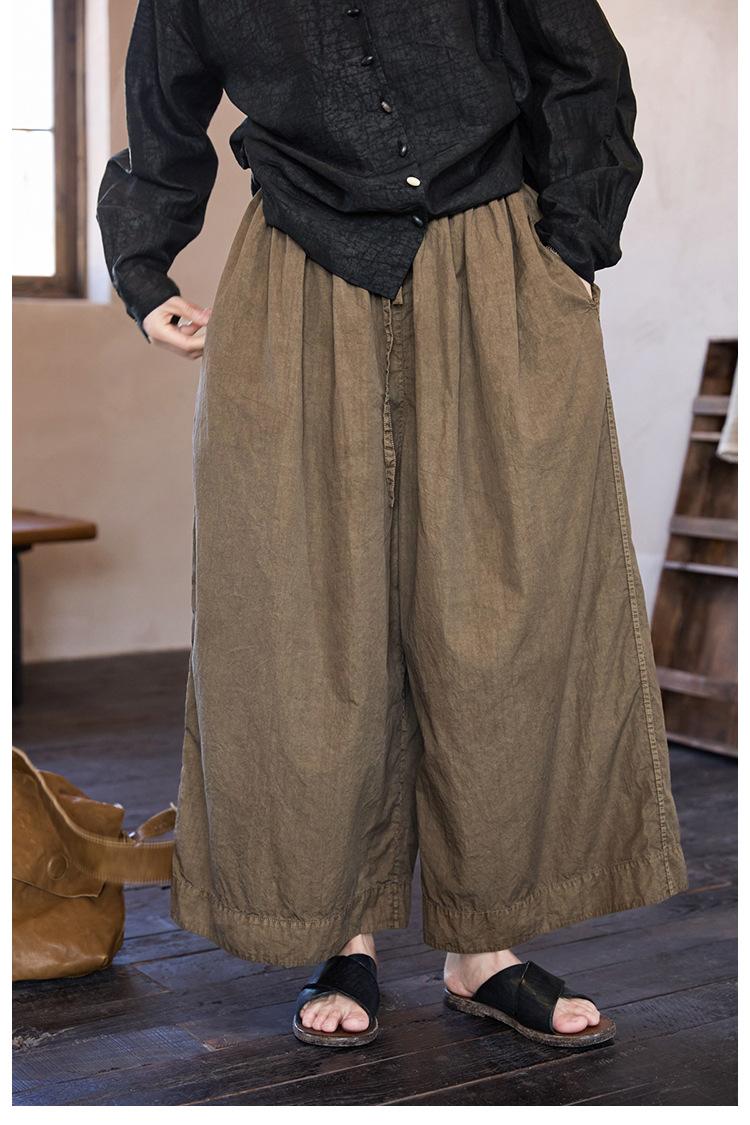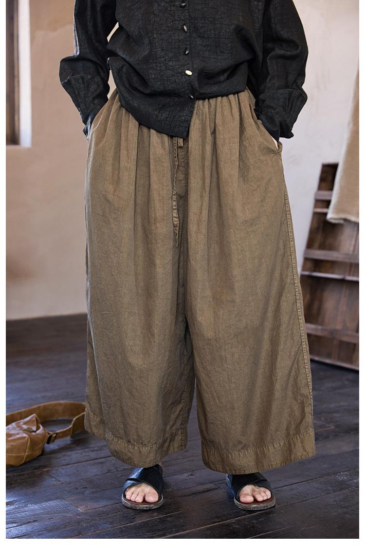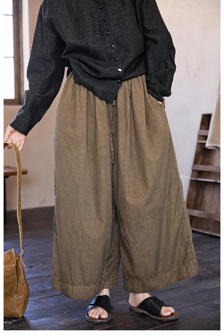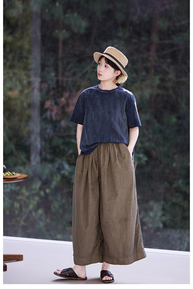 Verano Nuevo Estilo Literario Retro Original Suelto Talla Grande Pantalones Casuales Delgados Color Ramificado Suave y Fresco Pantalones de Pierna Ancha