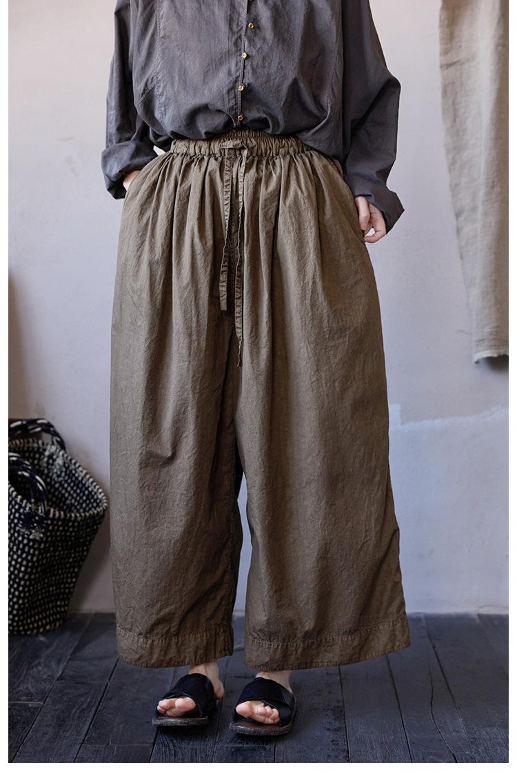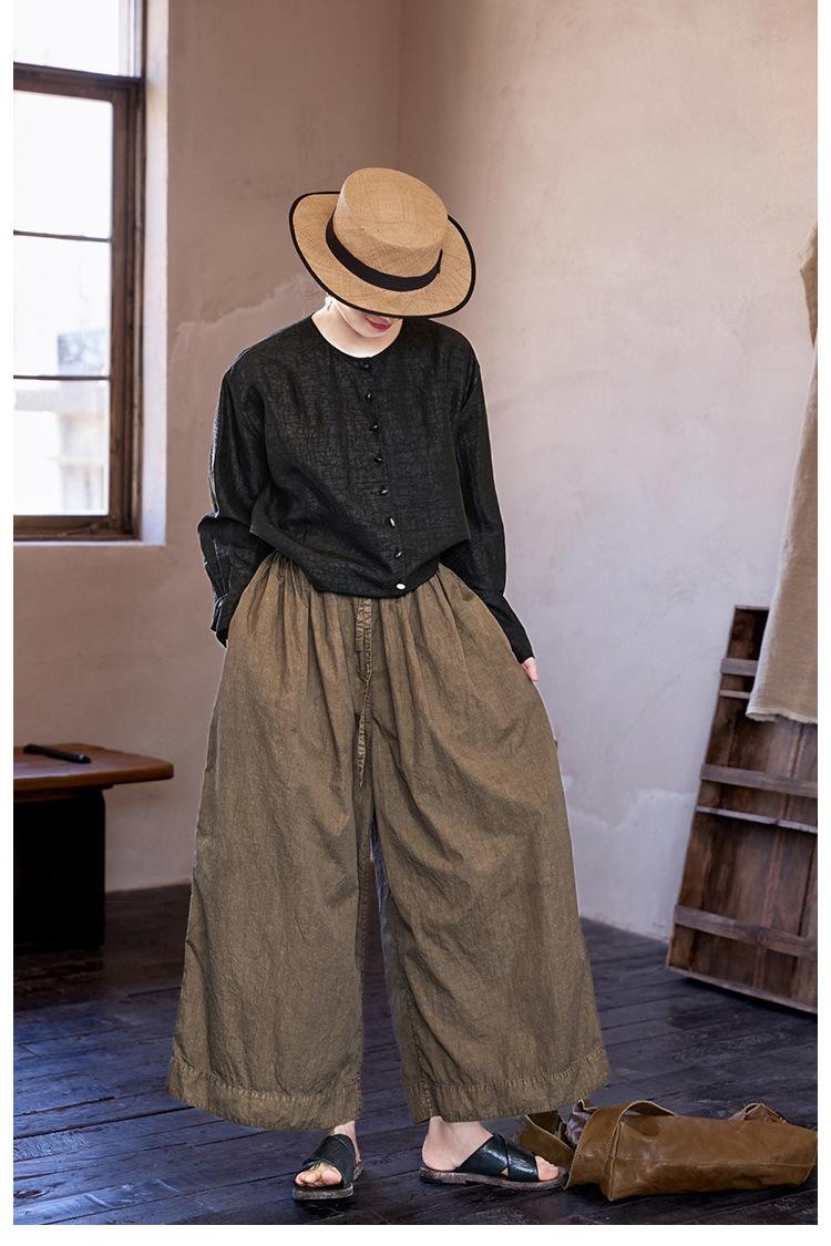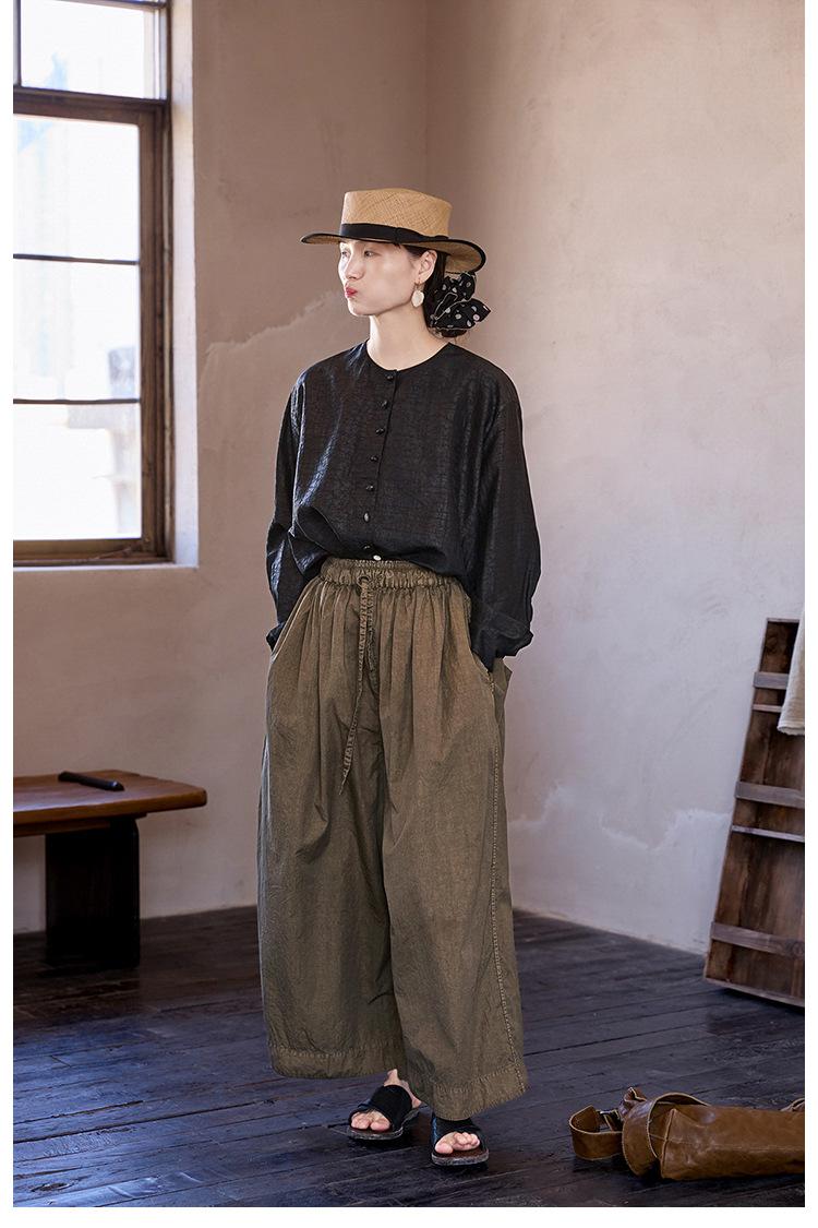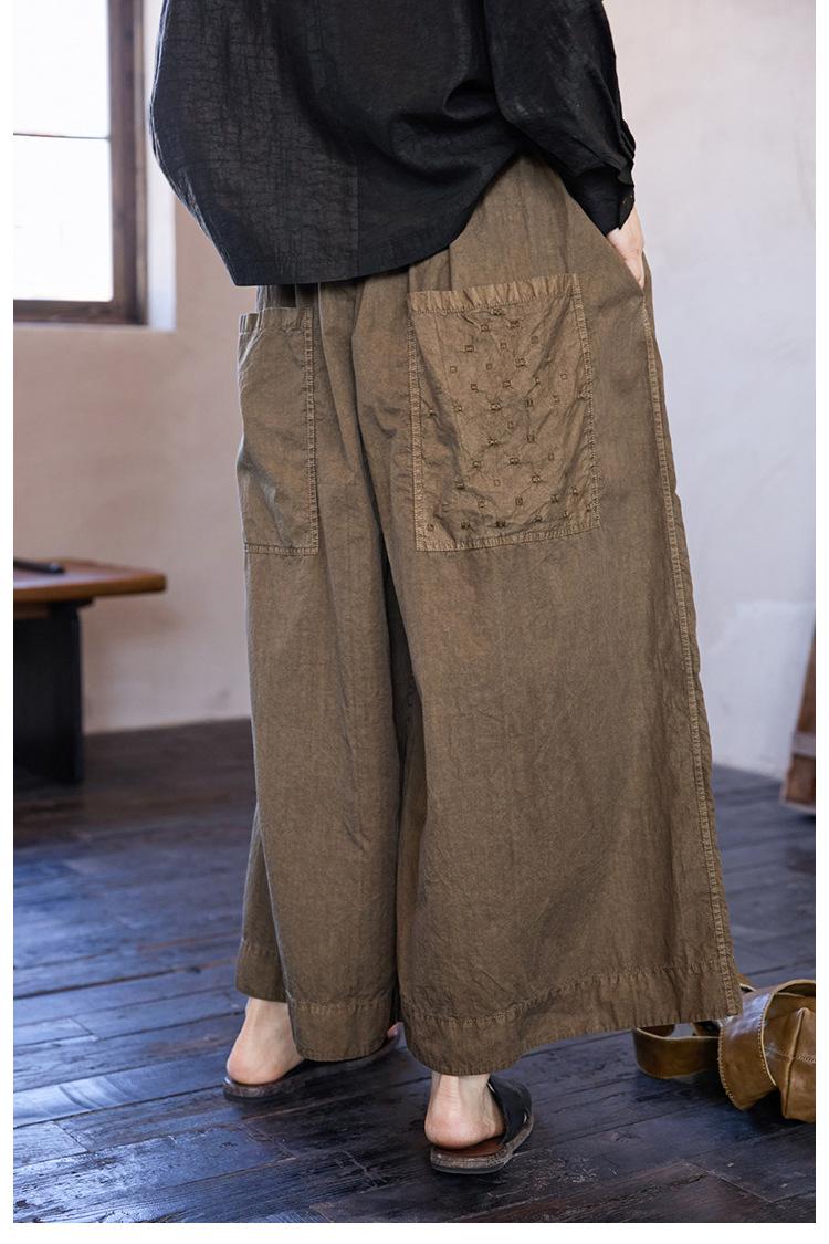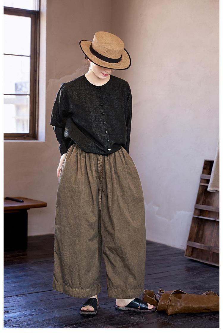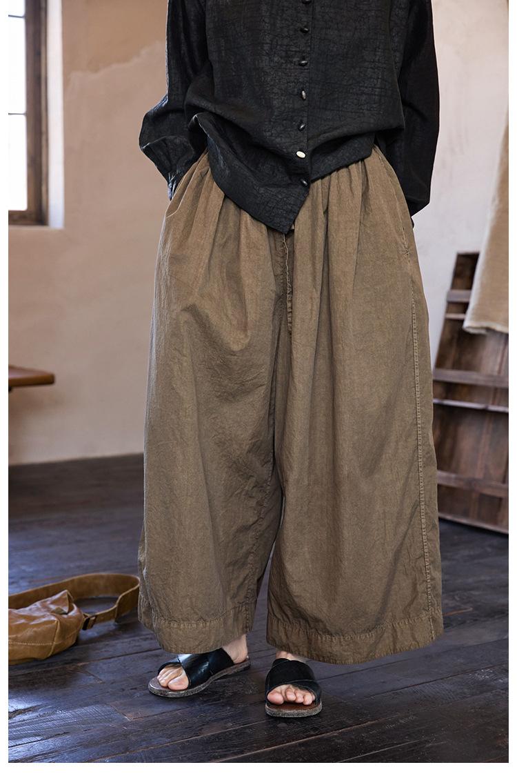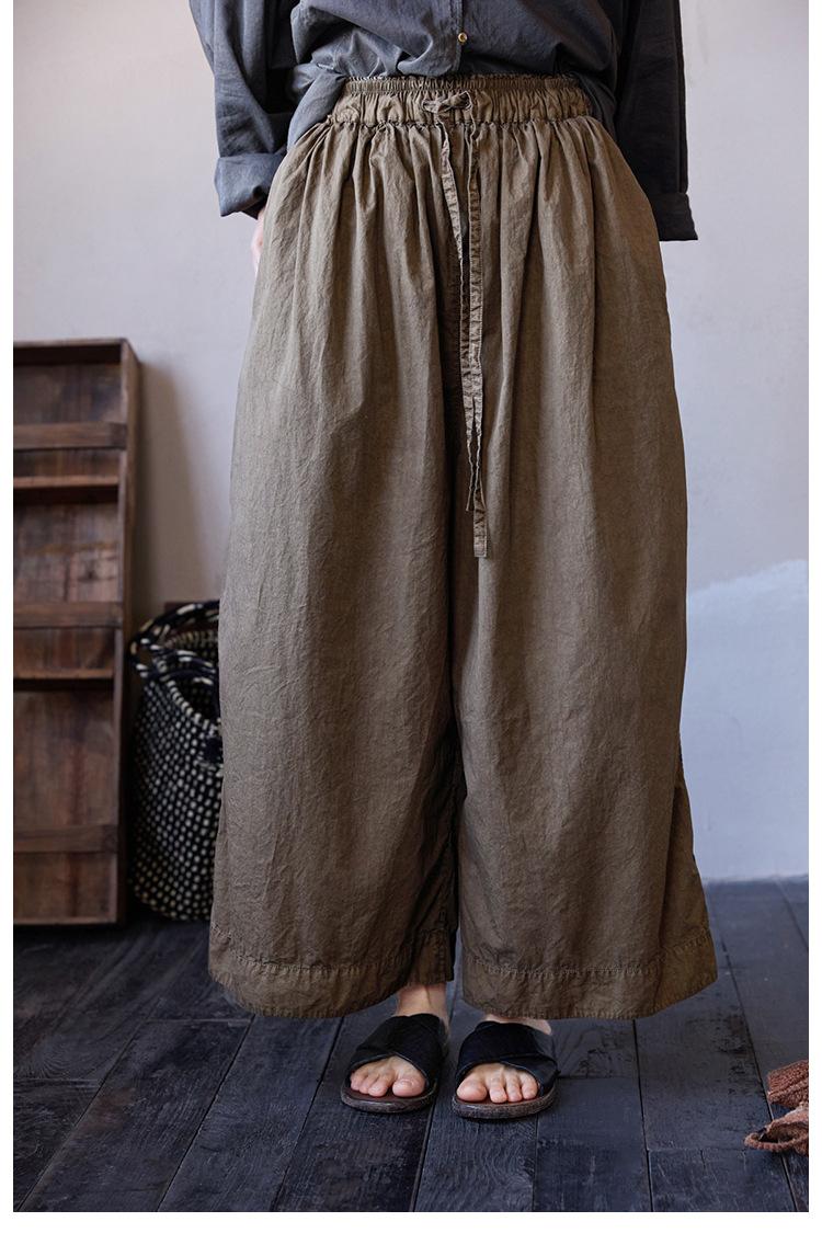 Verano Nuevo Estilo Literario Retro Original Suelto Talla Grande Pantalones Casuales Delgados Color Ramificado Suave y Fresco Pantalones de Pierna Ancha