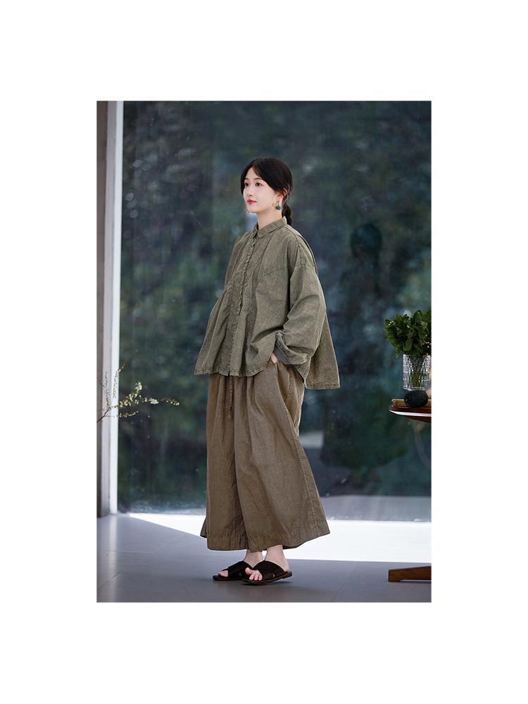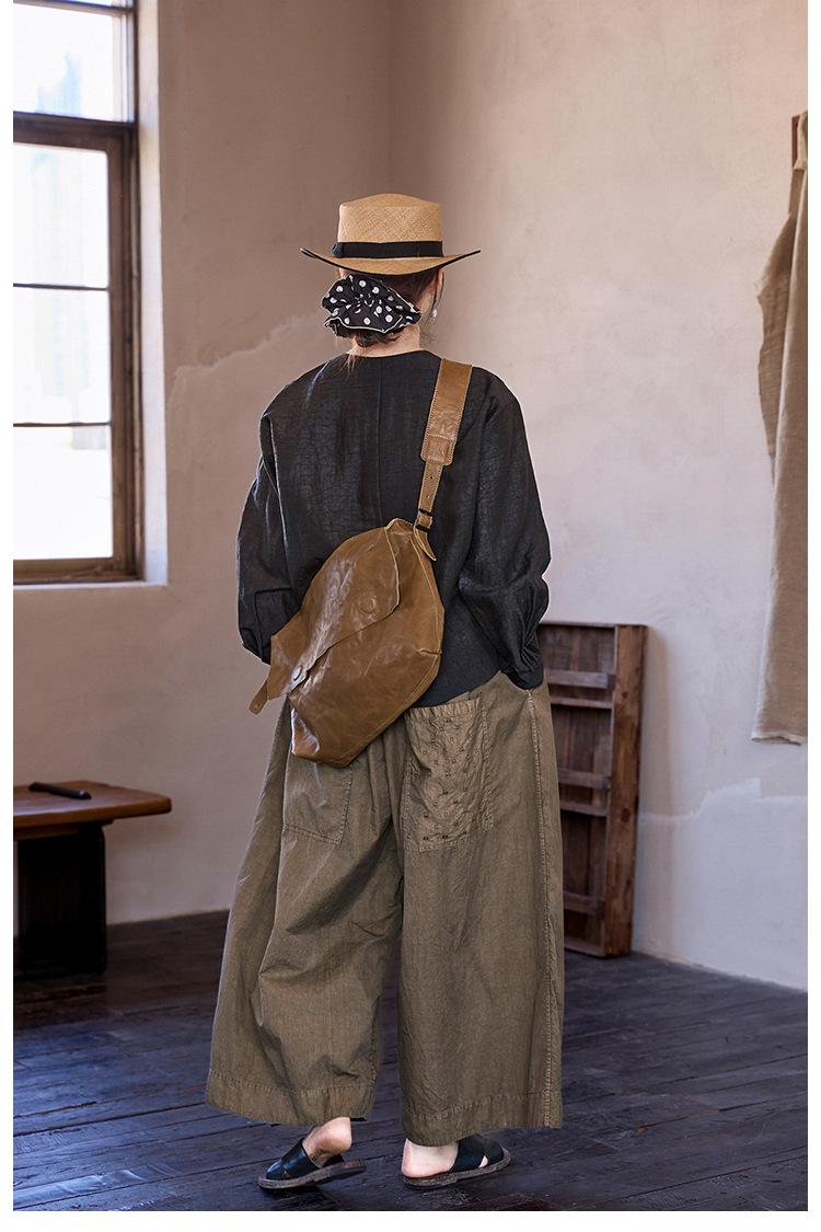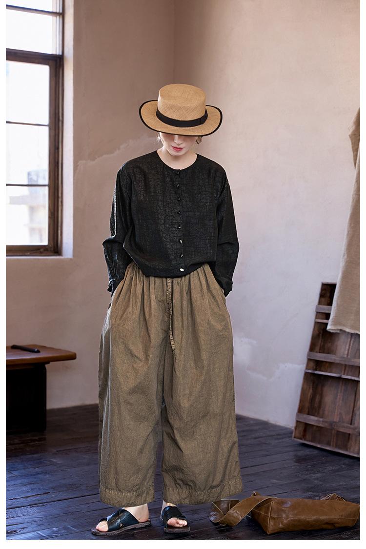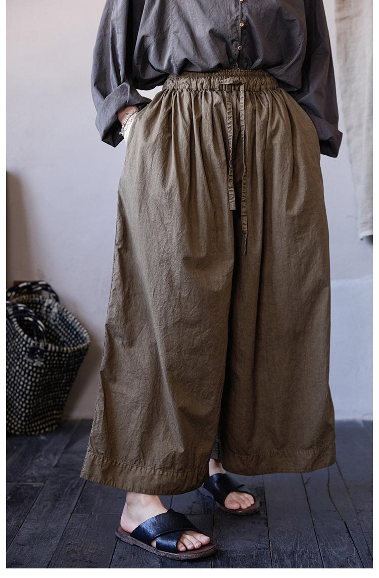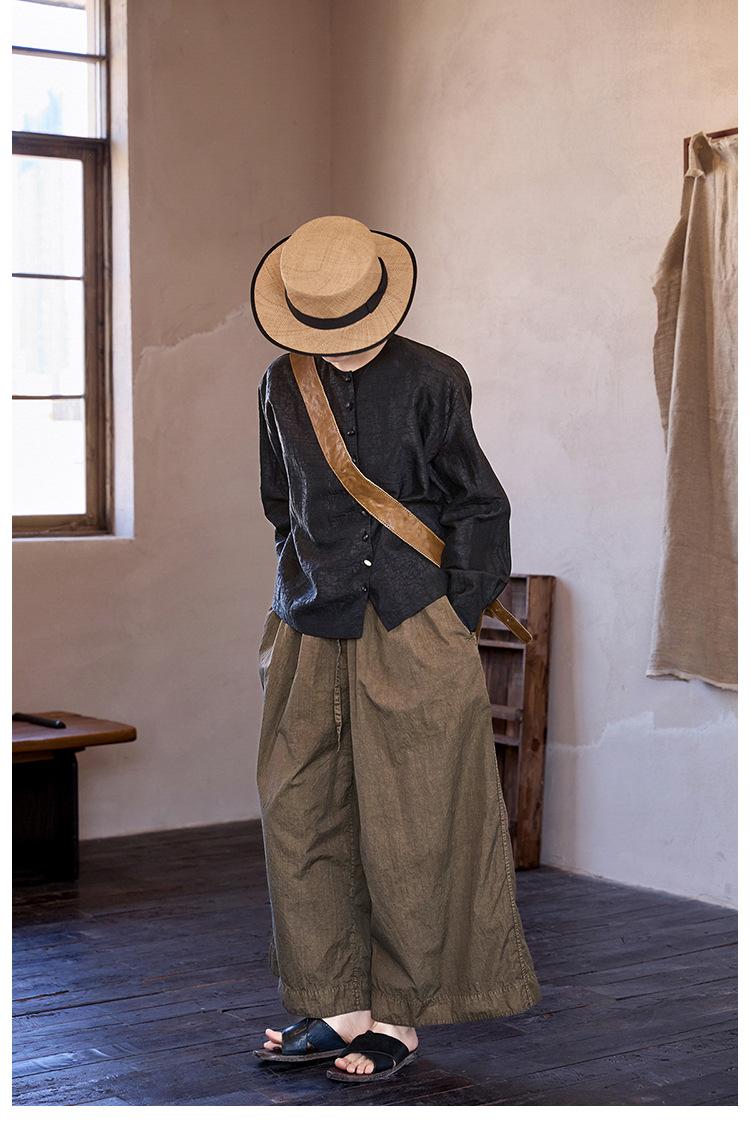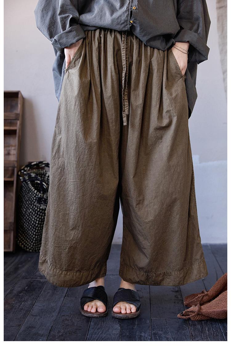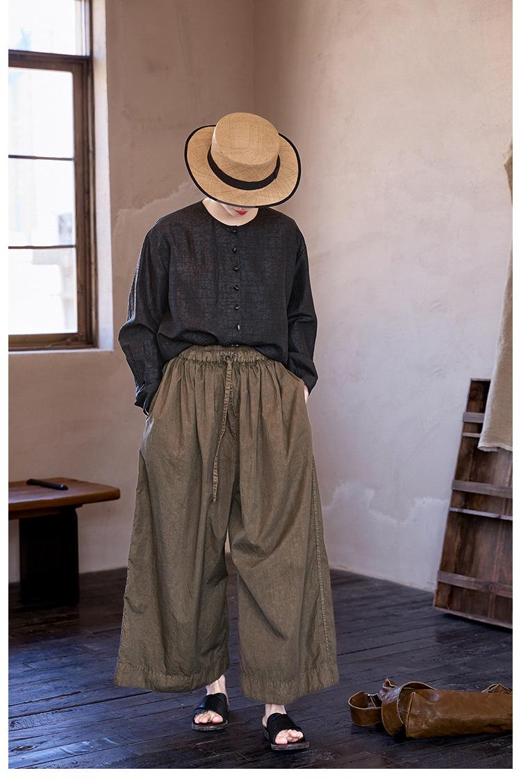 Verano Nuevo Estilo Literario Retro Original Suelto Talla Grande Pantalones Casuales Delgados Color Ramificado Suave y Fresco Pantalones de Pierna Ancha