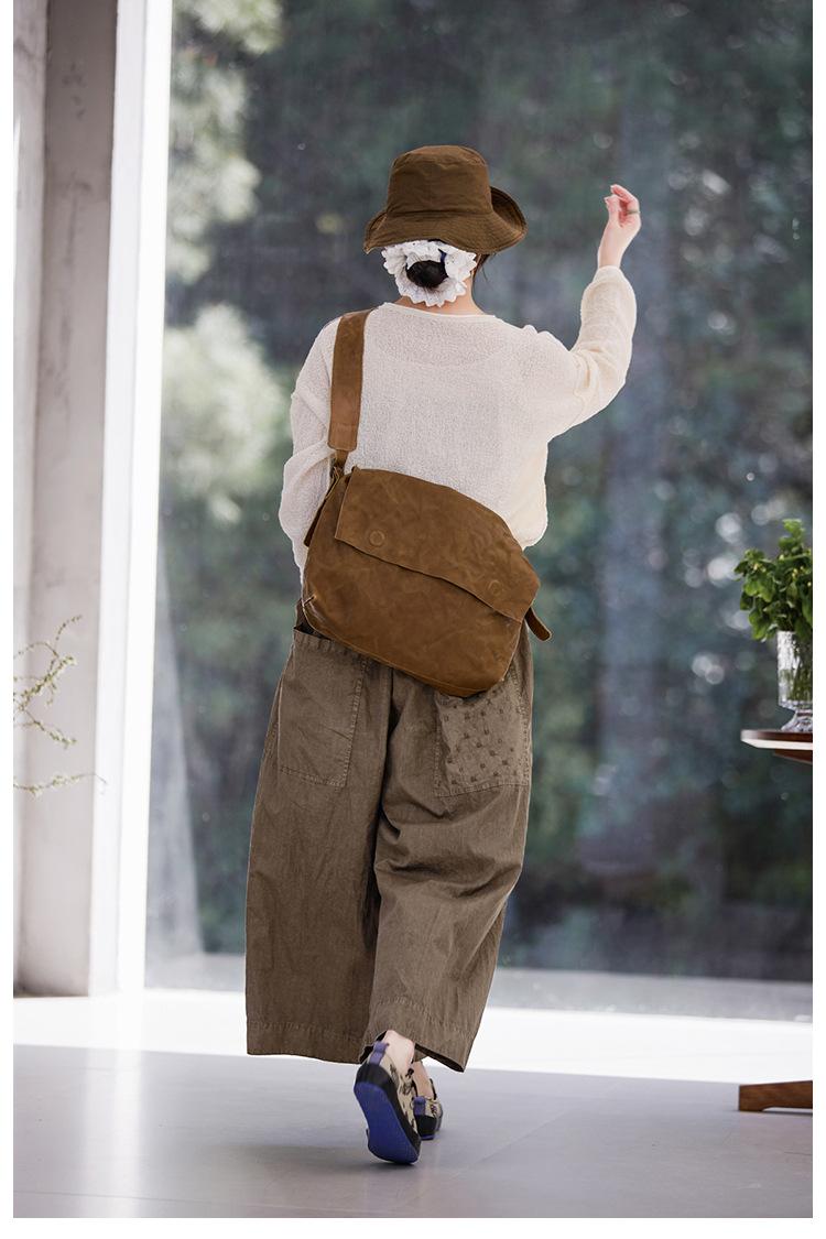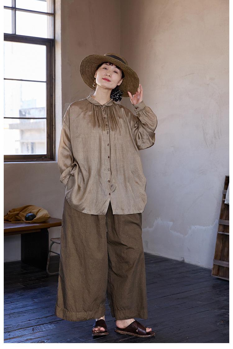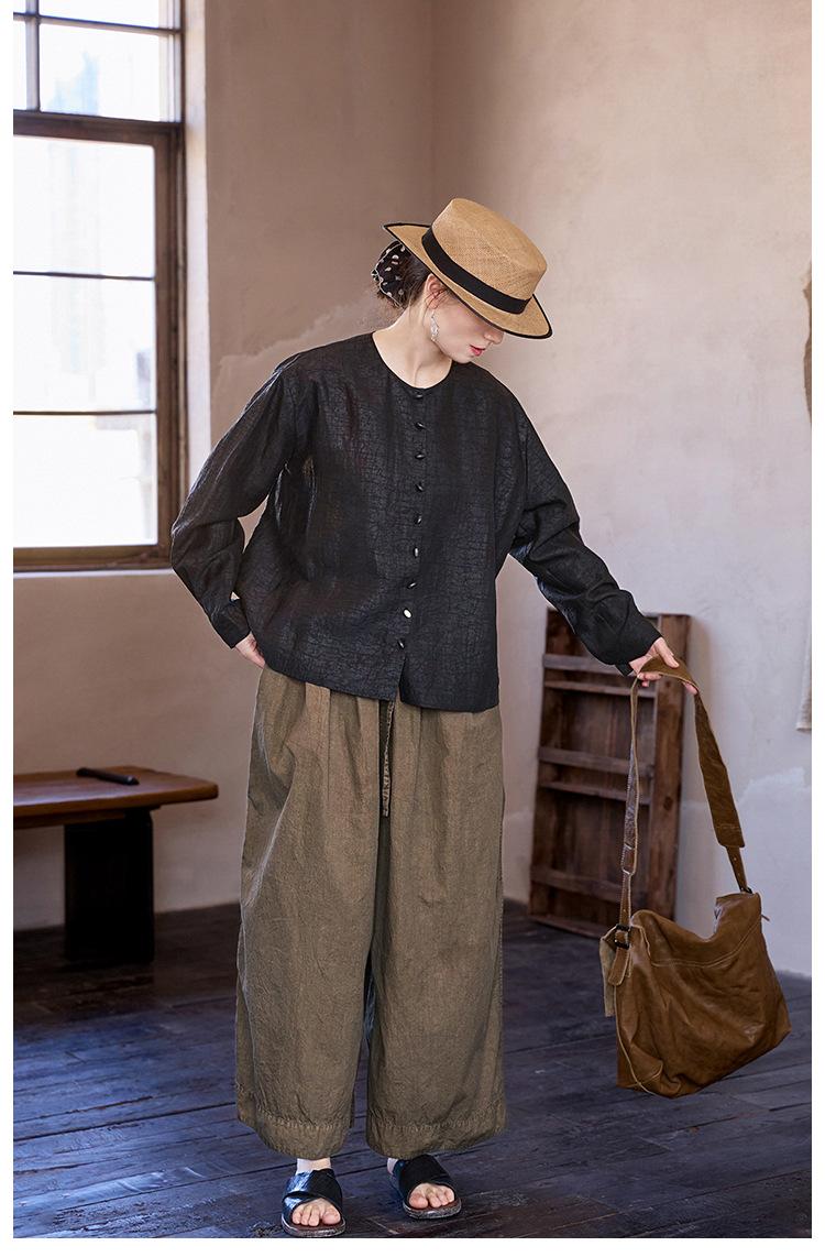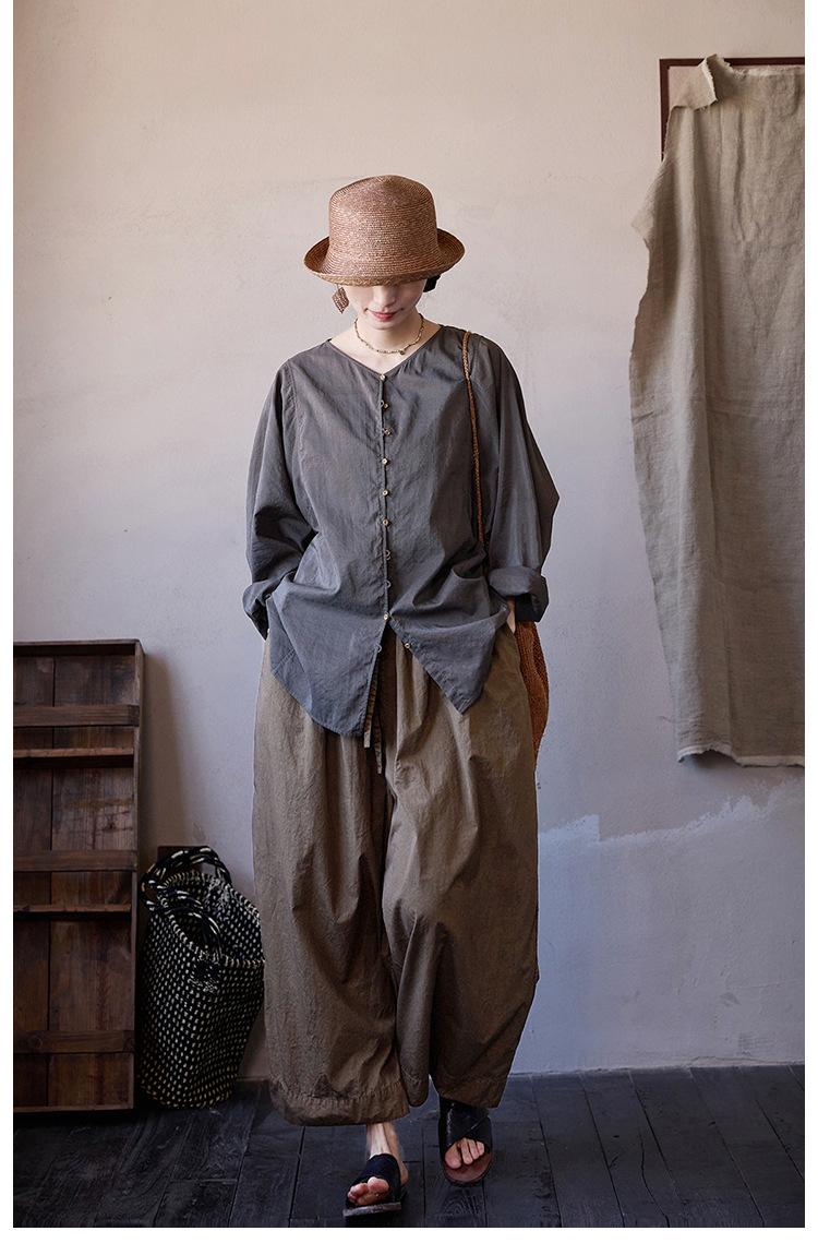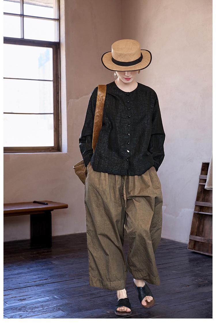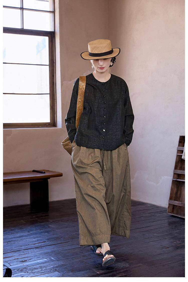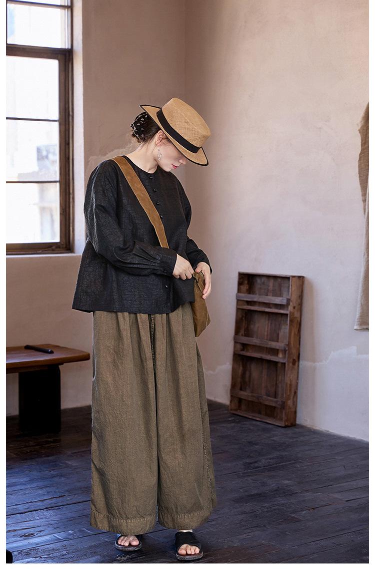 Verano Nuevo Estilo Literario Retro Original Suelto Talla Grande Pantalones Casuales Delgados Color Ramificado Suave y Fresco Pantalones de Pierna Ancha