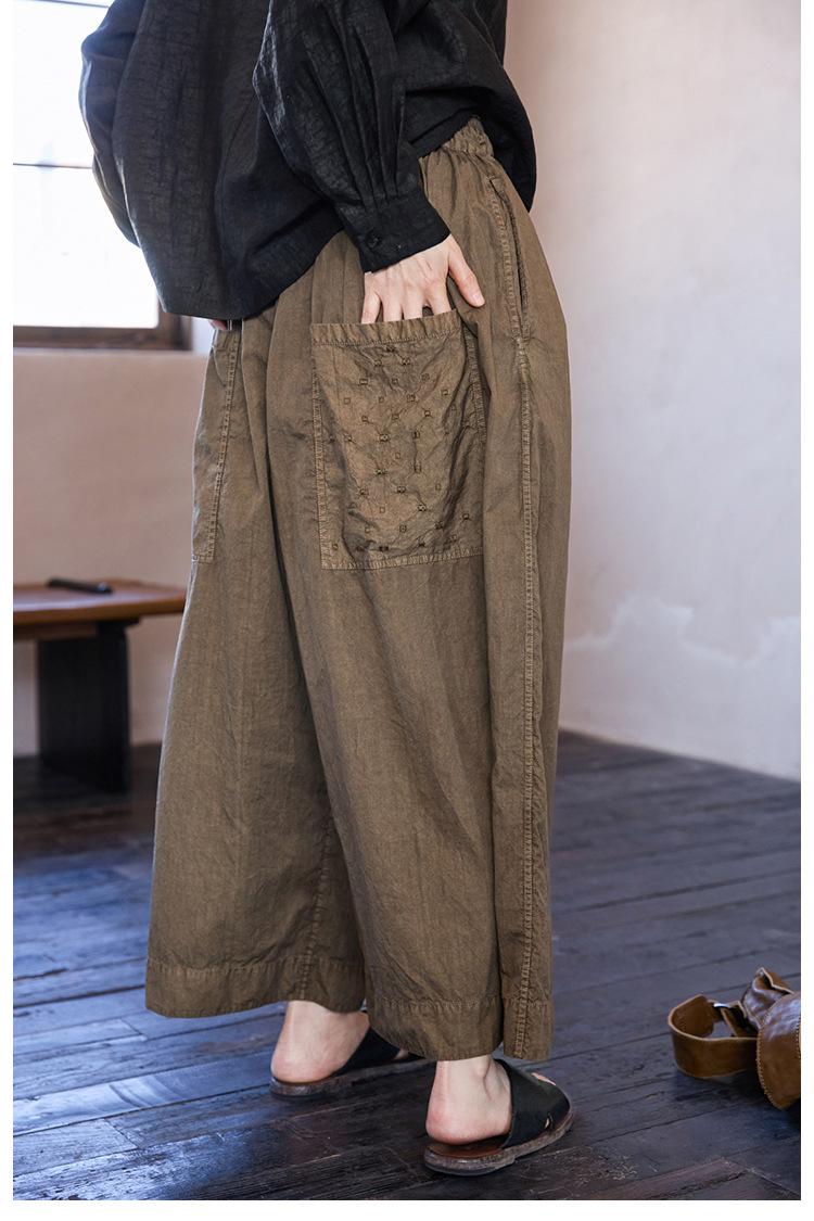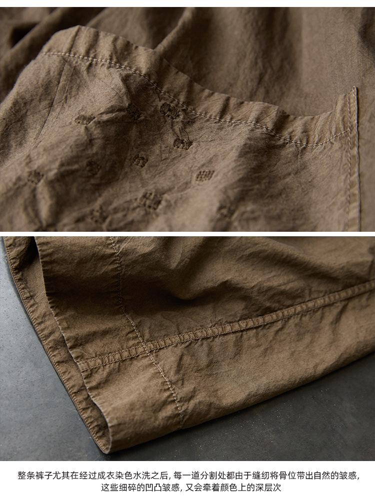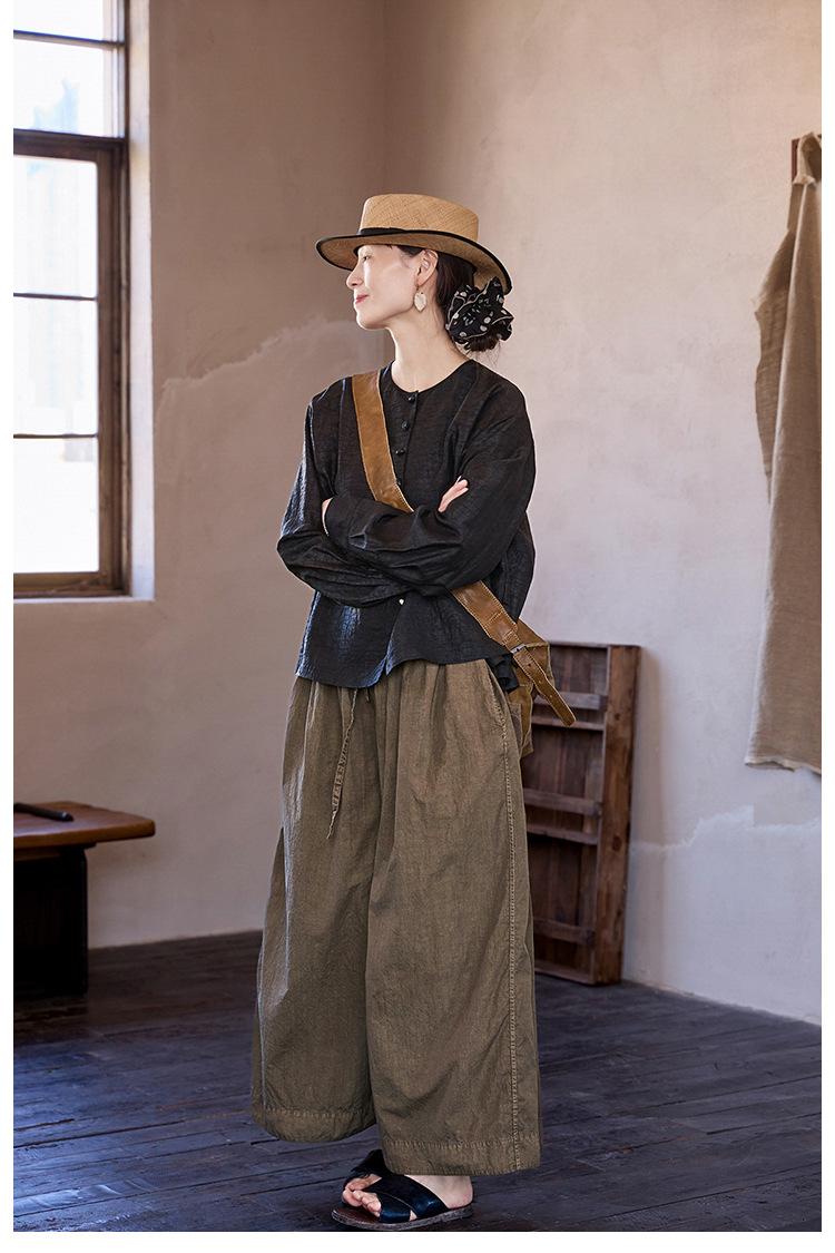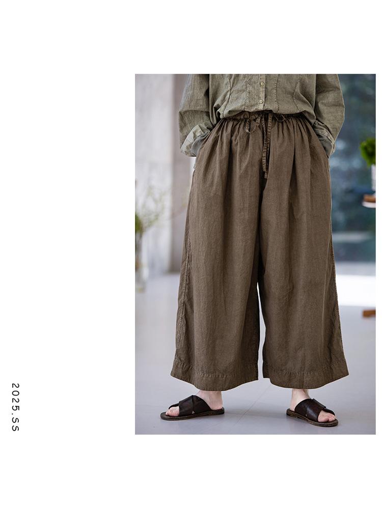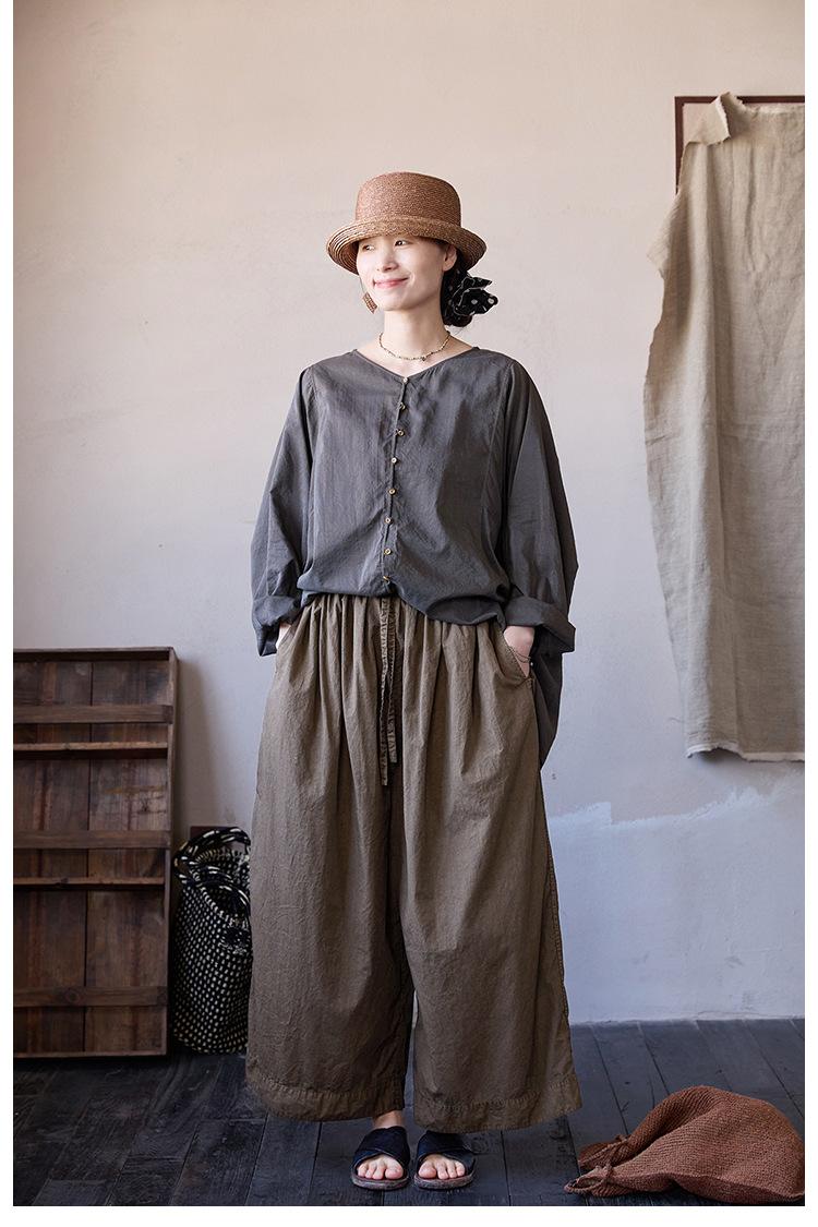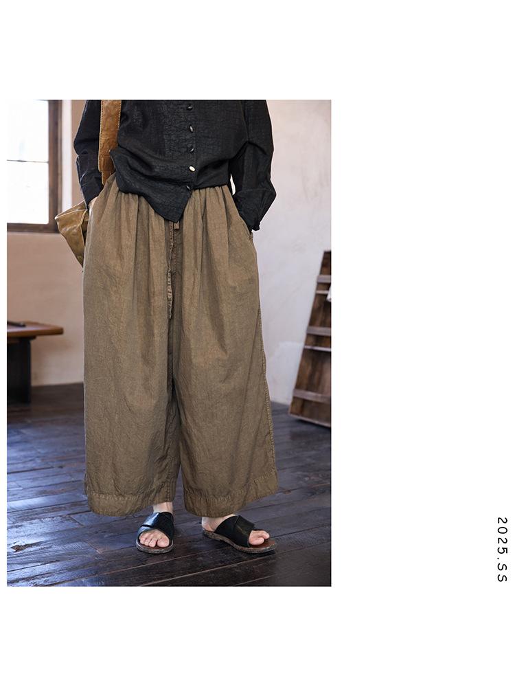 Un Original Antiguo【Arte Popular】Estilo Verano Color Rama Algodón Puro 180 Hilos Alta Densidad Suave Liso Sensación Fresca Pantalones Pierna Ancha 7559-1B