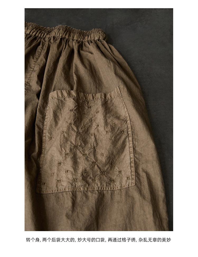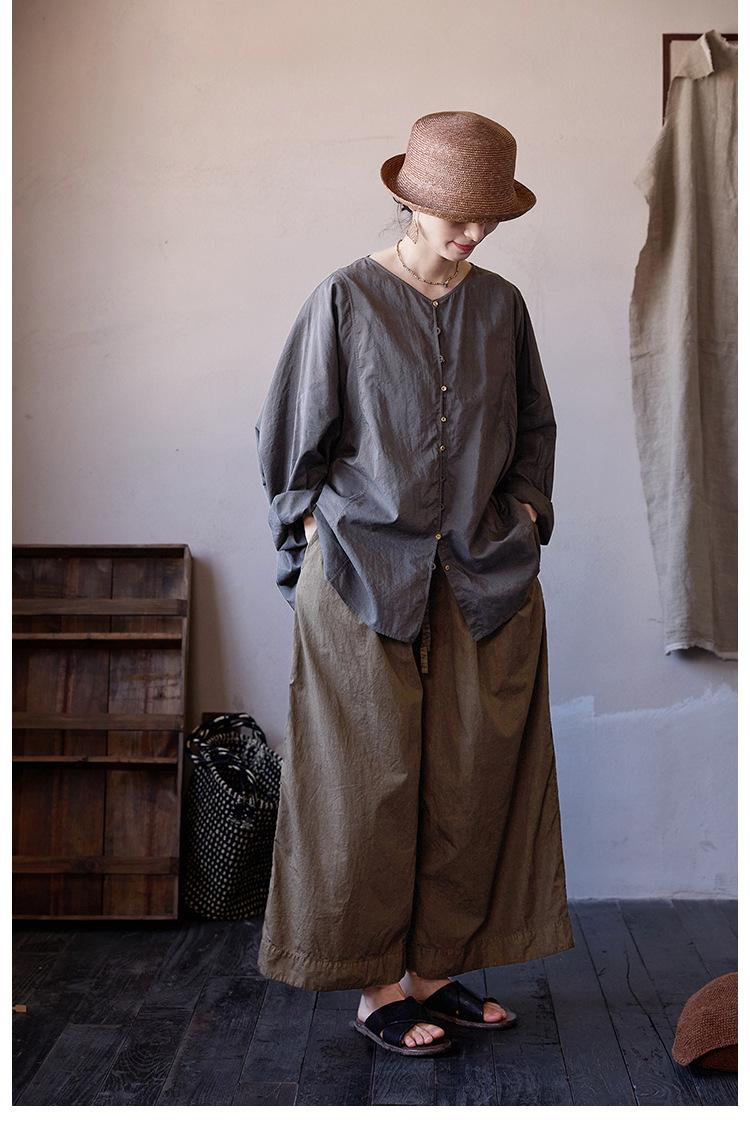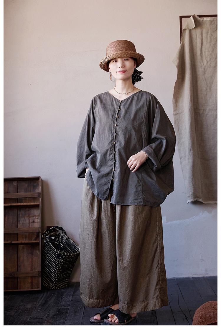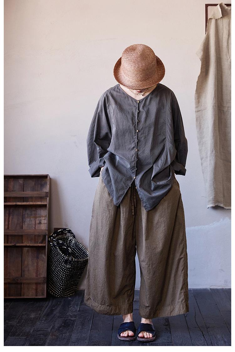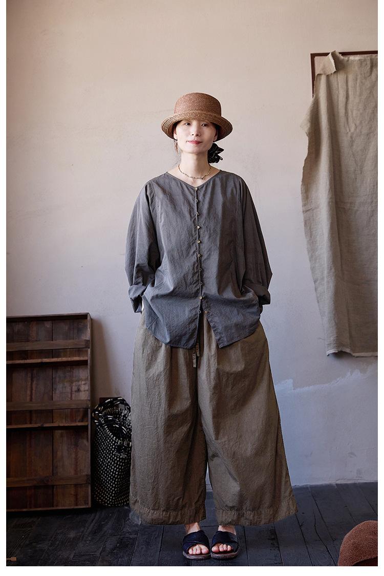 Un Original Antiguo【Arte Popular】Estilo Verano Color Rama Algodón Puro 180 Hilos Alta Densidad Suave Liso Sensación Fresca Pantalones Pierna Ancha 7559-1B
