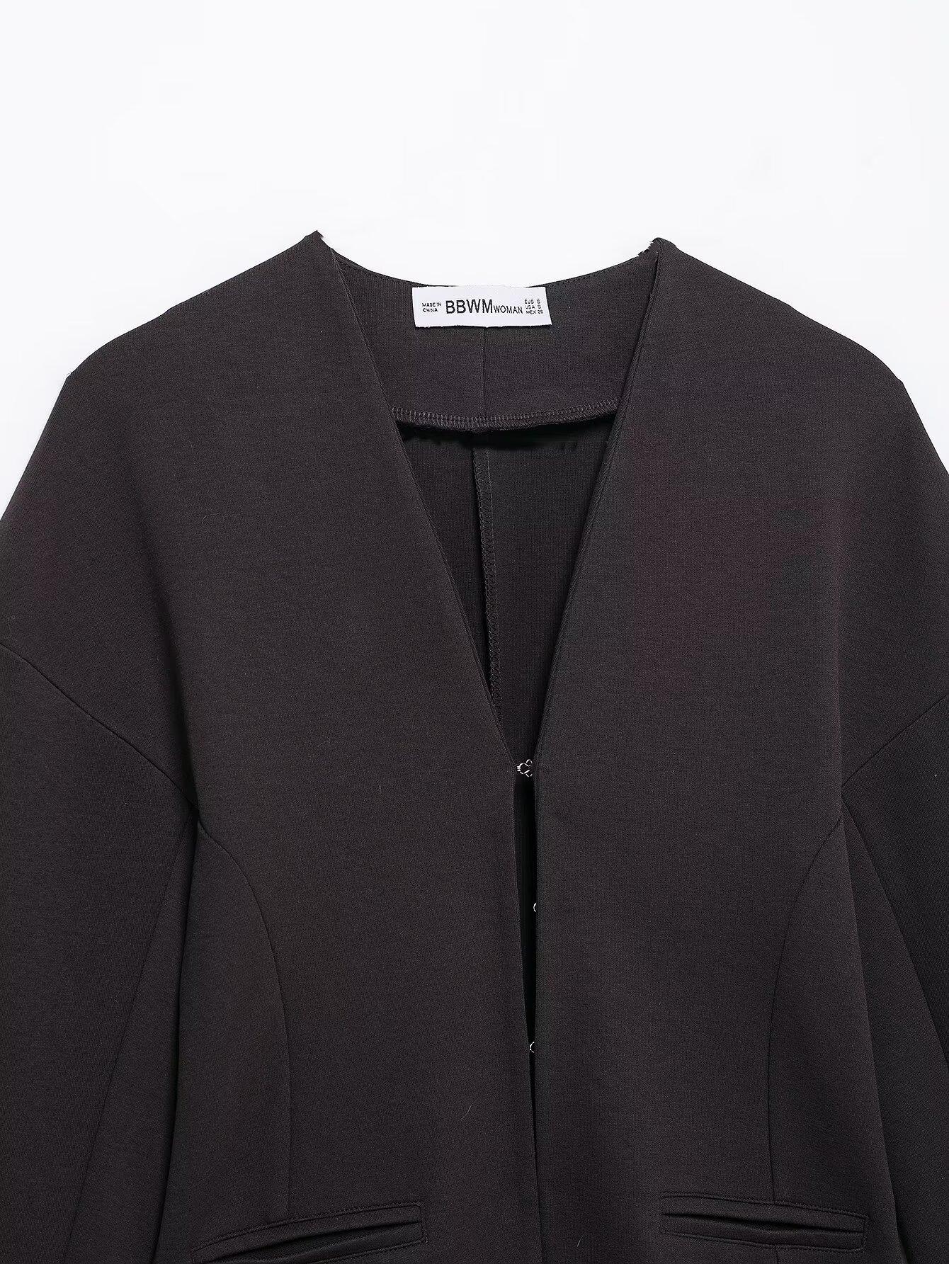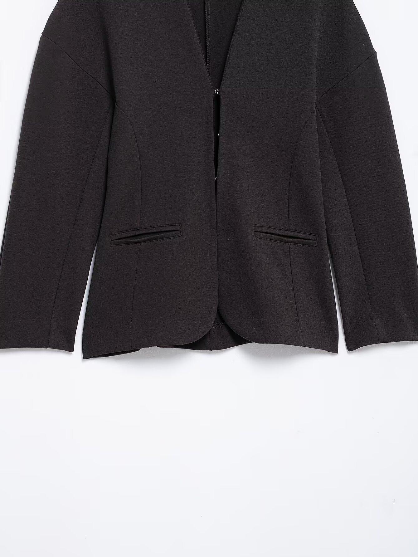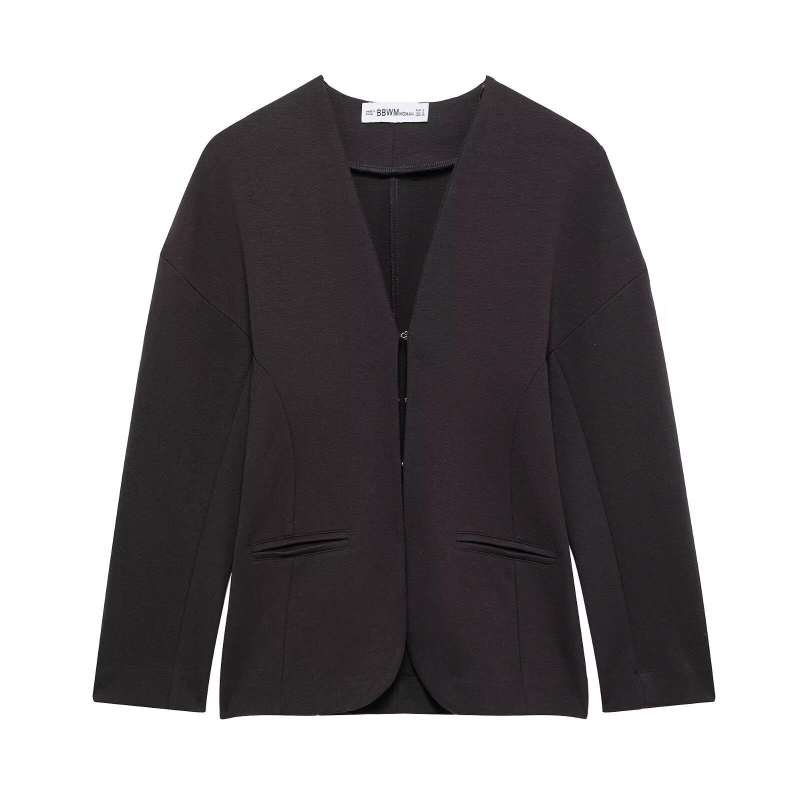 Primavera 2025 Nueva Ropa de Mujer Estilo Europeo y Americano Moda Tejido de Doble Cara Hombro Caído Manga Larga Blazer 3641304