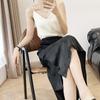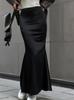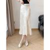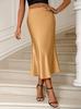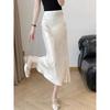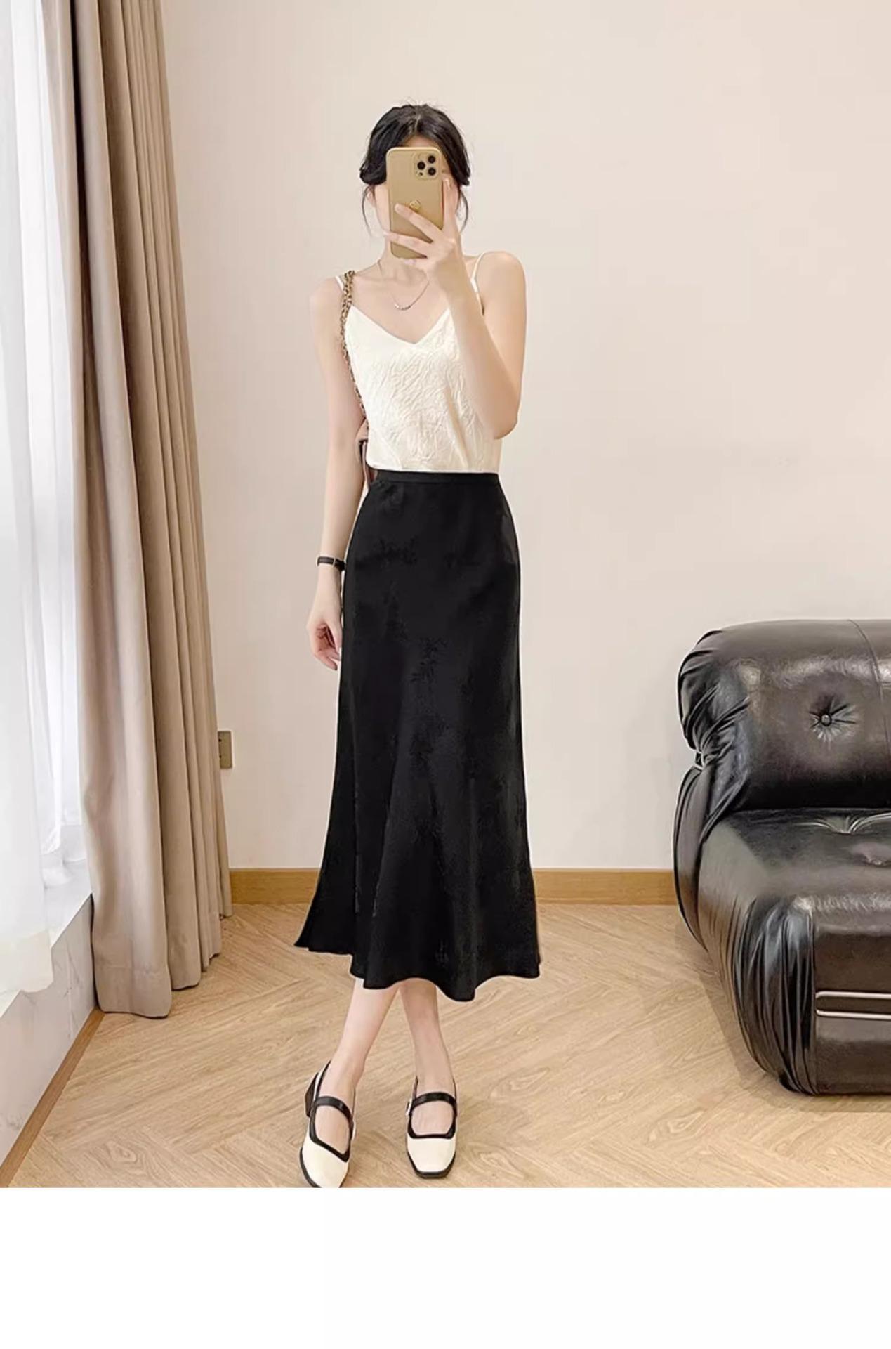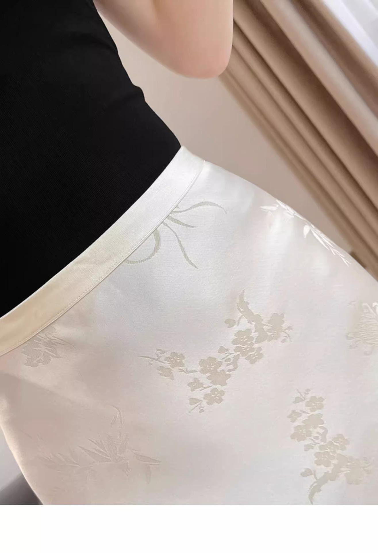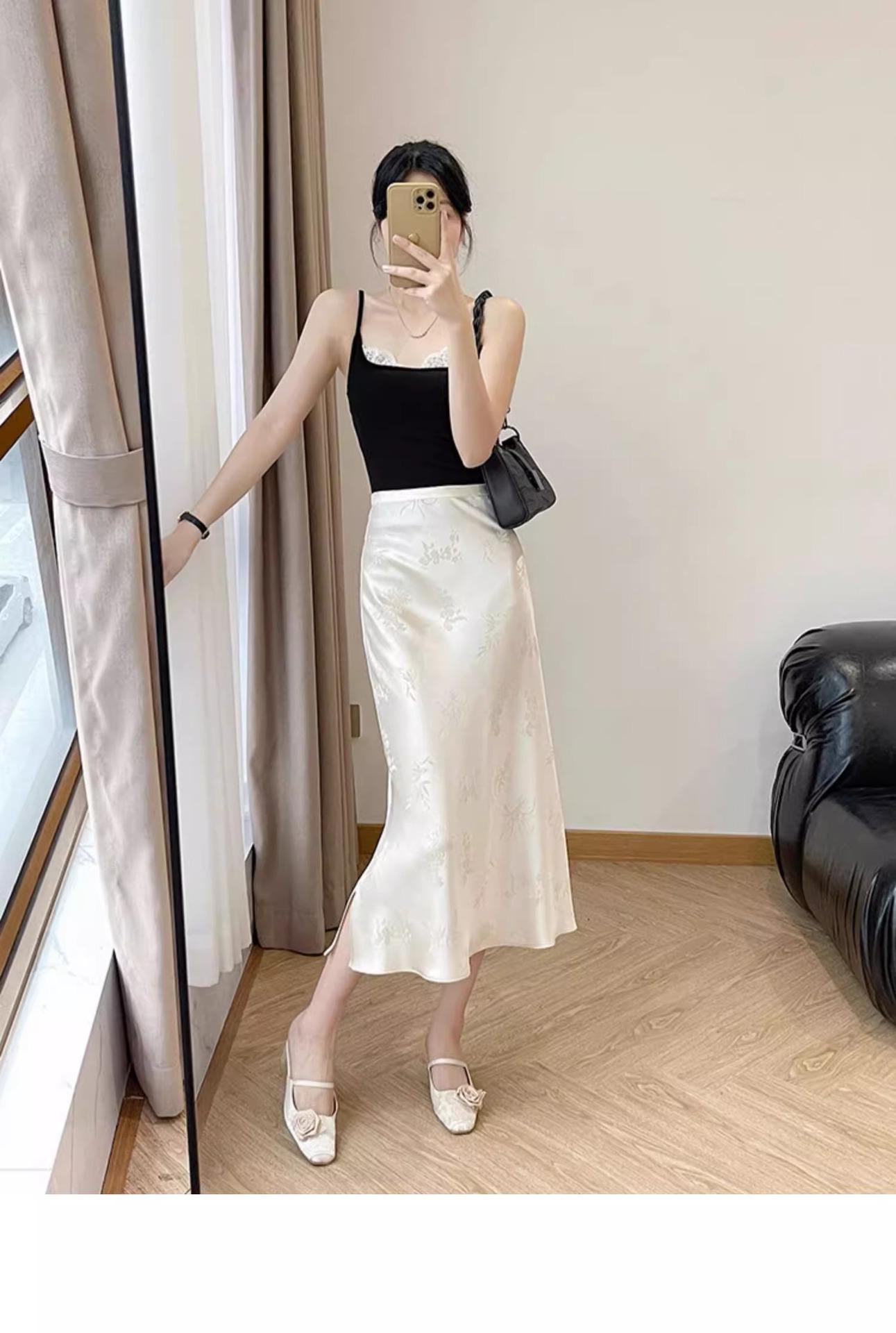 Falda de Cadera de Satén Acetato Imitación para Personas Pequeñas, Jacquard Brillante Cintura Alta Look Adelgazante Línea A Largo Medio A4502