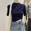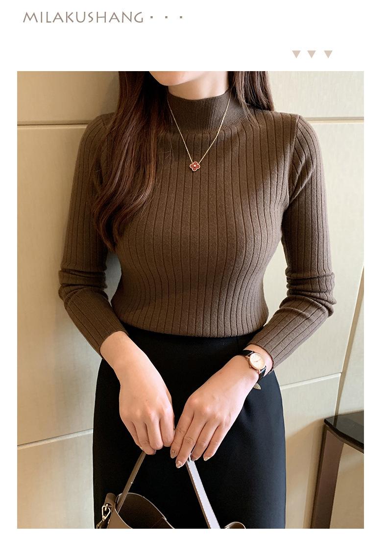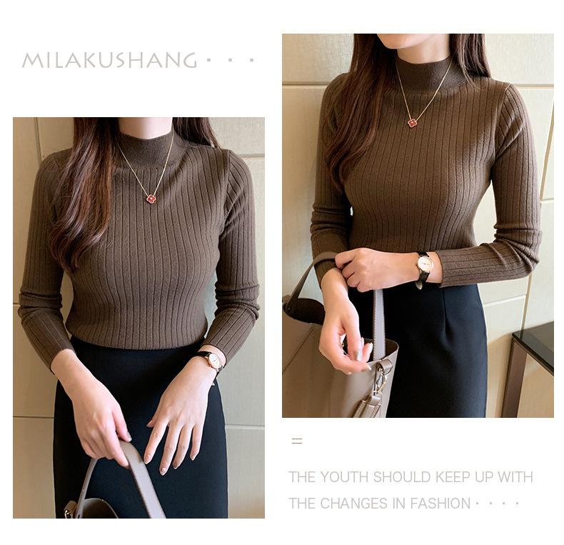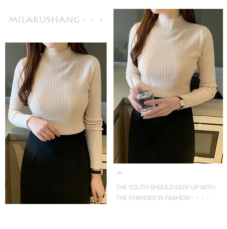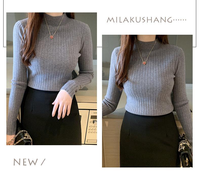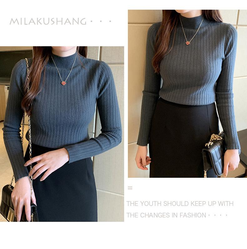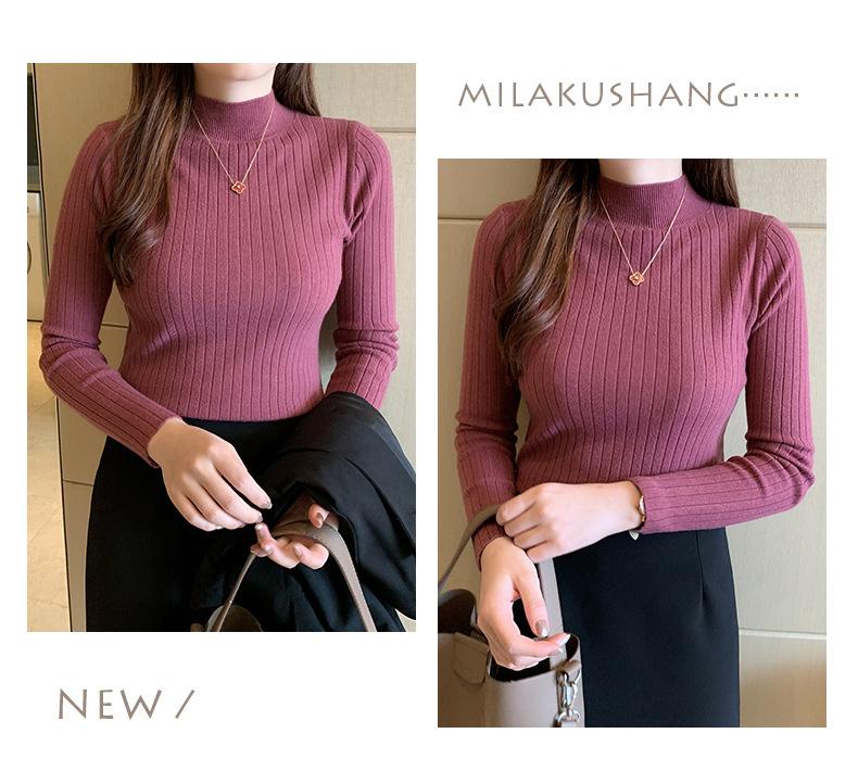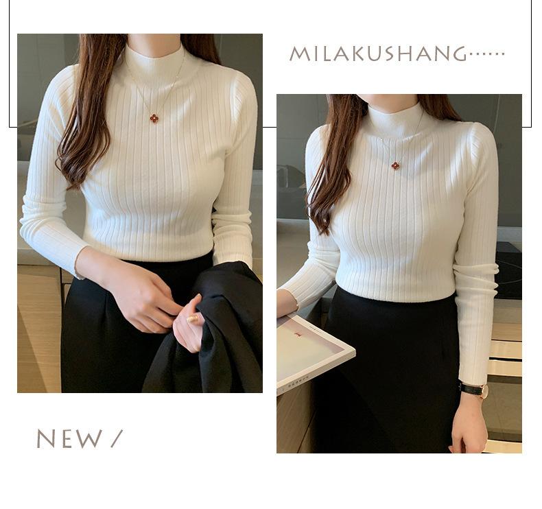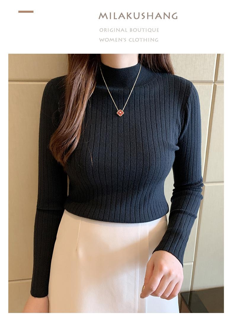 Camiseta Básica de Cuello Alto para Mujer, Estilo Nuevo Delgado de Otoño e Invierno, Tejido de Punto de Estilo Nuevo, Tejido de Punto de Manga Larga, Top de Cuello Medio