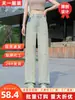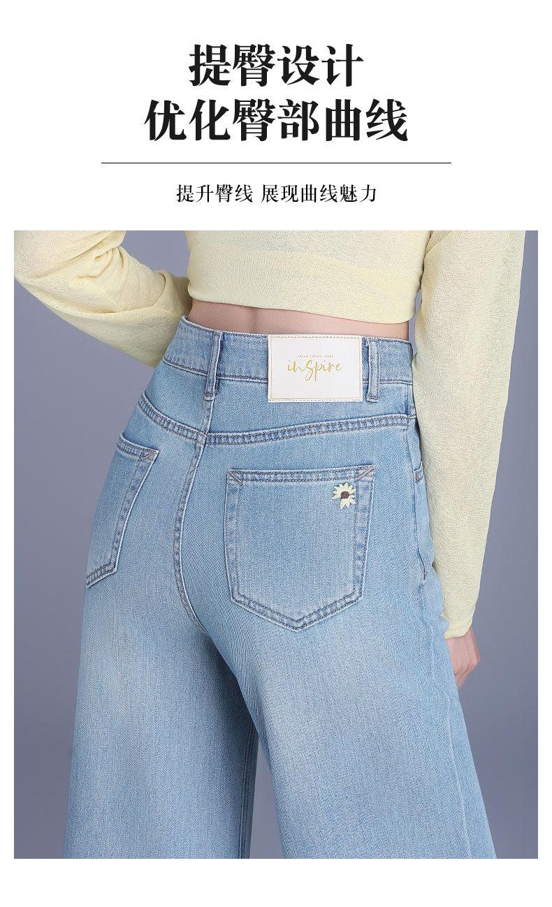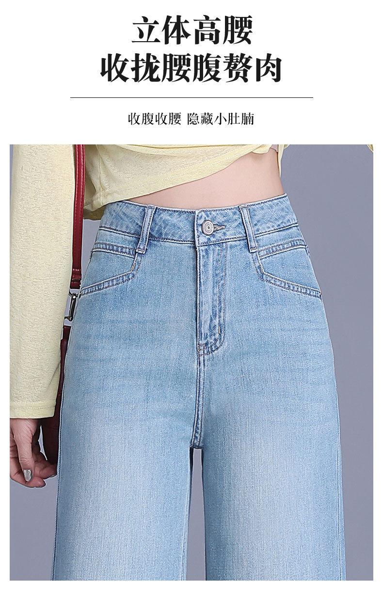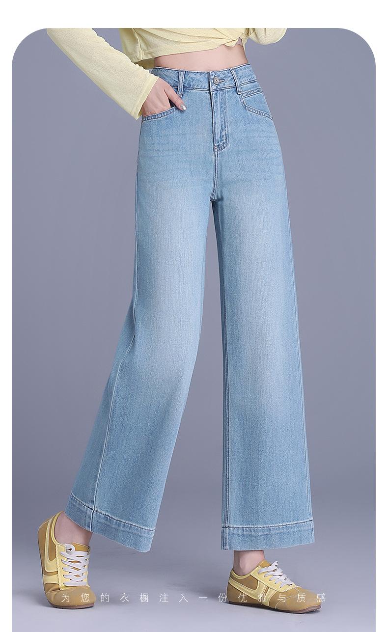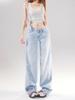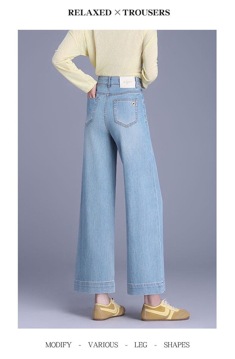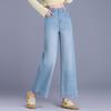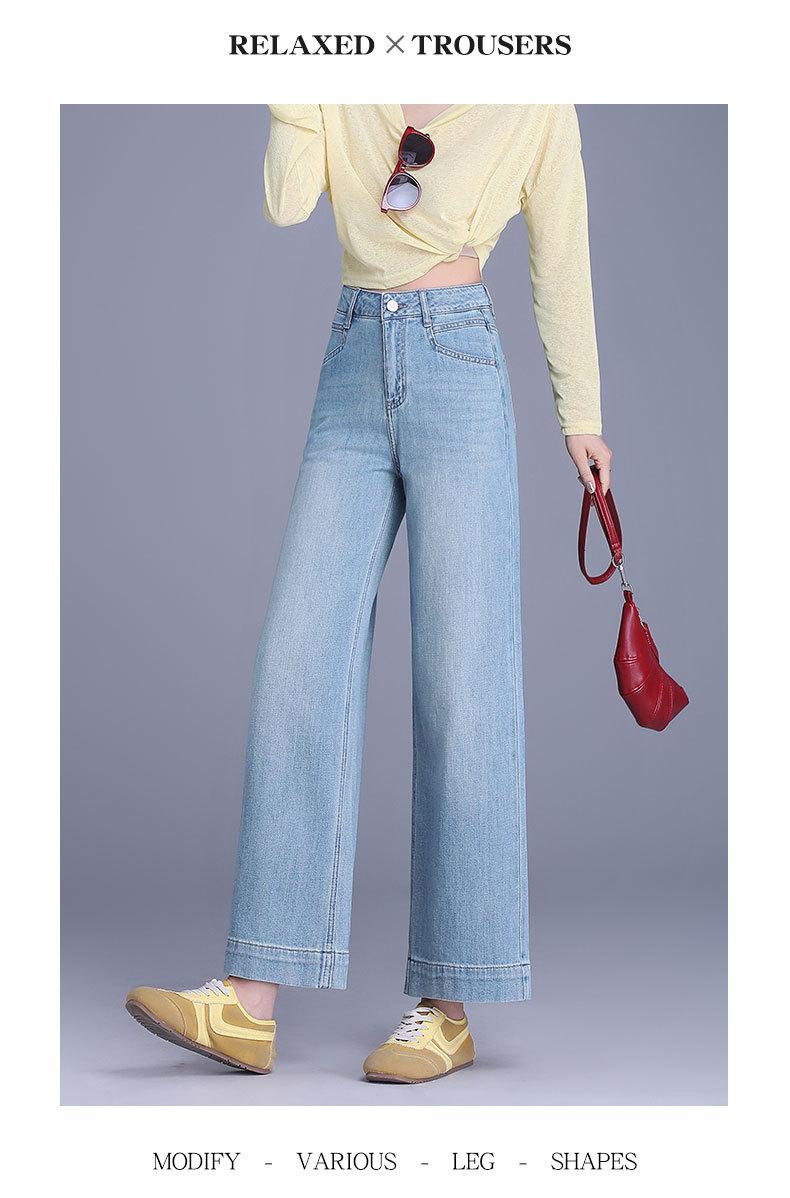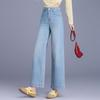 Jeans Rectos de Pierna Ancha Azul Claro para Mujer 2025 Verano Nuevo Cintura Alta Sueltos Versátiles Adelgazantes Delgados Pantalones Recortados