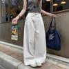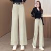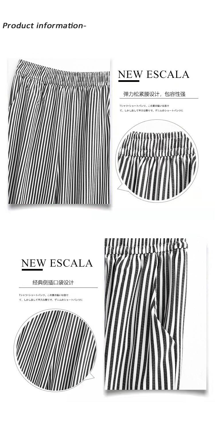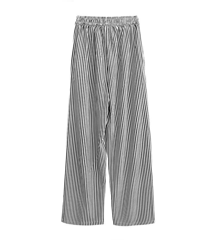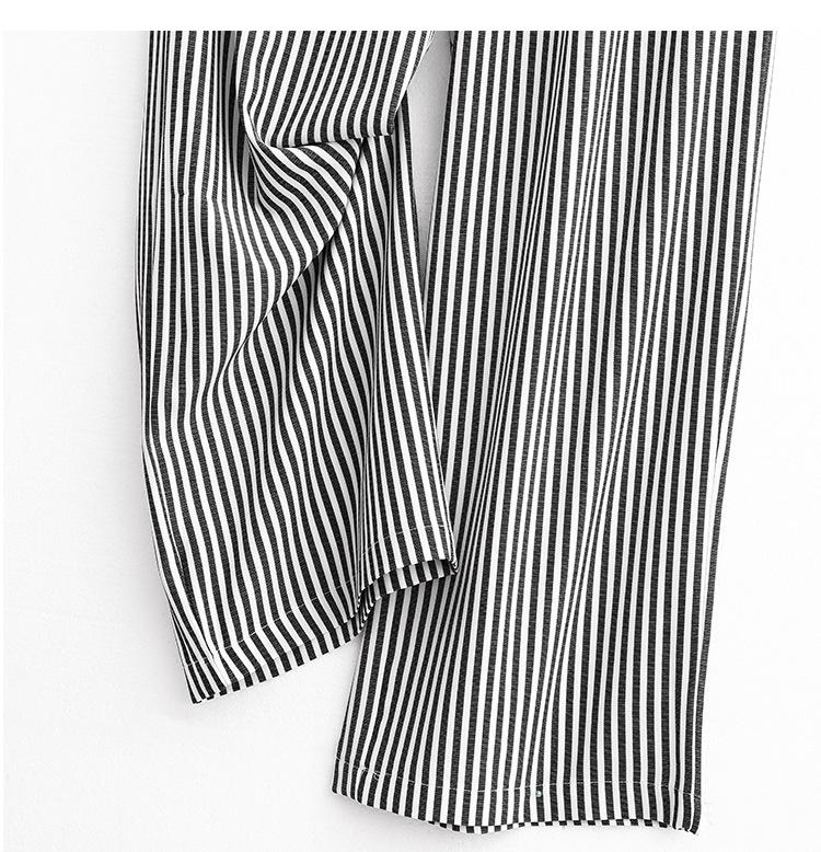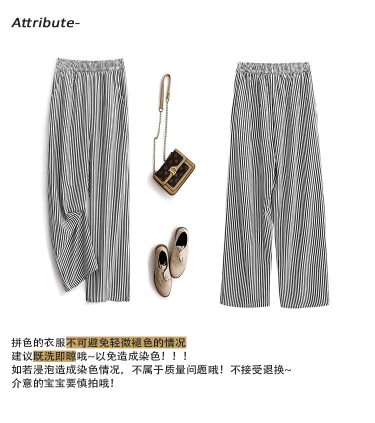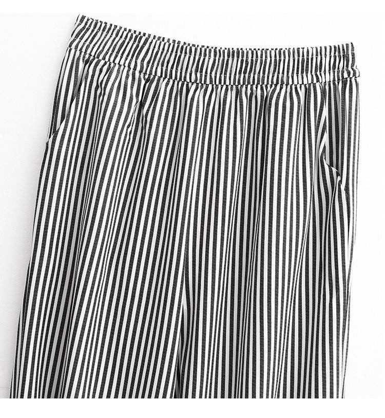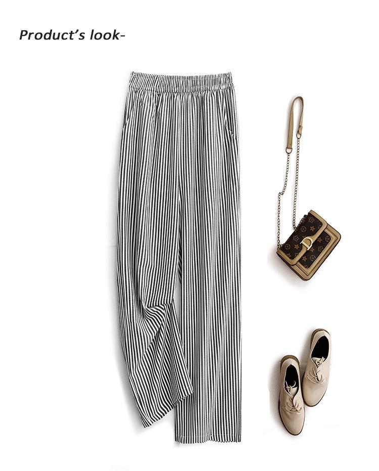 Foto real de pantalones casuales rectos de pierna ancha estilo coreano para mujer 2025 Verano Nuevo Talla grande Adelgazantes Versátiles Pantalones a rayas finas