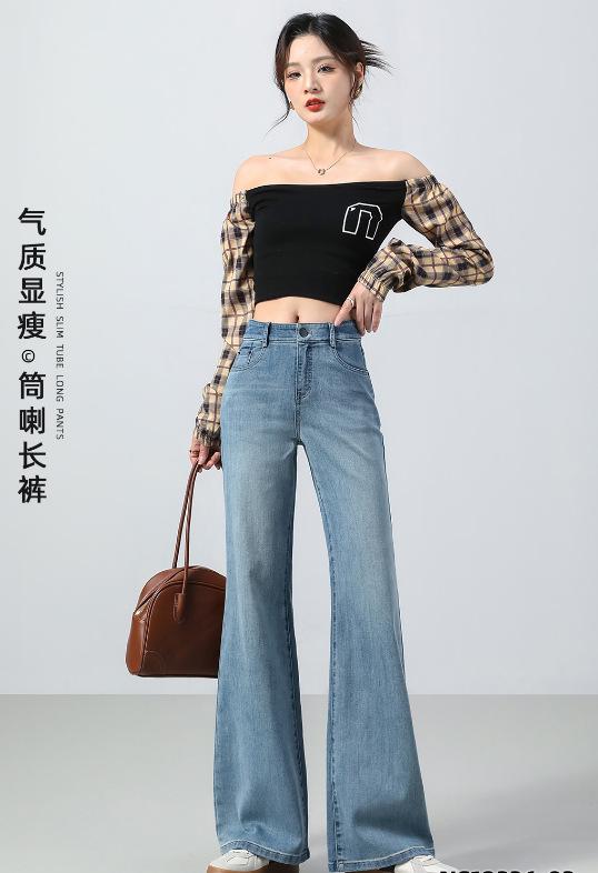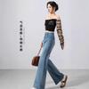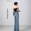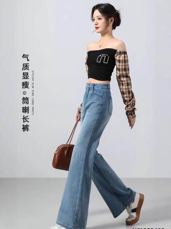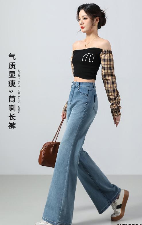 Pantalones Acampanados Delgados de Verano para Mujer, Jeans Adelgazantes de Cintura Alta, Atuendo Azul Vintage para Forma de Pera, Ropa de Mujer