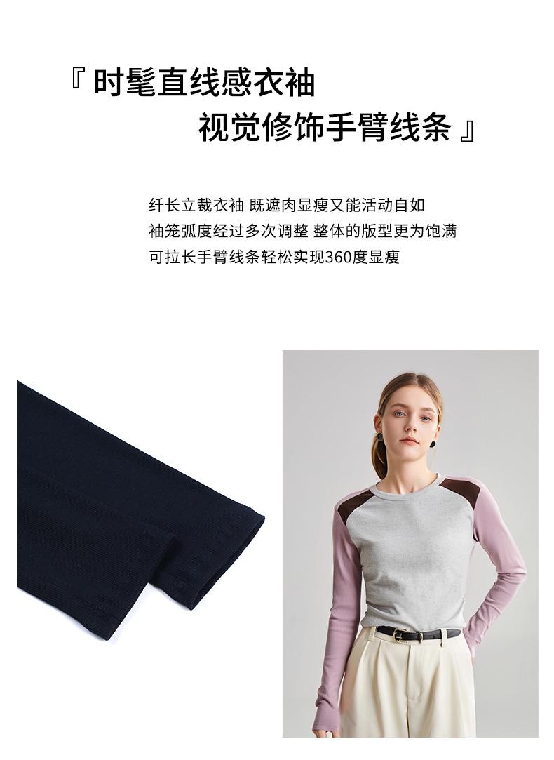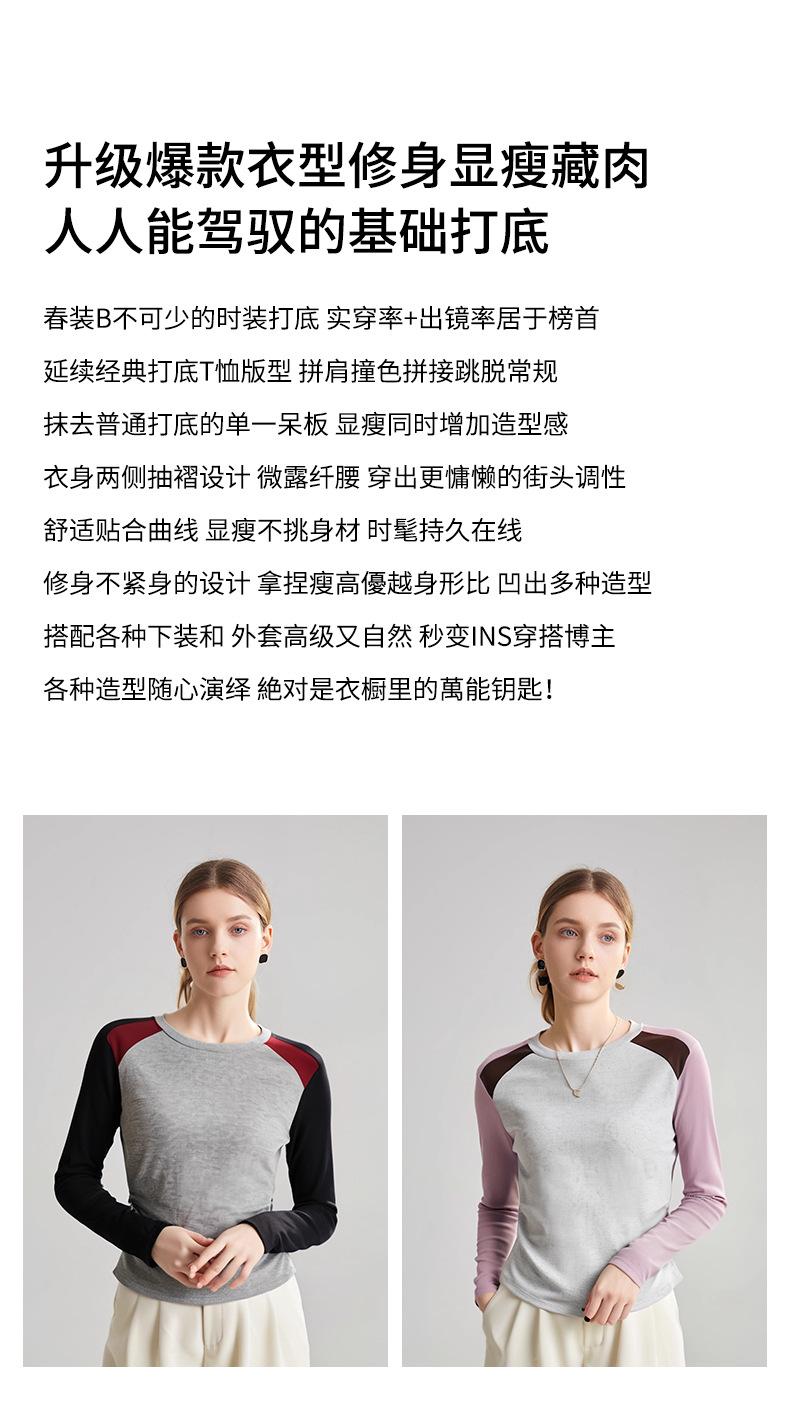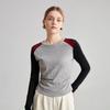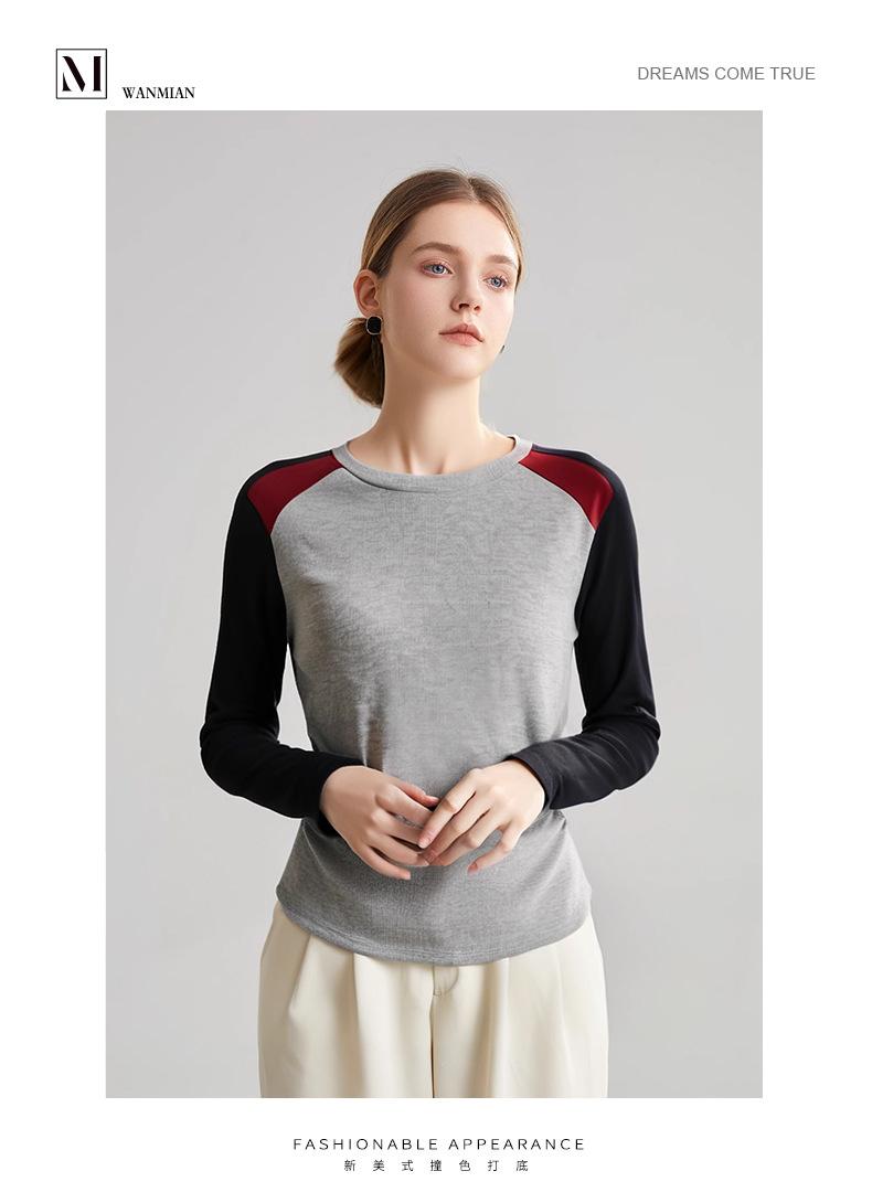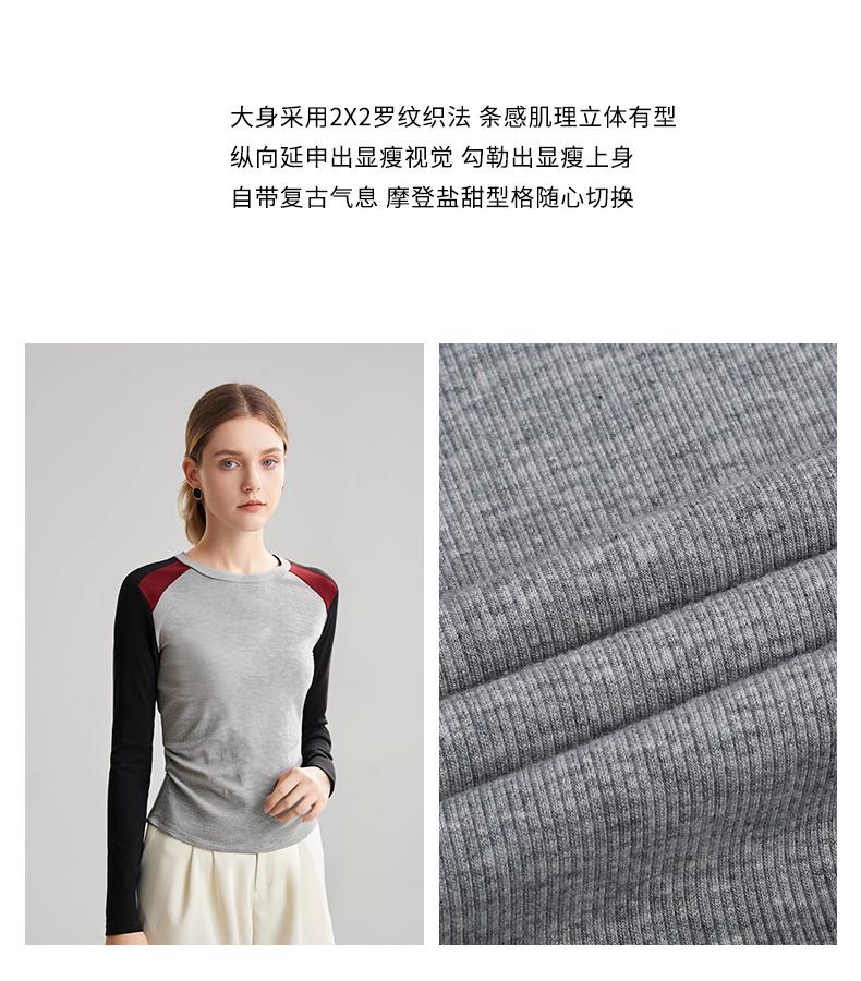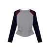 Nuevo Americano Color Contraste Base MBH011 Costuras Color Contraste Manga Larga Camiseta de Punto para Mujer Primavera Nuevo Estilo Ligeramente Gorda mm