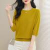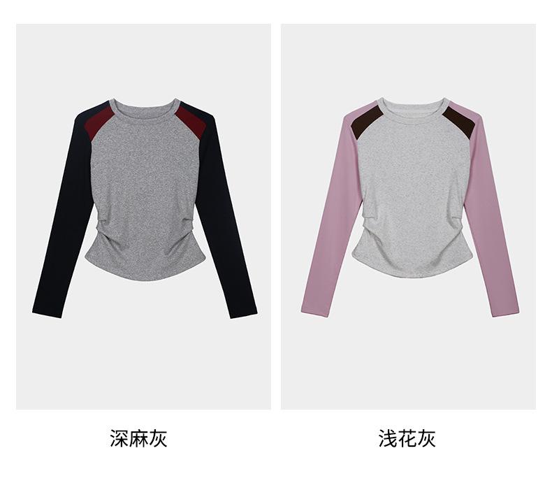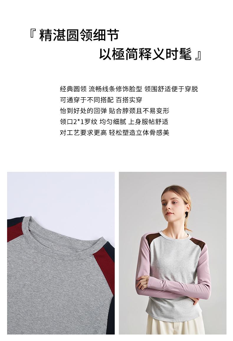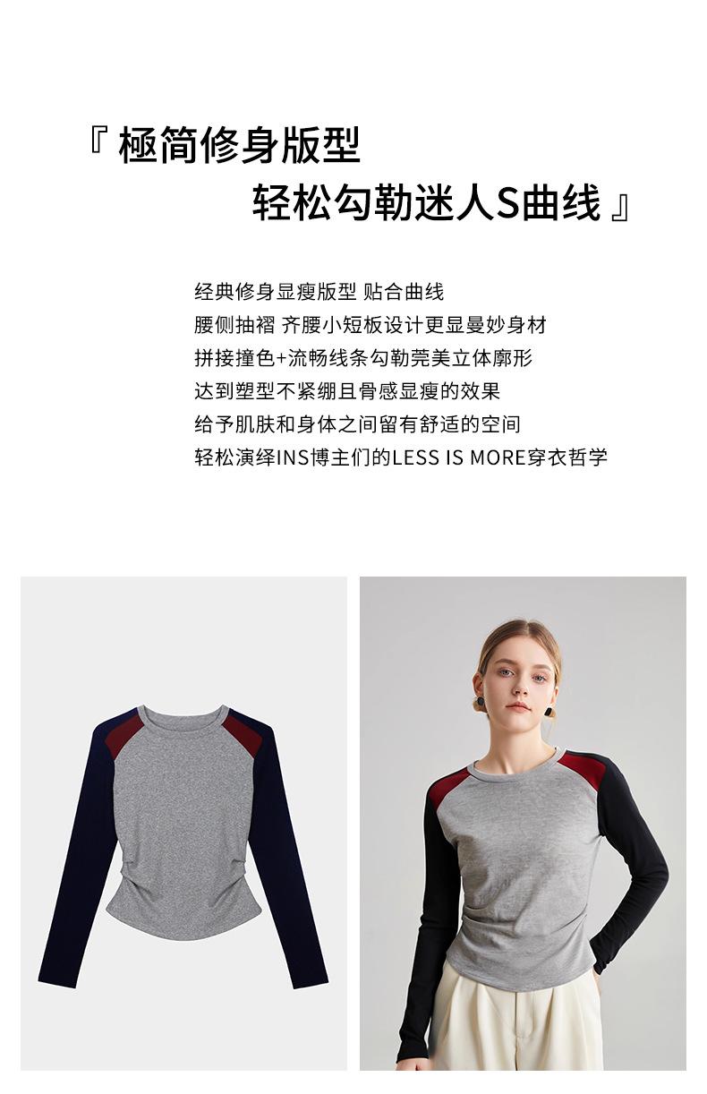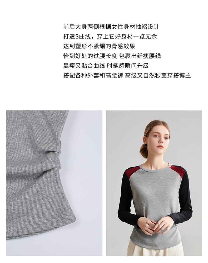 Nuevo Americano Color Contraste Base MBH011 Costuras Color Contraste Manga Larga Camiseta de Punto para Mujer Primavera Nuevo Estilo Ligeramente Gorda mm