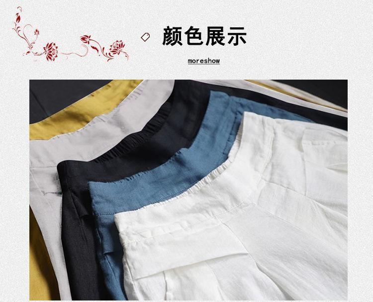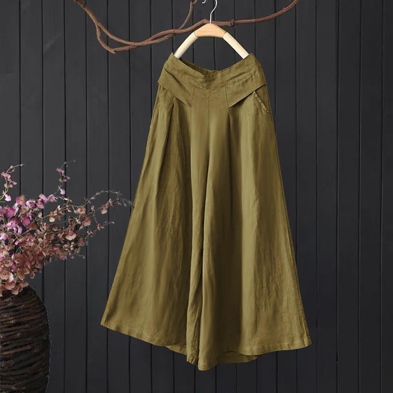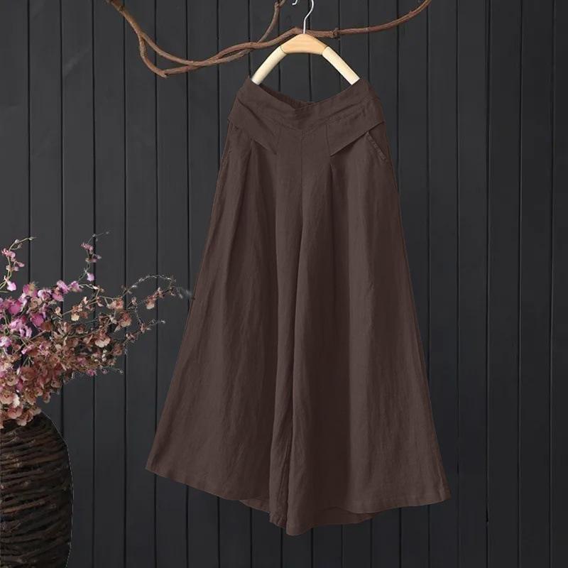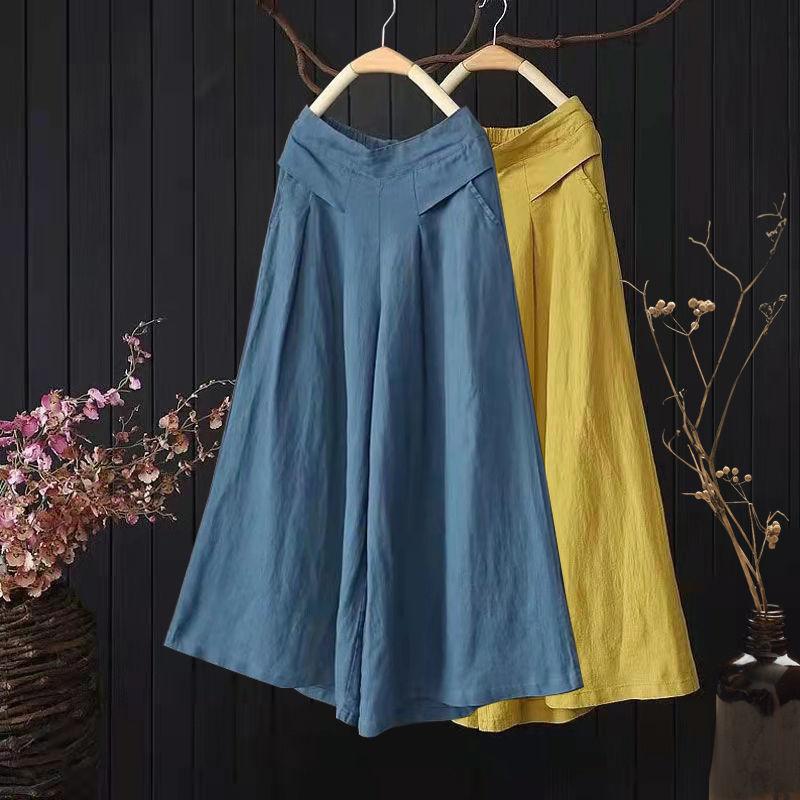 Pantalones Vintage de Algodón y Lino con Caída y Pierna Ancha para Mujer, Pantalones Falda de Algodón Sueltos y Delgados de Verano, Pantalones Capri Versátiles Casuales de Cintura Alta