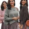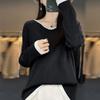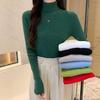 Decoración de Punto Talla Grande Camiseta Básica de Mujer Invierno 2025 Otoño e Invierno para Mujer Nuevo Punto Fino Holgado de Cuello Alto