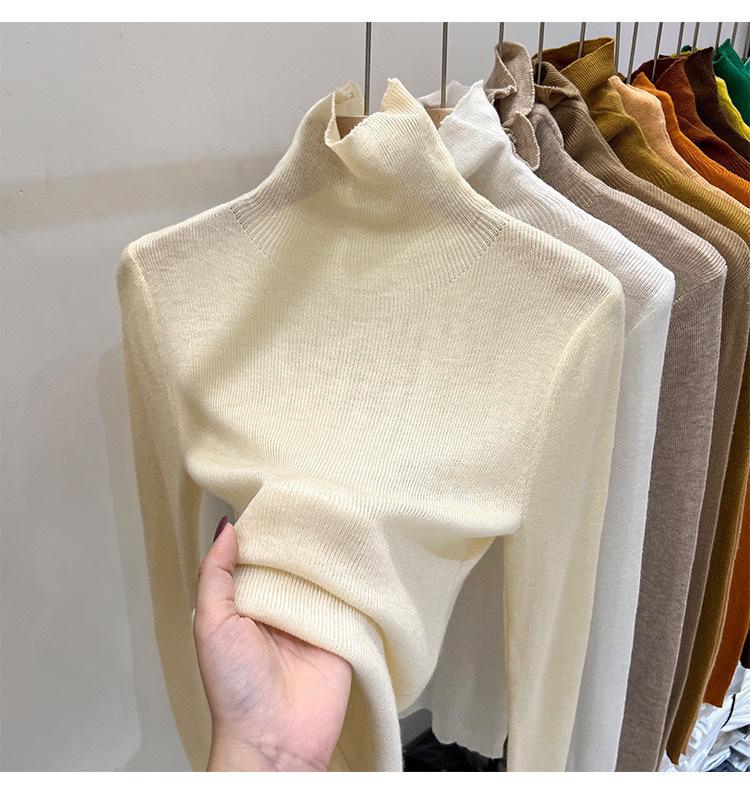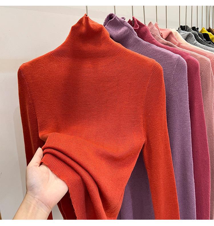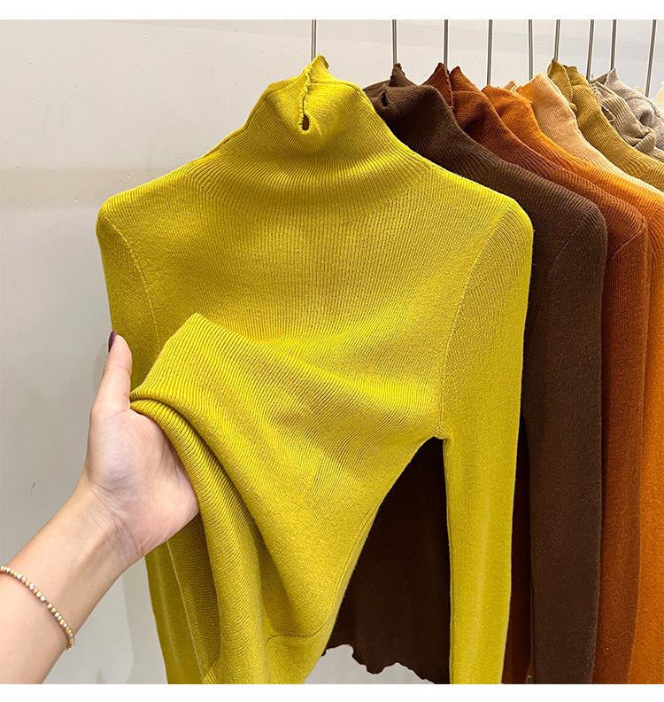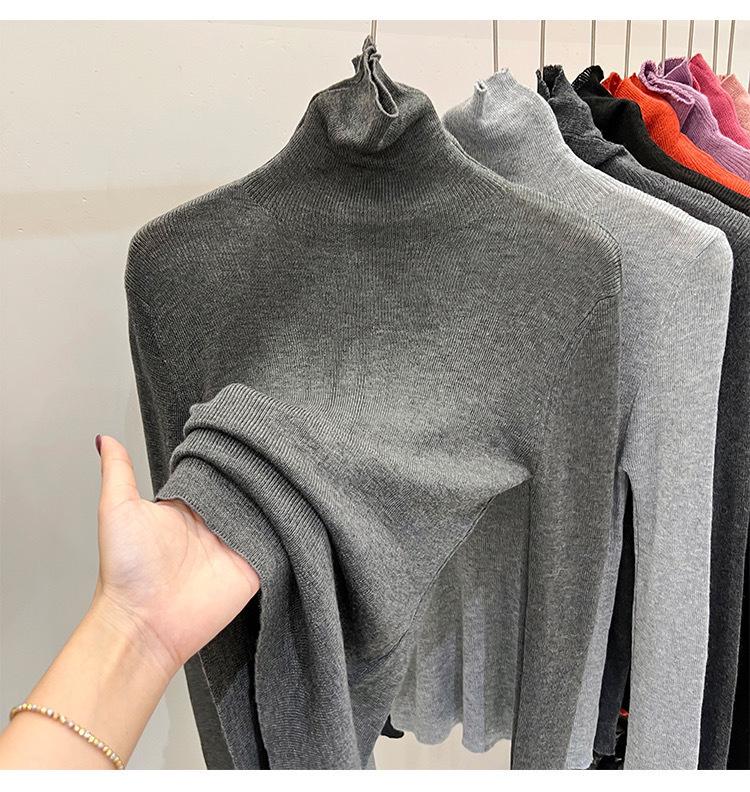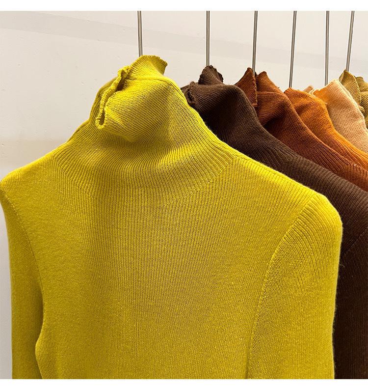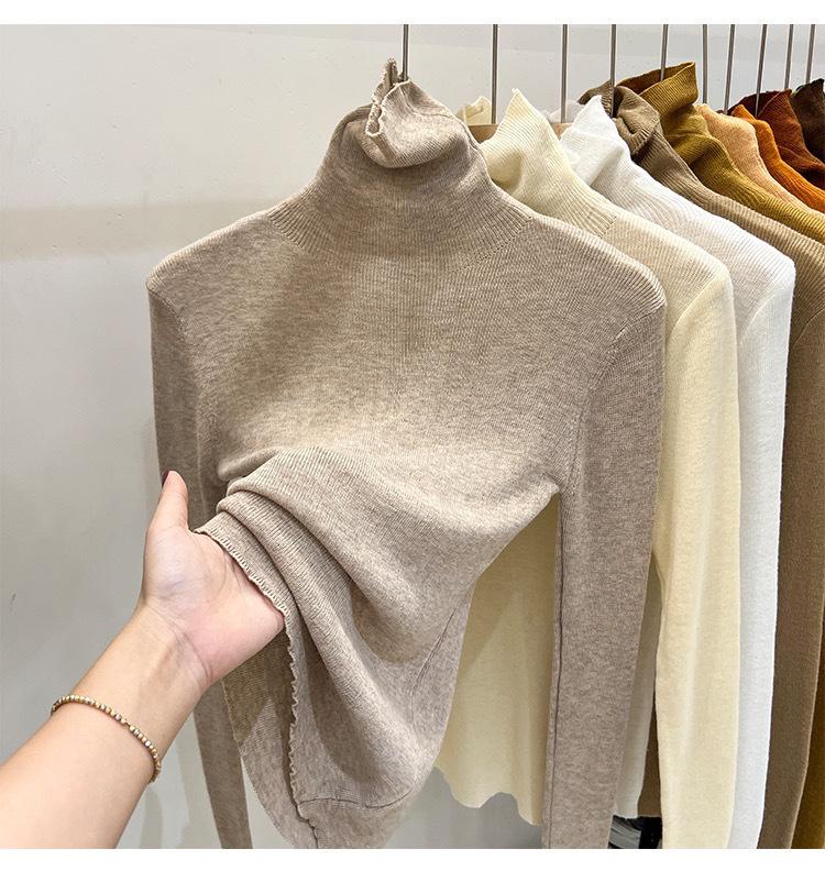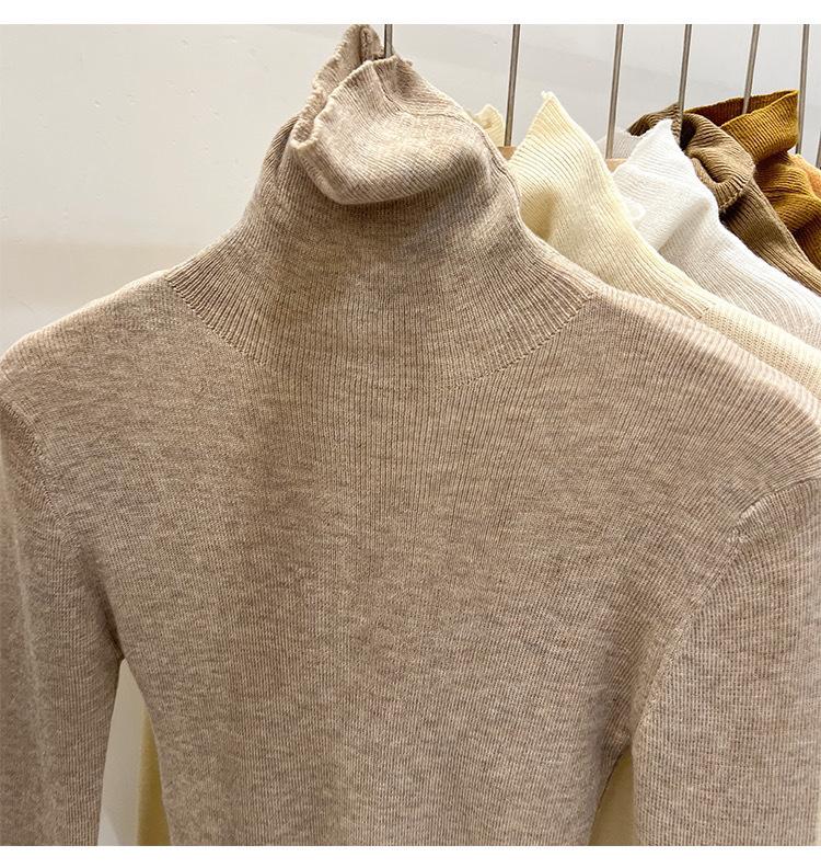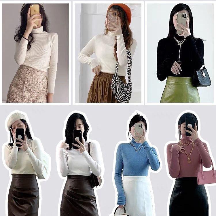 Playera Base de Punto de Lana de Cuello Alto Suéter Suave y Ceroso Ropa de Mujer Otoño e Invierno 2023 Nuevo Top Interior Adelgazante de Corte Ajustado Ropa de Mujer