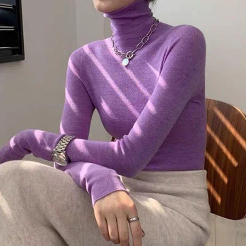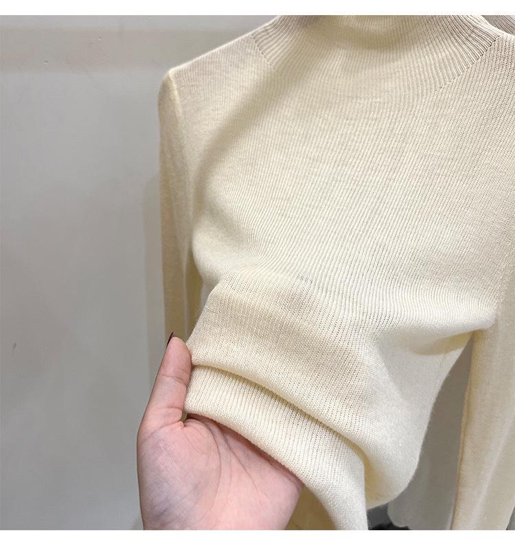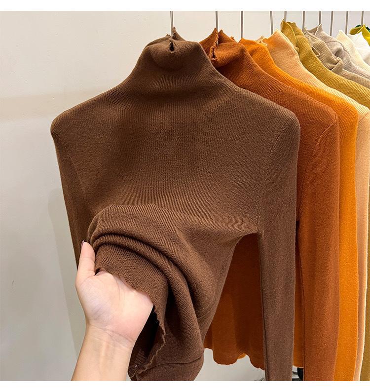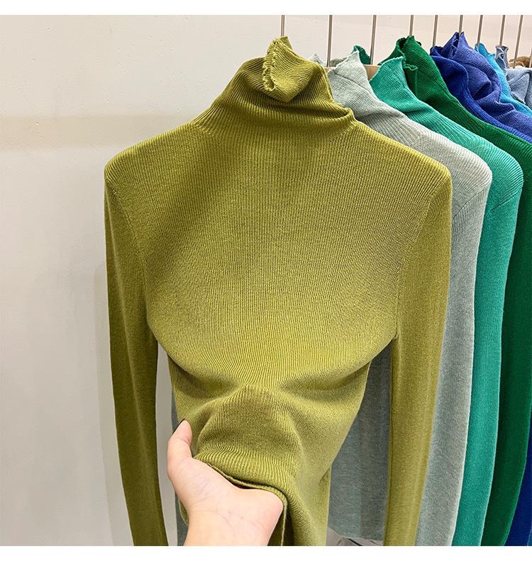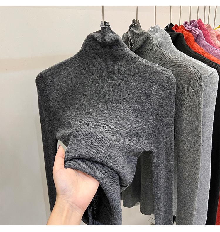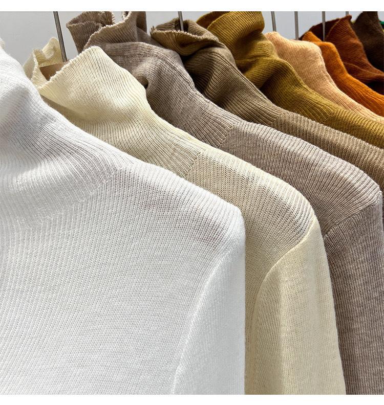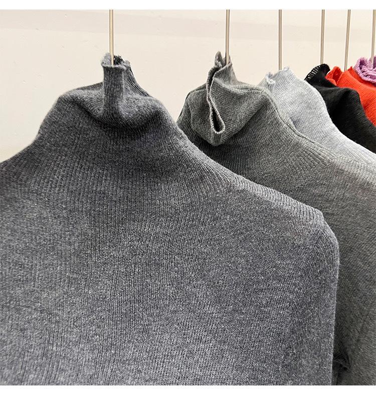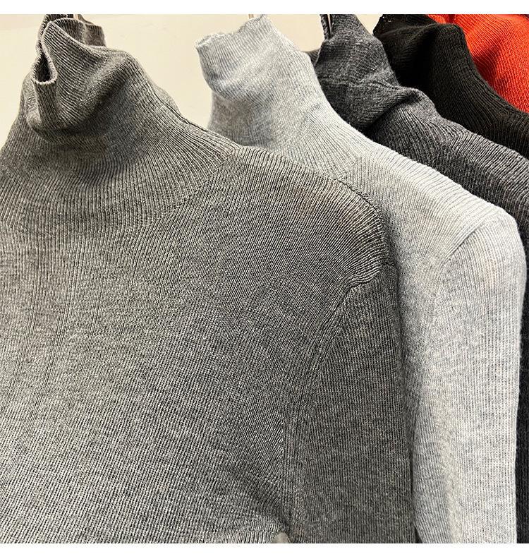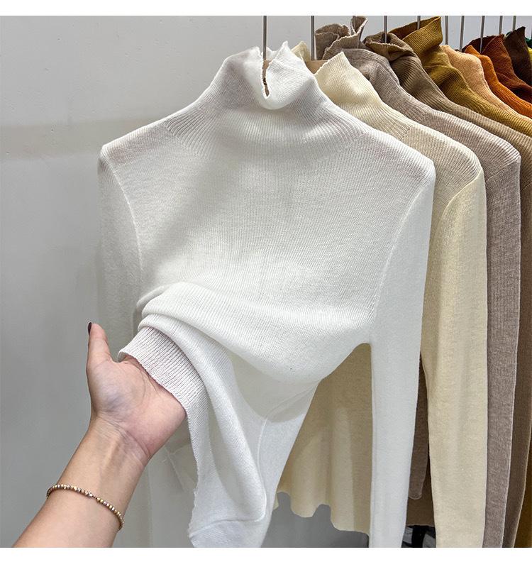 Playera Base de Punto de Lana de Cuello Alto Suéter Suave y Ceroso Ropa de Mujer Otoño e Invierno 2023 Nuevo Top Interior Adelgazante de Corte Ajustado Ropa de Mujer