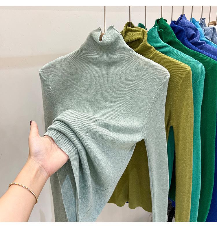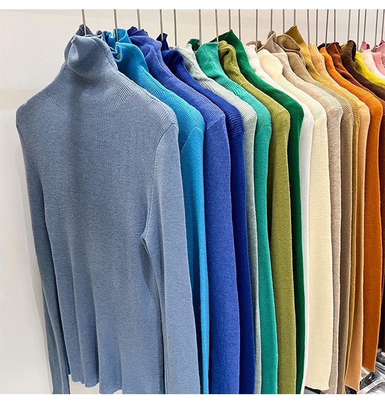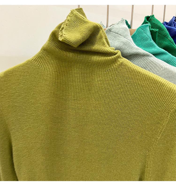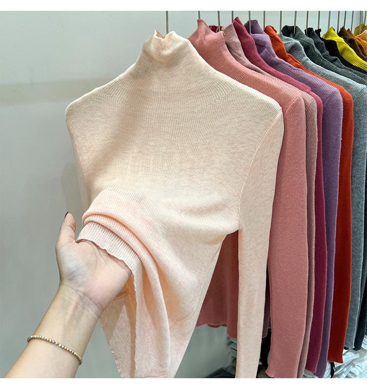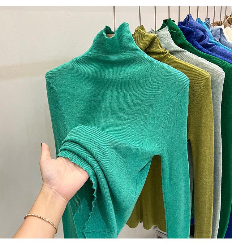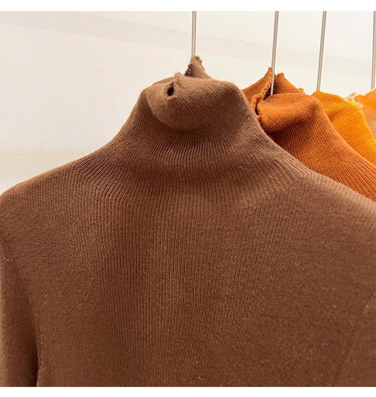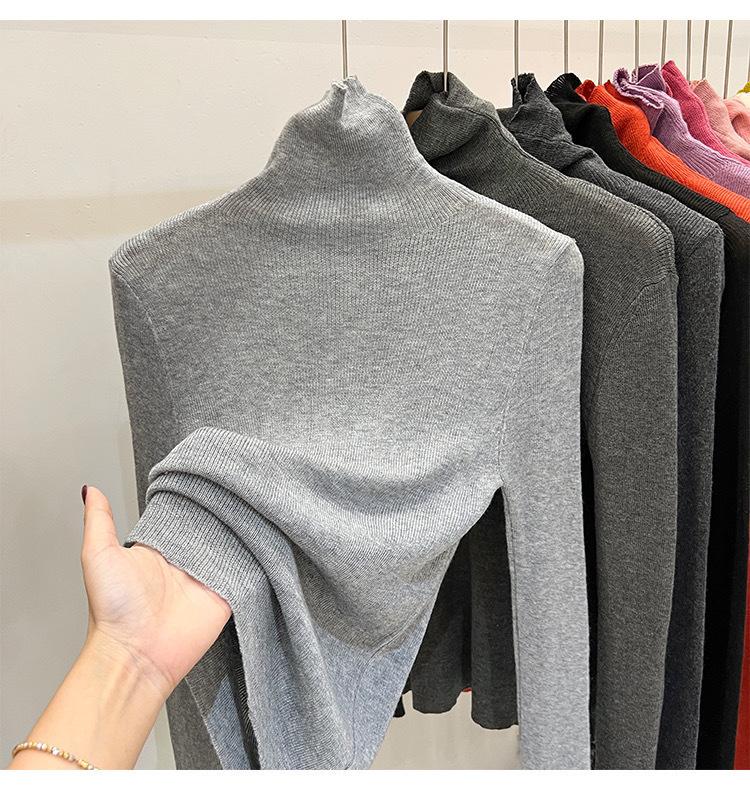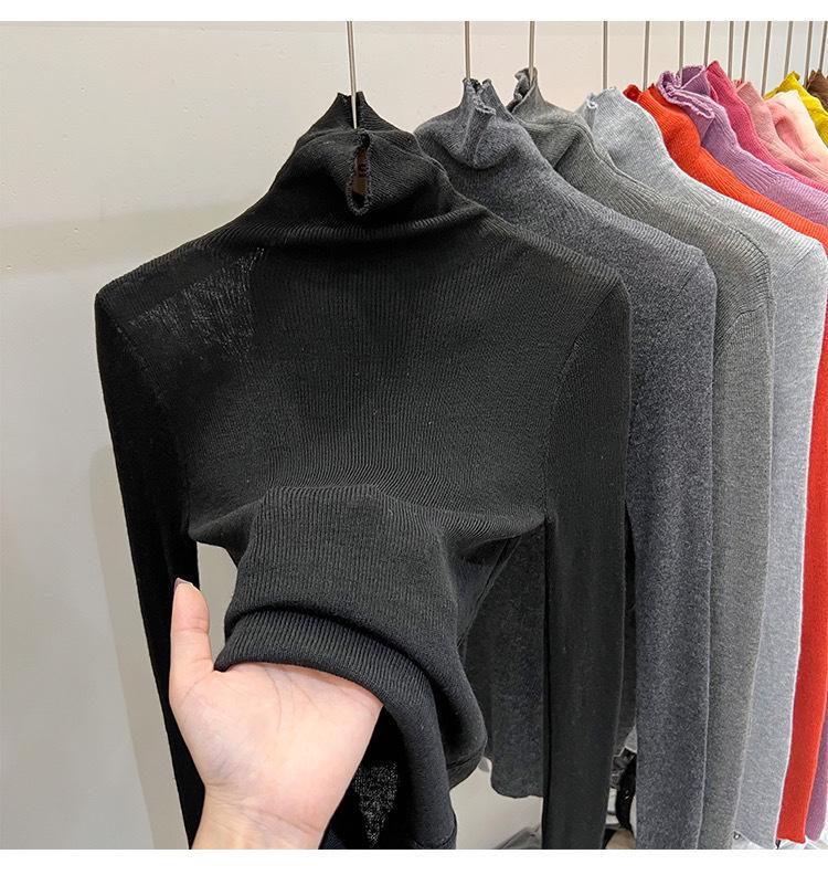 Playera Base de Punto de Lana de Cuello Alto Suéter Suave y Ceroso Ropa de Mujer Otoño e Invierno 2023 Nuevo Top Interior Adelgazante de Corte Ajustado Ropa de Mujer