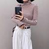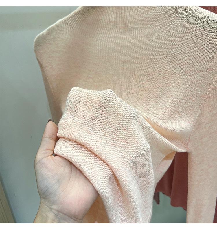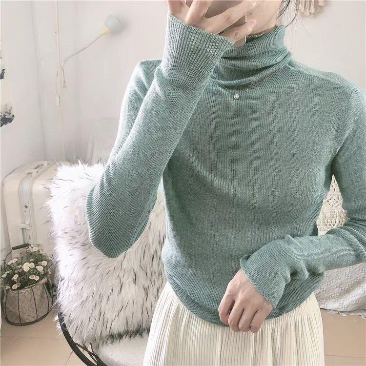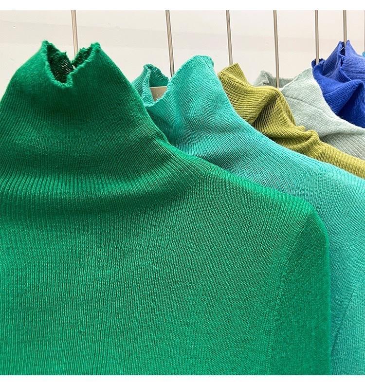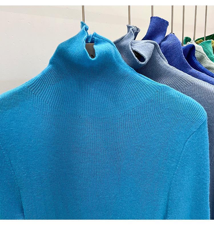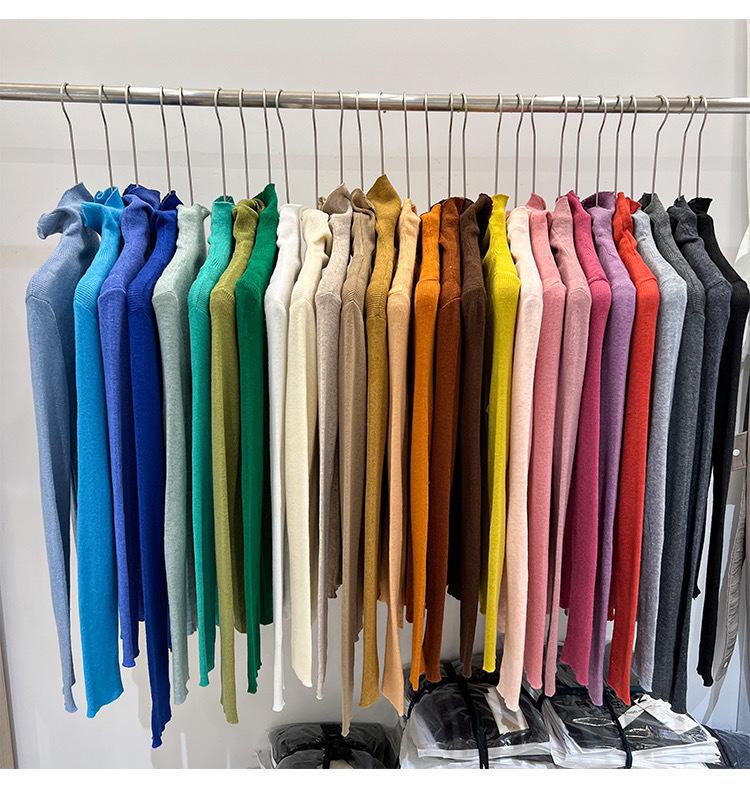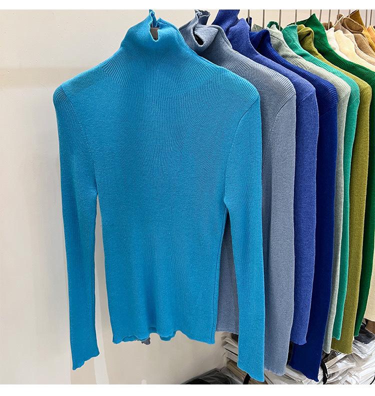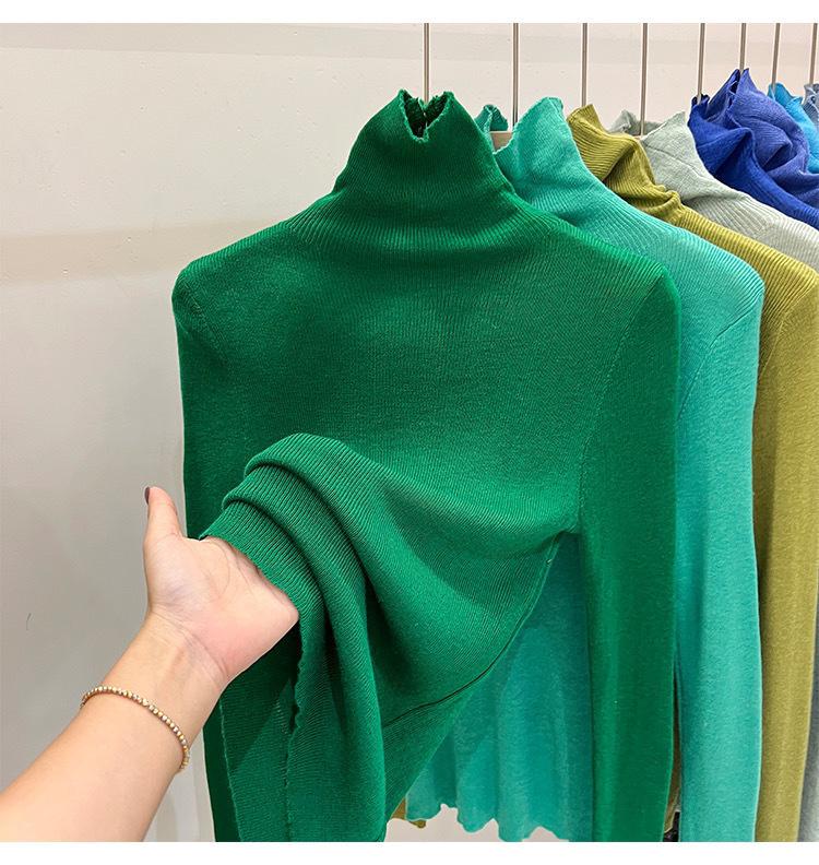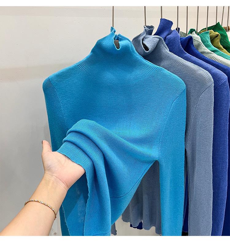 Playera Base de Punto de Lana de Cuello Alto Suéter Suave y Ceroso Ropa de Mujer Otoño e Invierno 2023 Nuevo Top Interior Adelgazante de Corte Ajustado Ropa de Mujer