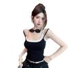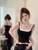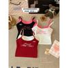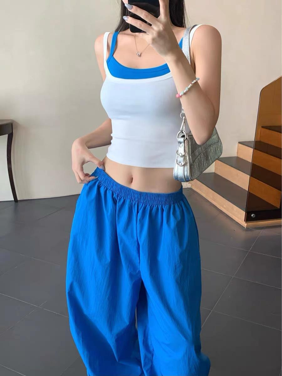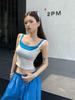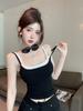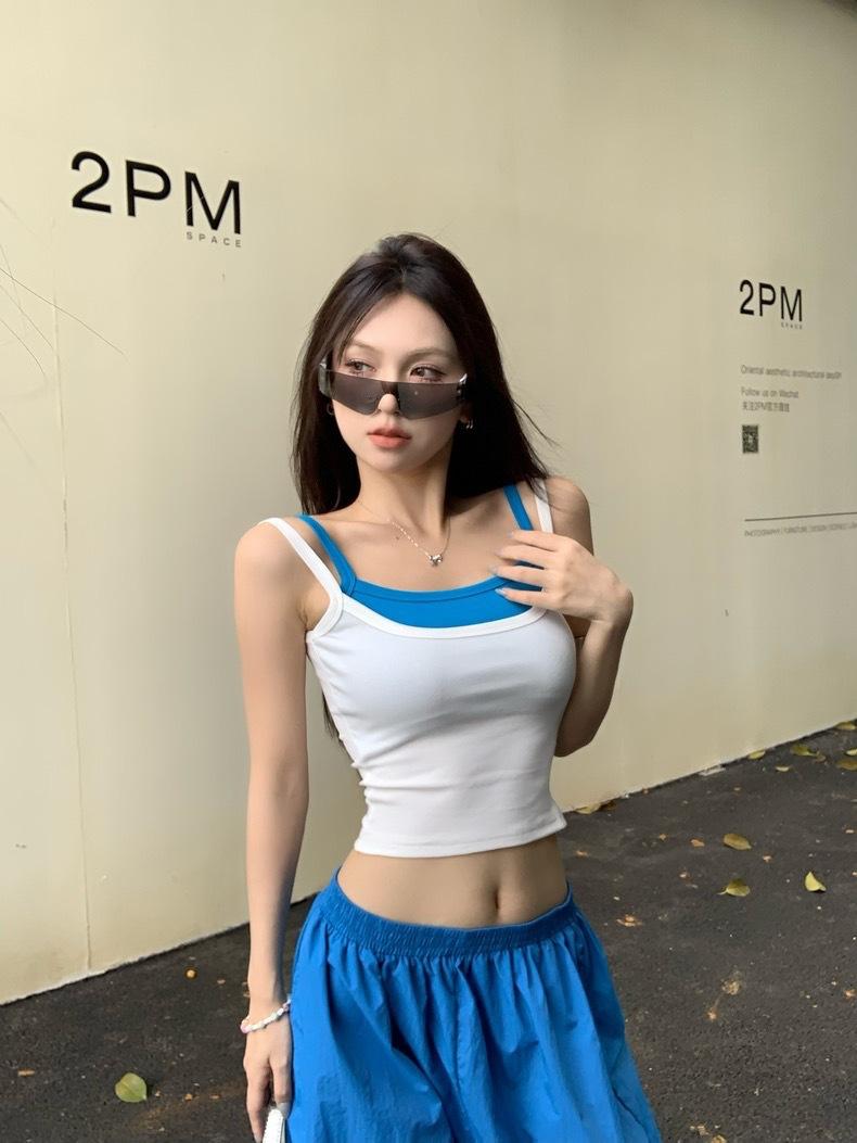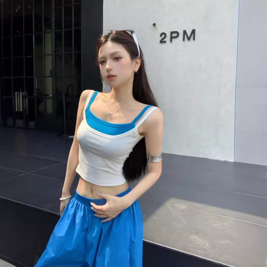 Tops de Dos Piezas Falsas de Color en Contraste Calientes Europeos y Americanos para Mujer, Ropa Interior y Exterior de Verano, Camisola Slim Corta para Chica Caliente