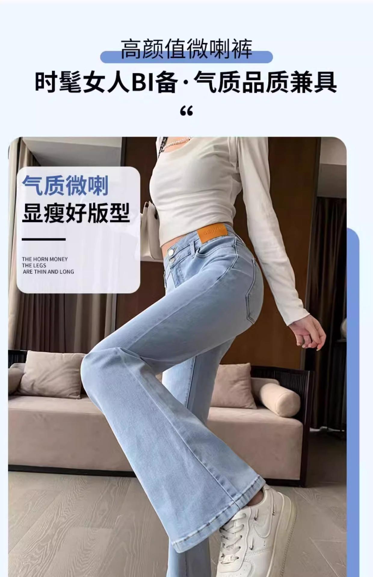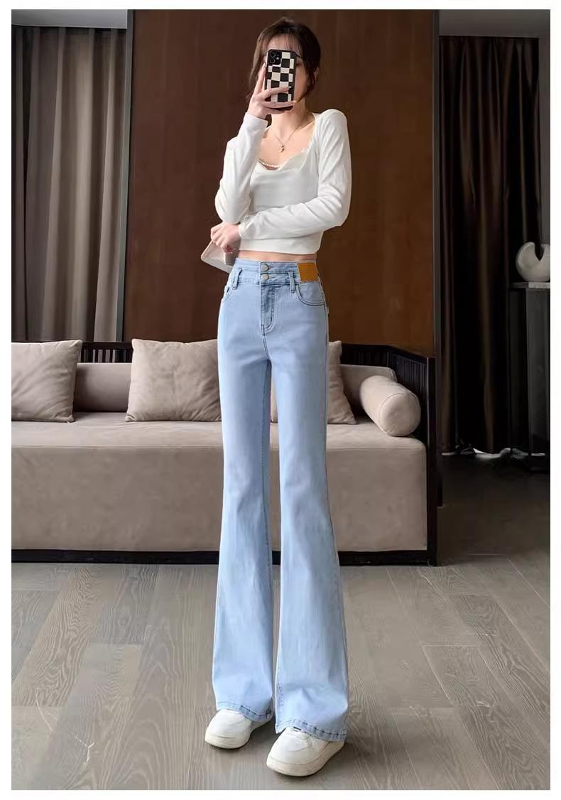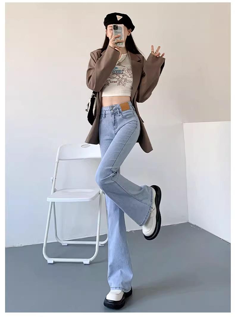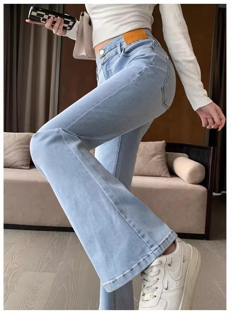 Talla grande Jeans Acampanados Color Claro Moda Femenina Combinable Nuevo Cintura Alta Ajustado Ajustado Elástico Micro Herradura Pantalones