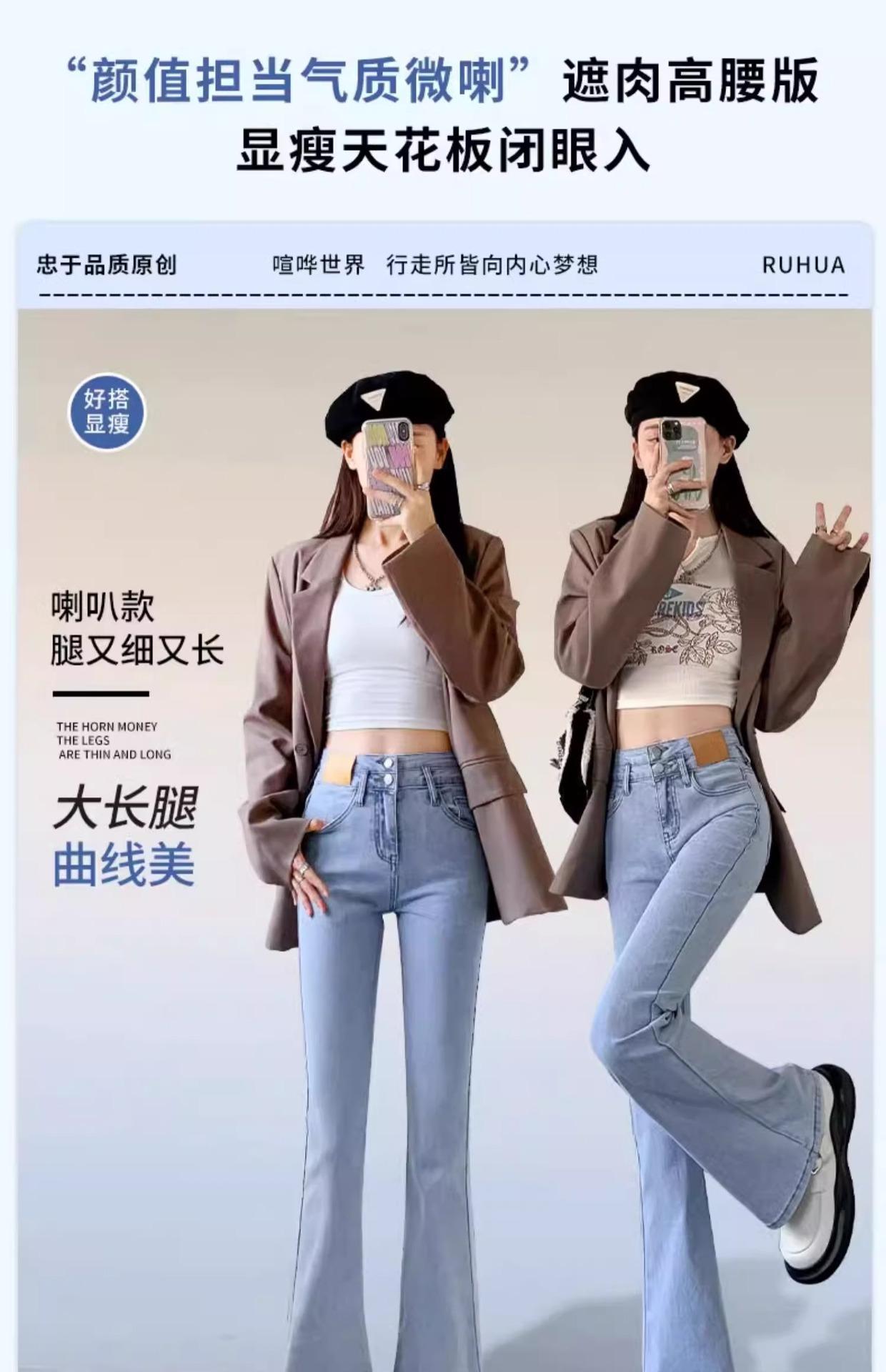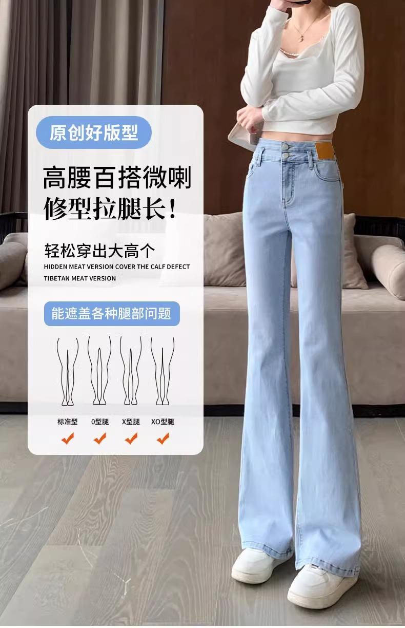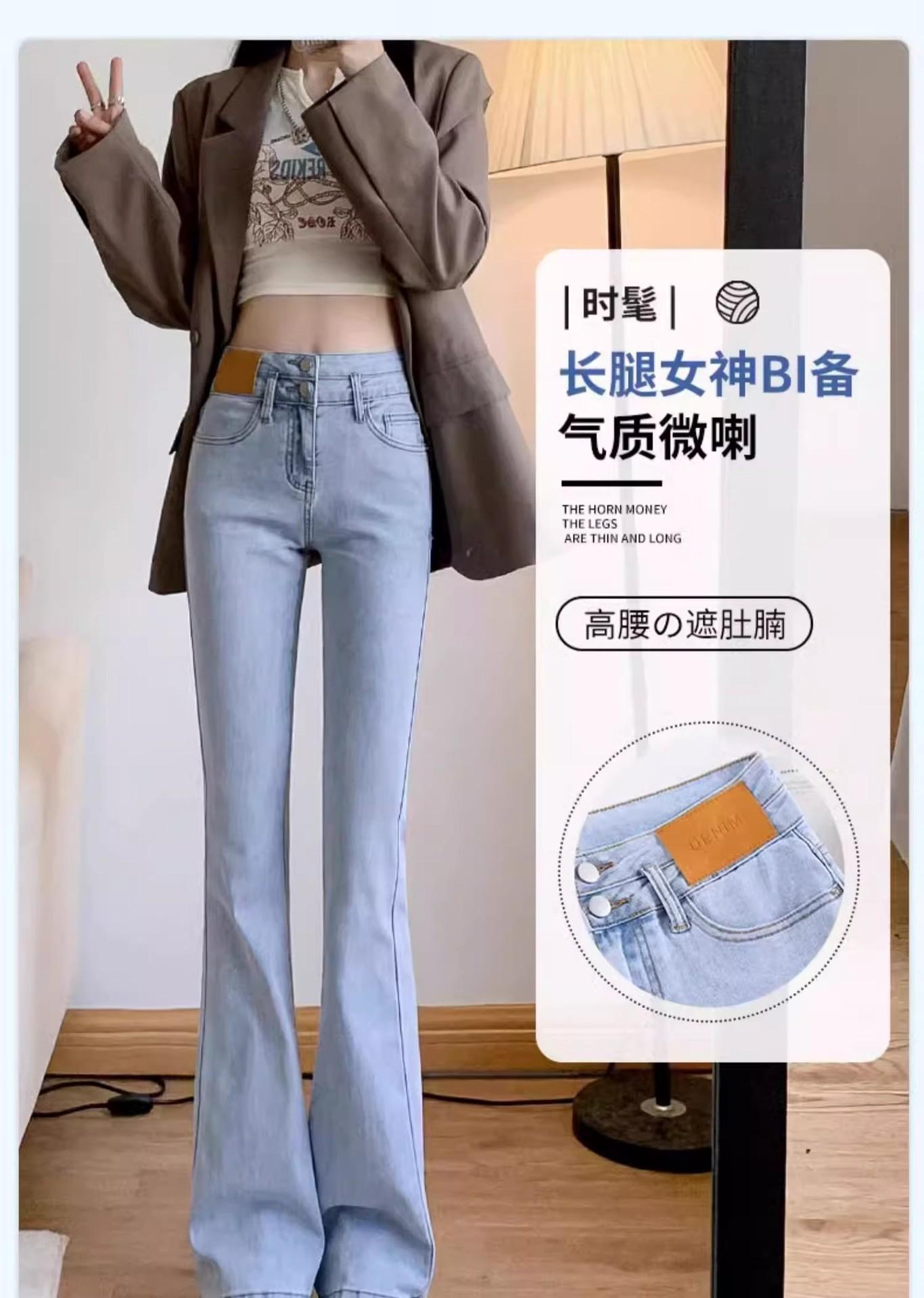 Talla grande Jeans Acampanados Color Claro Moda Femenina Combinable Nuevo Cintura Alta Ajustado Ajustado Elástico Micro Herradura Pantalones