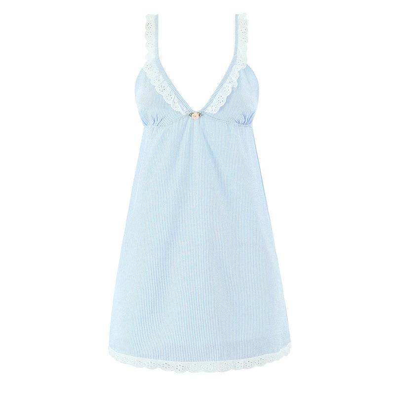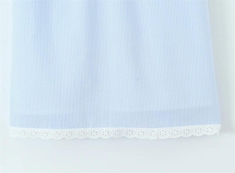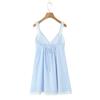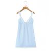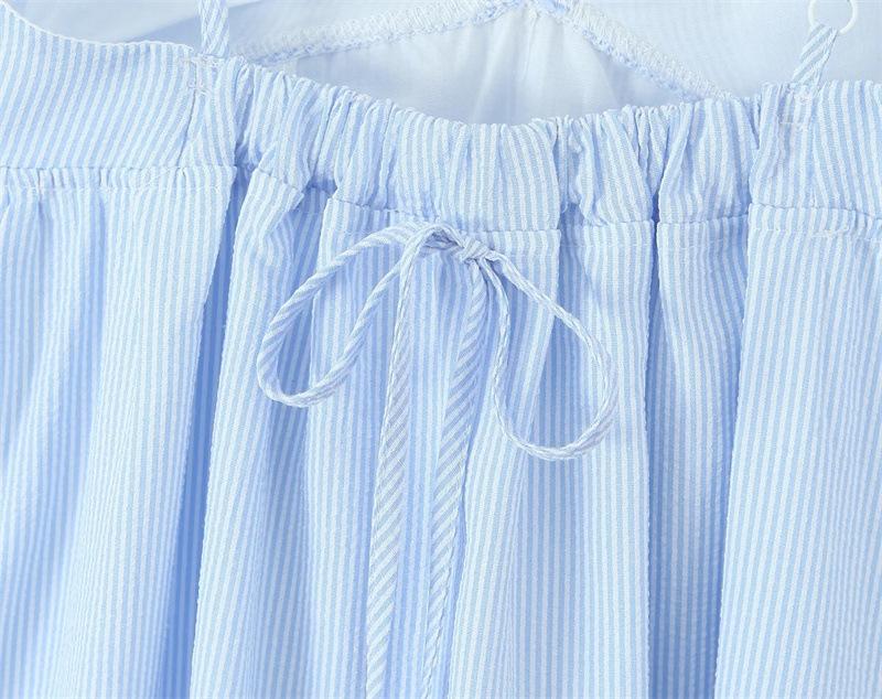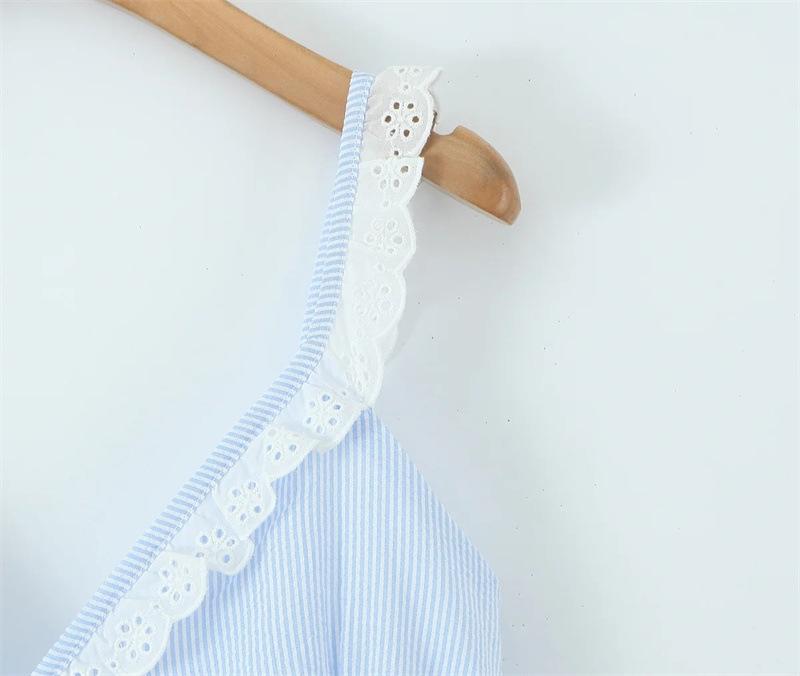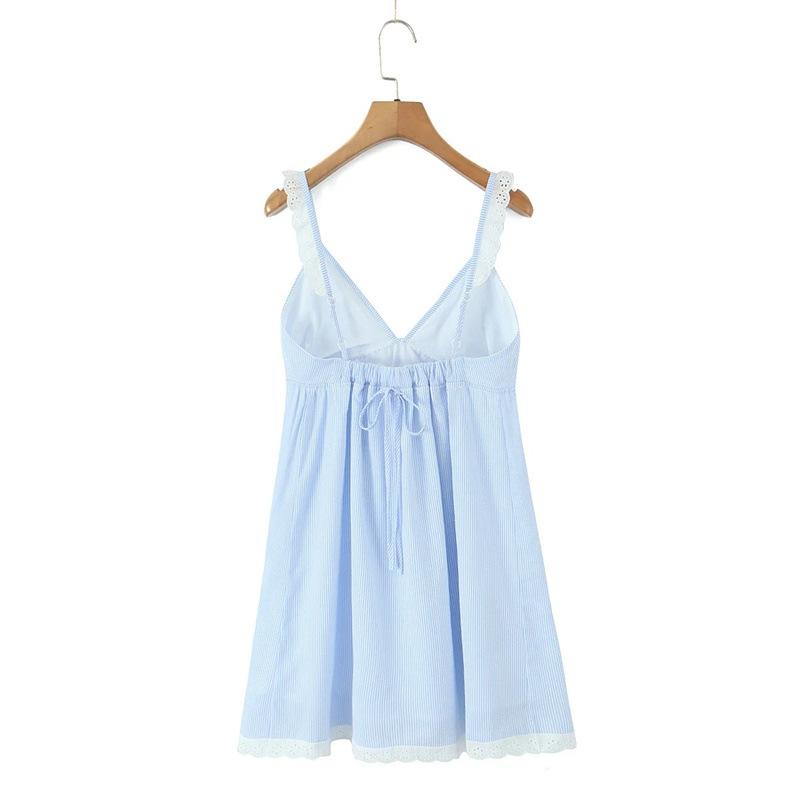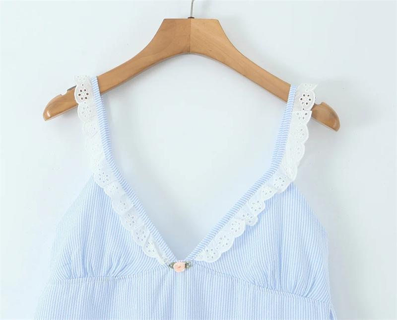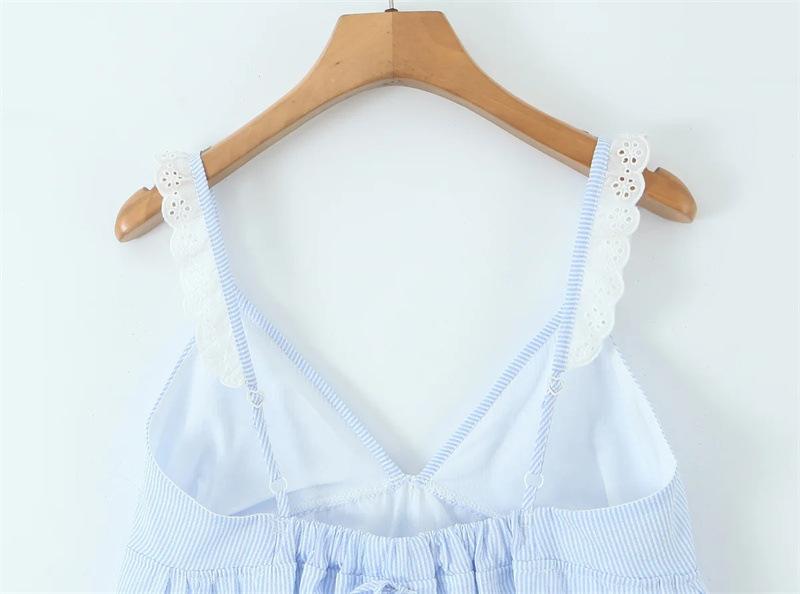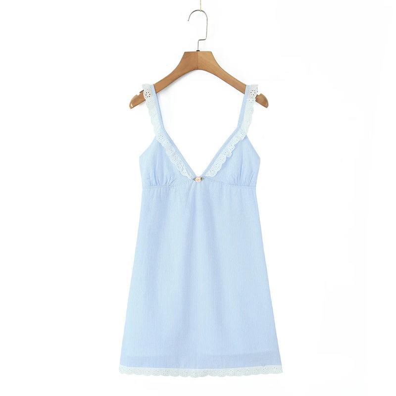 Estilo Europeo y Americano Sexy Escote en V Profundo Encaje Rayado Falda con Tirantes Verano Nuevo Falda Slim de Cintura Alta Vestido