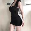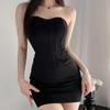 Vestido Negro Strapless con Hombros Descubiertos con Copas en el Pecho y Falda Bodycon con Varillas de Ballena para Mujer en Verano