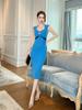 Estilo Europeo y Americano 2024 Nuevo Vestido de Vacaciones de Verano para Mujer Retro Francés Ajustado