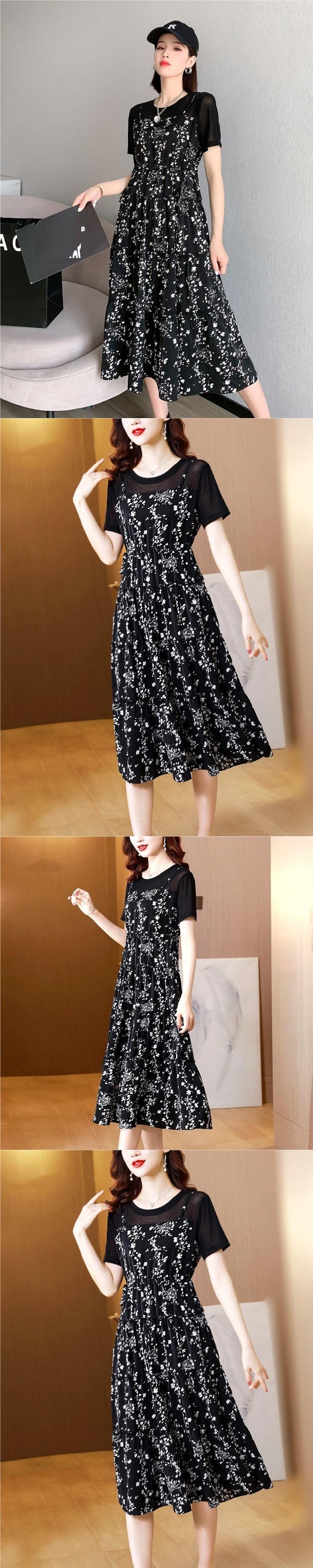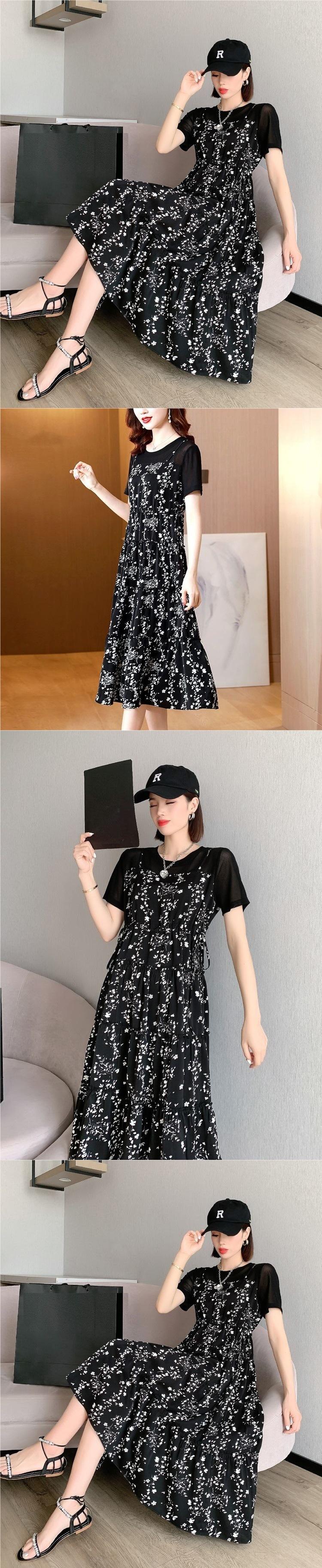 Vestido 2025 Verano Nuevo Nicho Gordo mm Moda Estilo Francés Suave Adelgazante de Cintura Aspecto Manga Corta Falda Floral