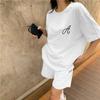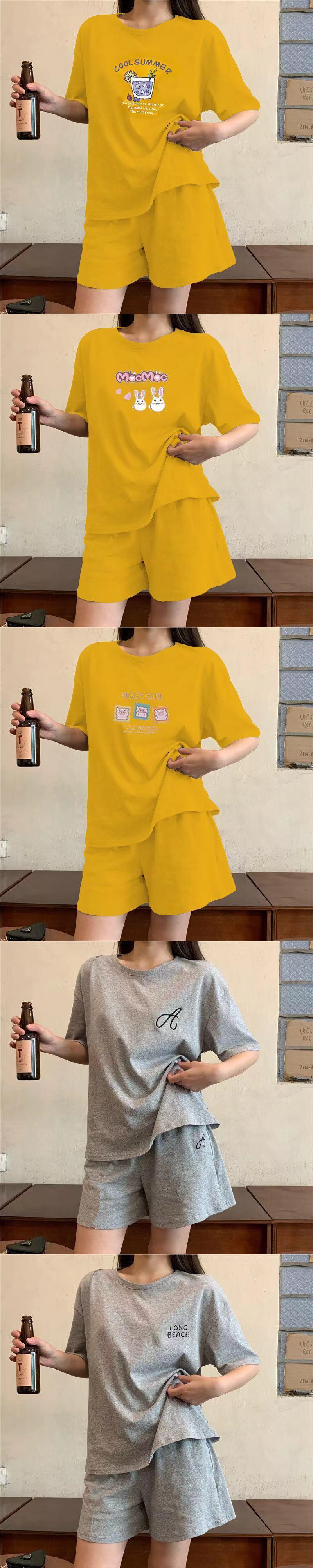 Traje Deportivo de Algodón 100% para Mujer, Verano, Manga Corta, Shorts, Ropa Exterior, Moderno, Holgado, Casual, Traje para Correr, Conjunto de Dos Piezas, Moderno